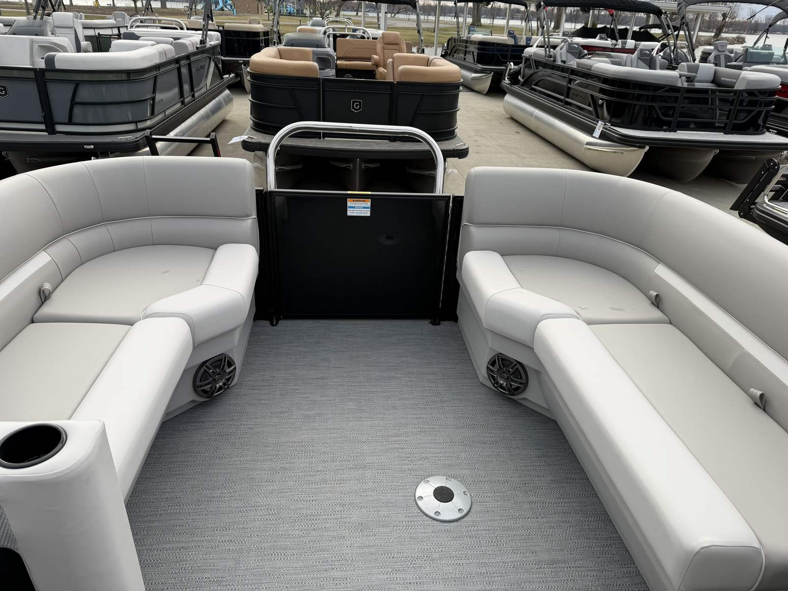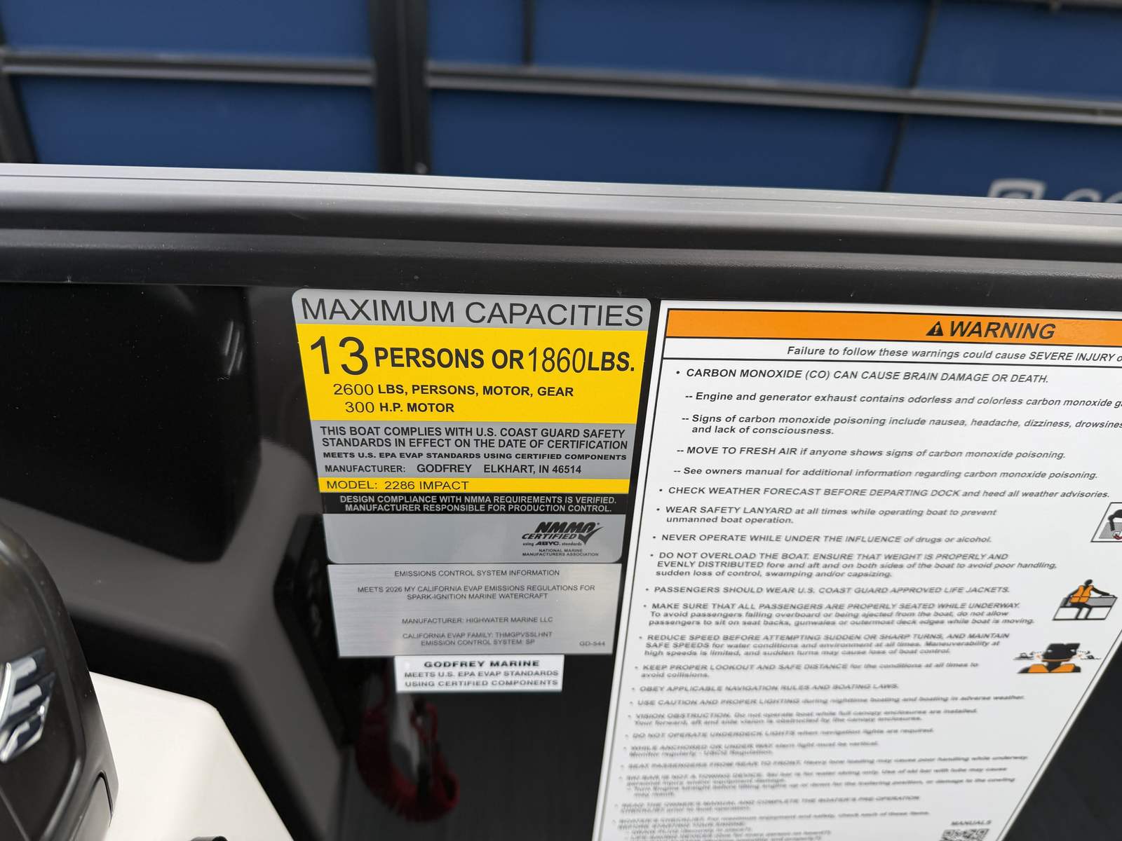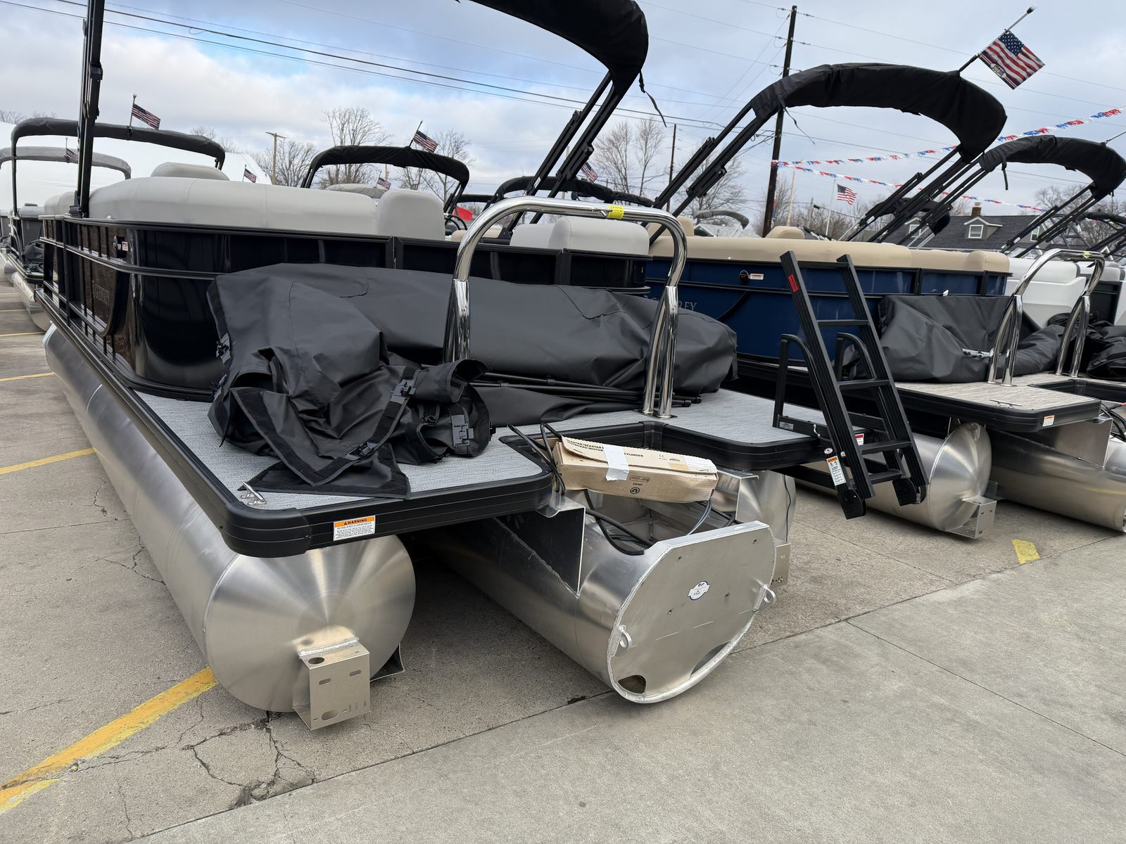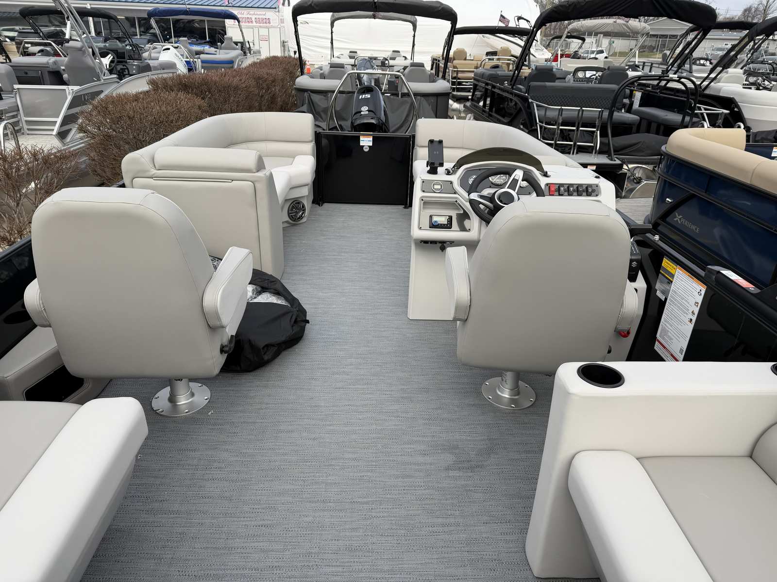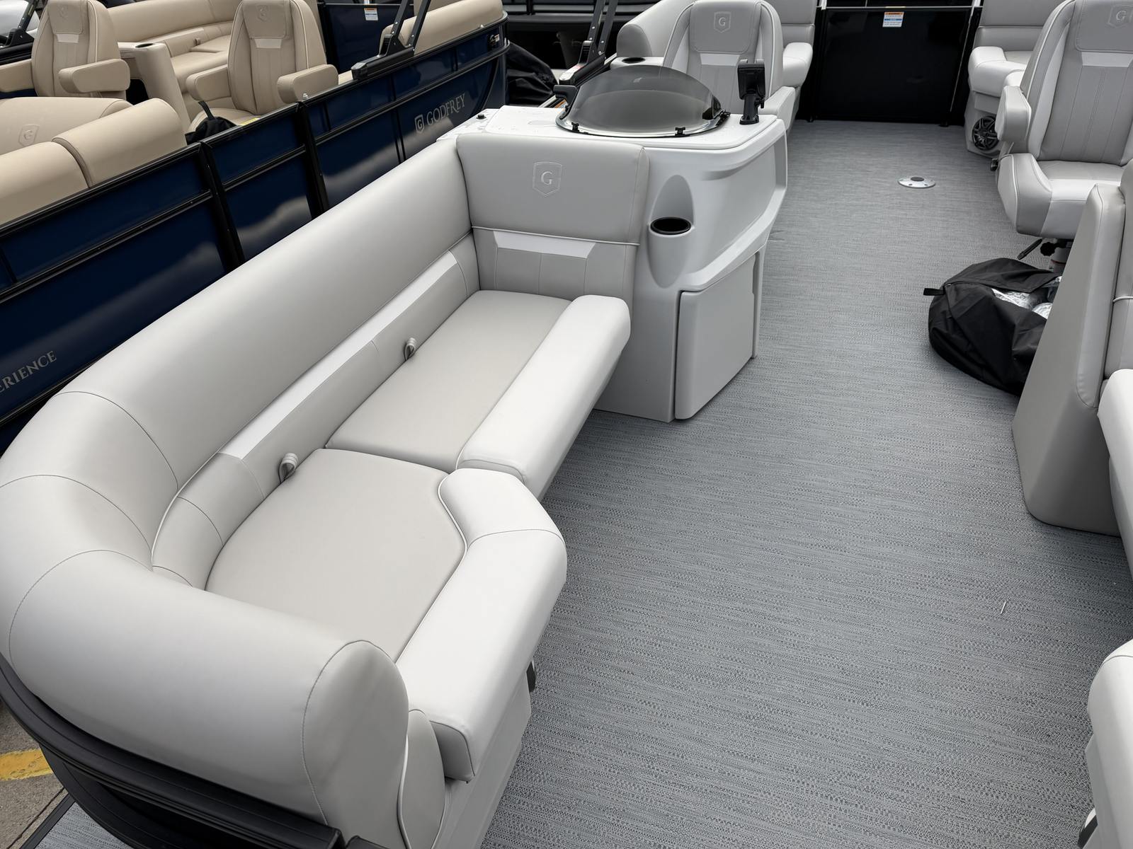 The Godfrey EX 2286 SBX is loaded with features designed to elevate your boating experience. The black canopy with a protective boot and dome light provides shade and shelter, ensuring comfort during sunny days or unexpected weather. The snapless playpen cover in black offers quick and easy protection for your pontoon, keeping it in pristine condition when not in use.The Xperience Extended Deck layout maximizes usable space, perfect for hosting gatherings or stretching out in the sun. The additional battery extension ensures you have the power needed for longer adventures, while the Black EZ Climb Stern ladder makes boarding and disembarking effortless for all ages. LED docking lights illuminate your way during evening returns, adding both safety and a touch of elegance.Aesthetically, the anodized black rail frame and black rail skin create a striking, modern look that turns heads at every marina. The black rub rail with vinyl insert and black skirting not only enhances the boat’s appearance but also provides added protection against bumps and scrapes.