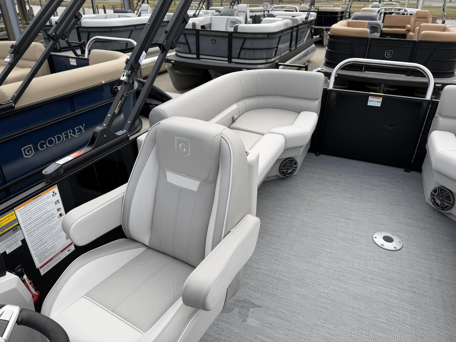 The Godfrey EX 2286 SBX is designed with practicality in mind, making ownership a breeze. The snapless playpen cover and canopy protect your investment from the elements, reducing maintenance and extending the life of your pontoon. The additional battery extension provides peace of mind for longer trips, ensuring your electronics and accessories stay powered throughout the day.Docking is simplified with the LED docking lights, offering clear visibility during low-light conditions. The sturdy rub rail and skirting protect your pontoon from minor impacts, while the extended deck layout makes loading gear and passengers quick and easy. Whether you are storing water toys, coolers, or fishing equipment, the spacious design accommodates all your needs.