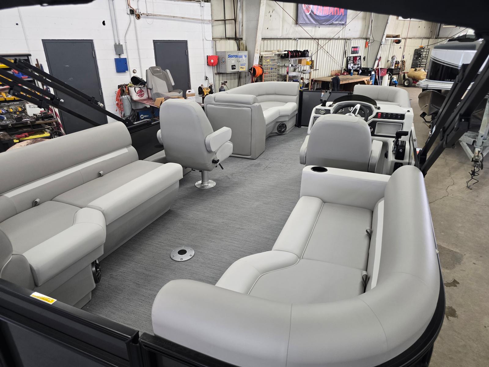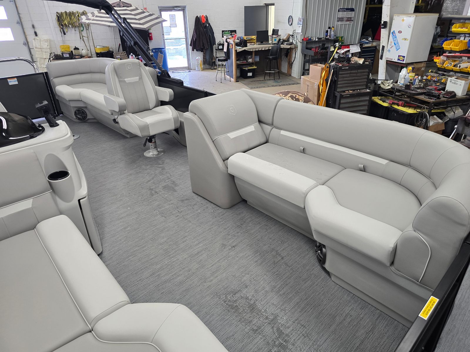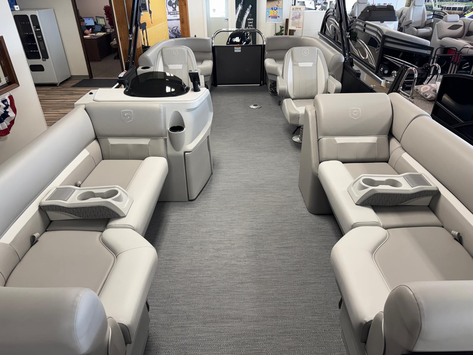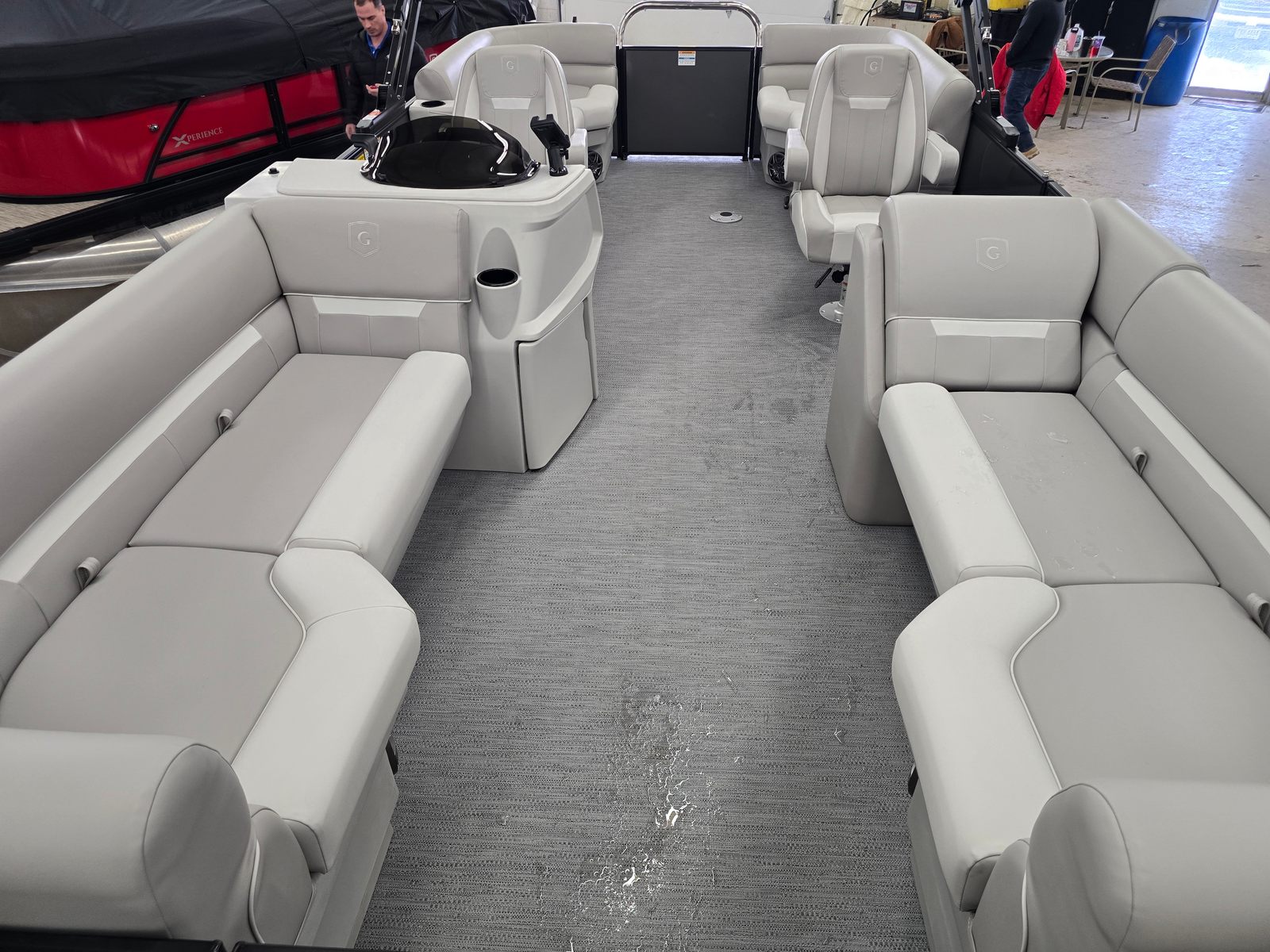 The Godfrey EX 2286 SBX is as practical as it is enjoyable. The snapless playpen cover makes it simple to protect your boat from the elements, reducing maintenance and preserving its pristine condition. The extended deck and additional battery extension offer increased storage and power options, making it easy to bring along everything you need for a full day on the water.Docking is a breeze thanks to the LED docking lights, which enhance visibility and safety during low-light conditions. The sturdy 25-inch transom and robust construction ensure that this pontoon boat handles with confidence, whether you are navigating tight marina spaces or cruising open waters. Fuel efficiency is enhanced by the advanced Suzuki DF200ATX engine, allowing you to spend more time enjoying the journey and less time at the pump.