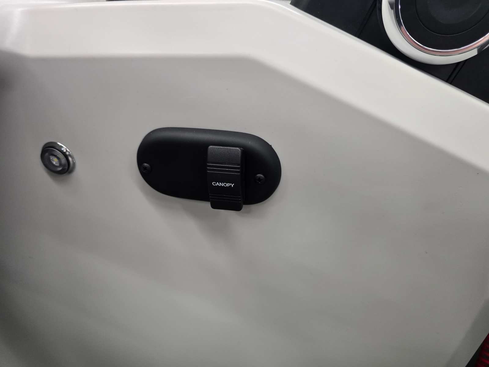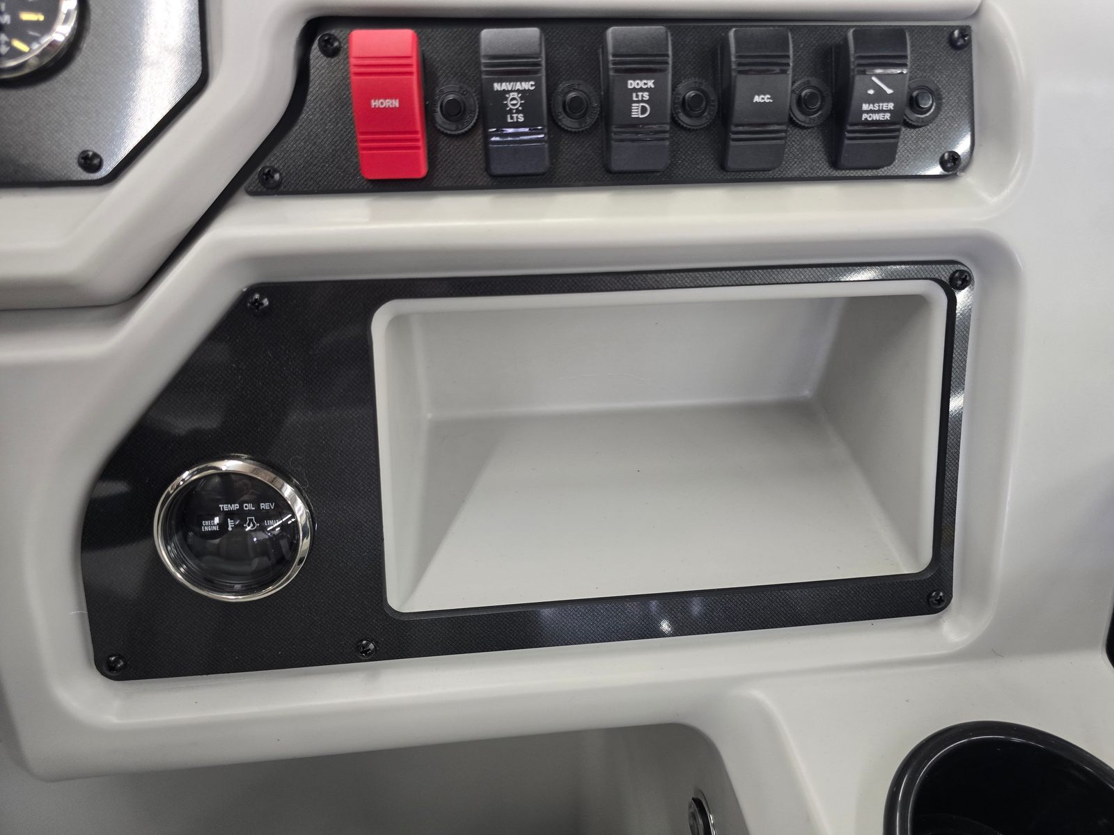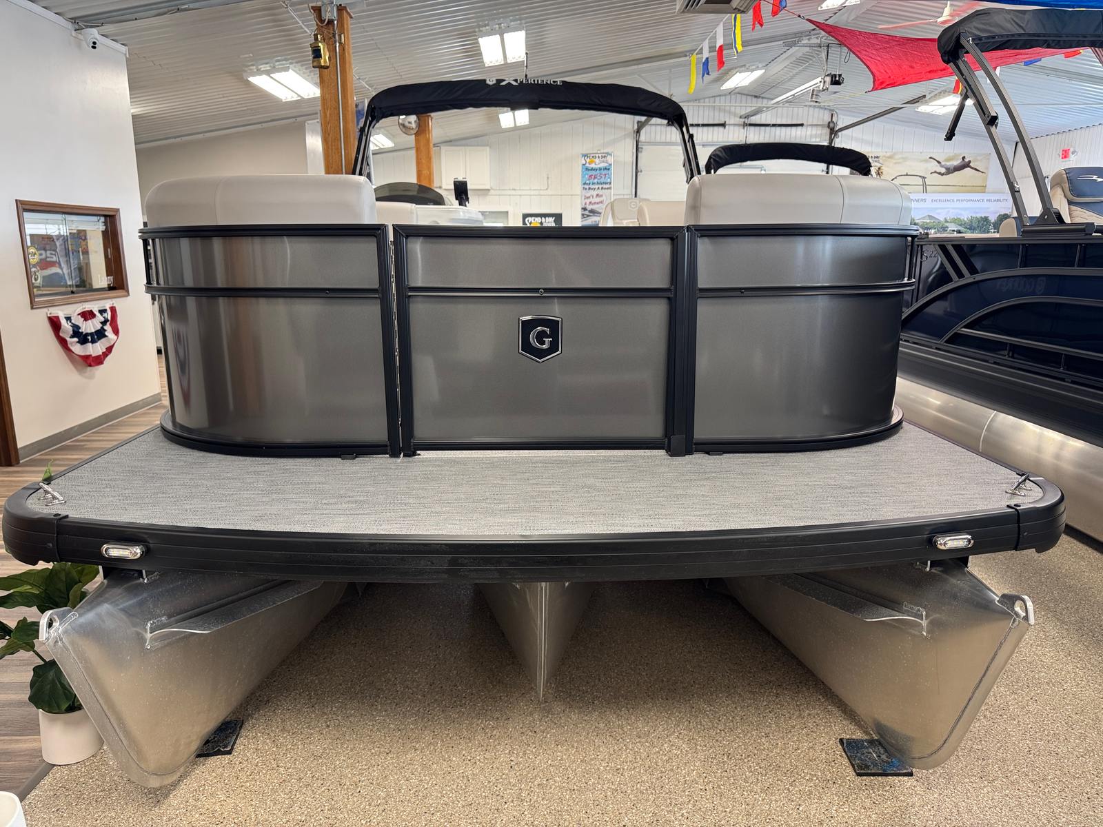 The Godfrey EX 2286 SBX is loaded with special features that elevate your boating experience. The power canopy, finished in sleek black and equipped with a protective boot and dome light, offers convenient shade and shelter at the touch of a button, ensuring comfort during sunny afternoons or unexpected showers. The snapless playpen cover in matching black provides quick and secure protection for your boat when not in use, keeping your investment safe from the elements.The Xperience Extended Deck, complete with an additional battery extension, expands your usable space and enhances onboard functionality, making it easier to accommodate guests and gear. The Black EZ Climb Stern ladder ensures easy and safe access to and from the water, perfect for swimmers and water sports enthusiasts. LED docking lights not only add a touch of modern style but also improve visibility and safety during evening arrivals and departures.Aesthetically, the anodized black rail frame, charcoal rail skin color, and black rub rail with black vinyl insert and black skirting create a cohesive and striking appearance that is sure to turn heads at the marina. Every detail is thoughtfully designed to provide both visual appeal and practical benefits.
