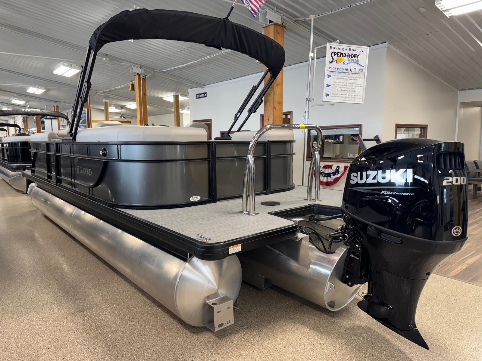 In summary, the 2026 Godfrey EX 2286 SBX is a standout pontoon boat for sale that combines powerful performance, innovative features, and exceptional comfort. With its Suzuki DF200ATX engine, power canopy, snapless playpen cover, extended deck, EZ Climb Stern ladder, LED docking lights, and striking black and charcoal aesthetics, this Godfrey boat for sale is designed to elevate every moment on the water.If you are ready to experience the ultimate in pontoon boating, the Godfrey EX 2286 SBX is waiting to become the centerpiece of your next adventure. Contact your local dealer today to learn more about this exciting new model and take the first step toward making unforgettable memories on the water.