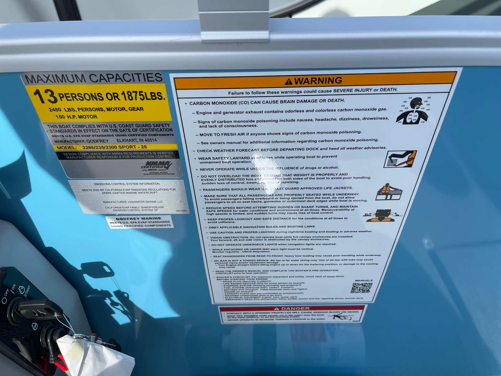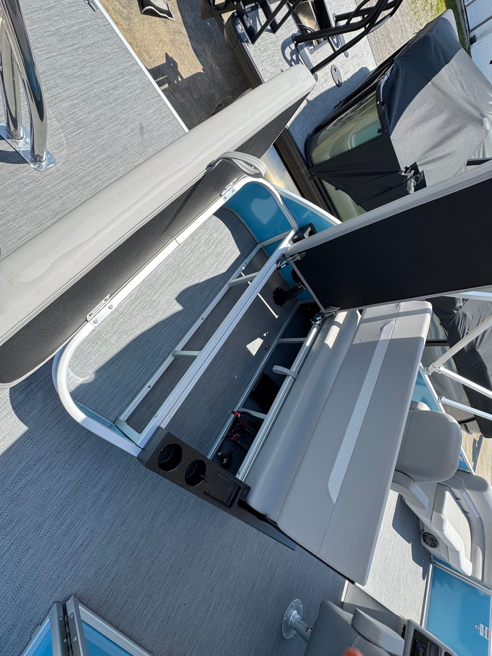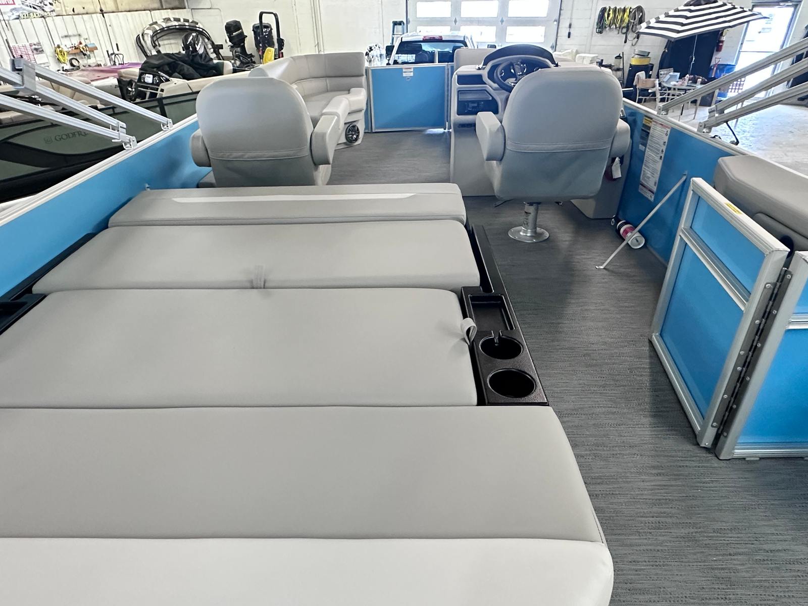 The Godfrey EX 2286 Sflx is designed with practicality in mind, making ownership as enjoyable as it is effortless. The under deck skin with inside skirting not only improves performance but also makes cleaning and maintenance a breeze. The snapless playpen cover offers quick protection from rain or debris, helping to keep your boat looking its best with minimal effort.Docking is made simple with the LED docking lights, providing clear visibility during low-light conditions. The extended deck offers plenty of storage options for gear, water toys, and refreshments, ensuring you have everything you need for a day on the water. The efficient Suzuki DF150ATL engine helps you make the most of every gallon of fuel, so you can spend more time cruising and less time refueling.