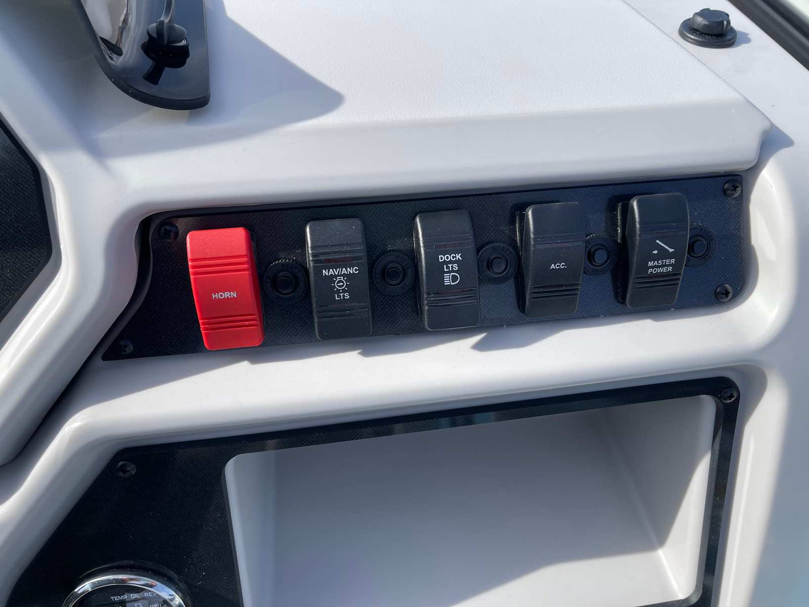 - Stern Storage Box with tip-out fender storage, dock line hooks and small item storage