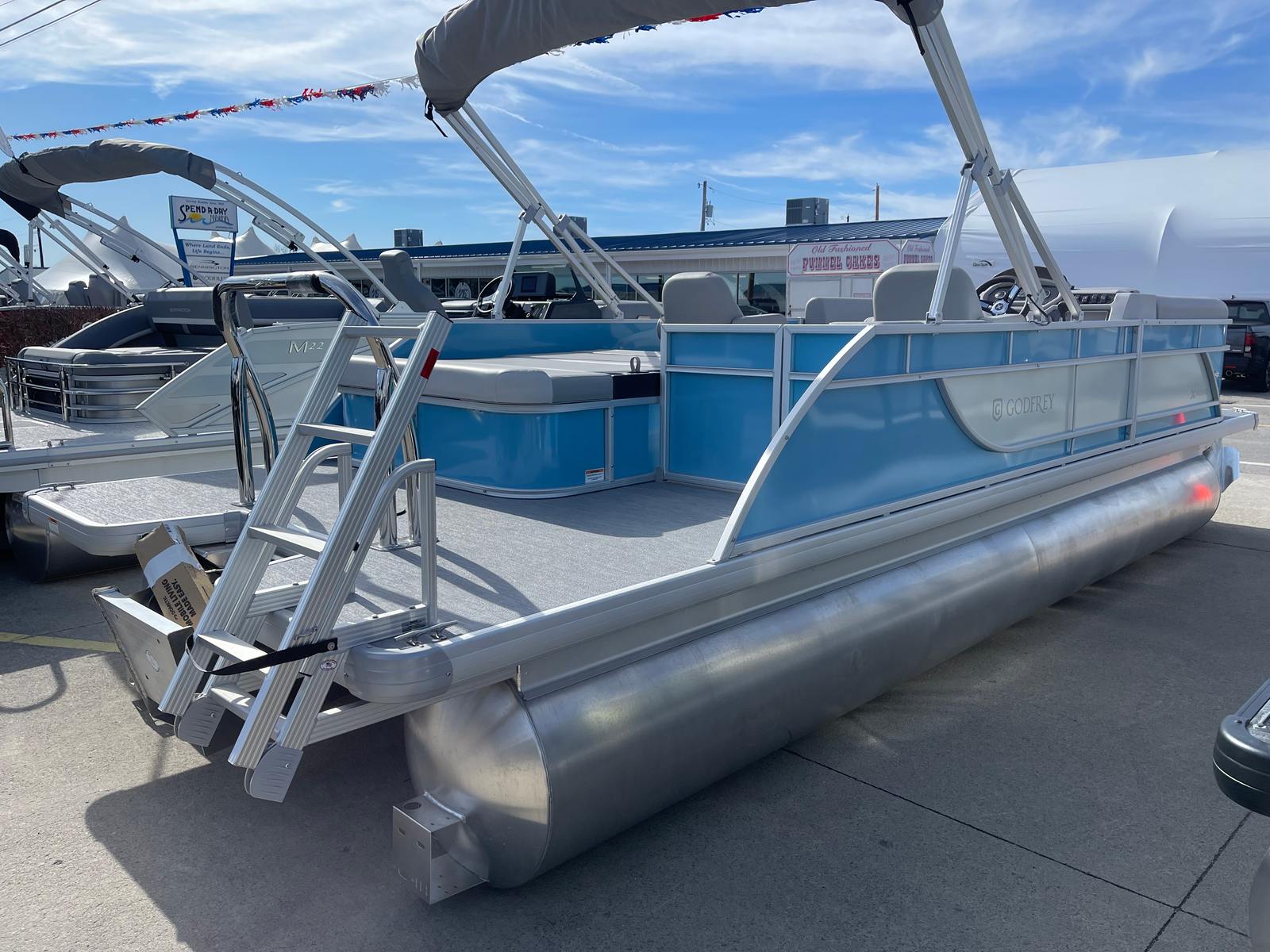The 2025 Godfrey EX 2286 Sflx pontoon is a standout choice for anyone seeking a new pontoon boat for sale that combines style, performance, and comfort. With its powerful Suzuki DF150ATL engine, extended deck, modern graphics, and thoughtful features like the snapless playpen cover, under deck skin, LED docking lights, and EZ Climb stern ladder, this boat is designed to enhance every moment on the water.Experience the ultimate in leisure and adventure with the Godfrey EX 2286 Sflx. Whether you are planning family outings, fishing trips, or unforgettable get-togethers, this pontoon is ready to deliver endless fun and relaxation. Don’t miss your chance to own a Godfrey boat for sale that truly stands out—contact your local dealer today to learn more and schedule a viewing.