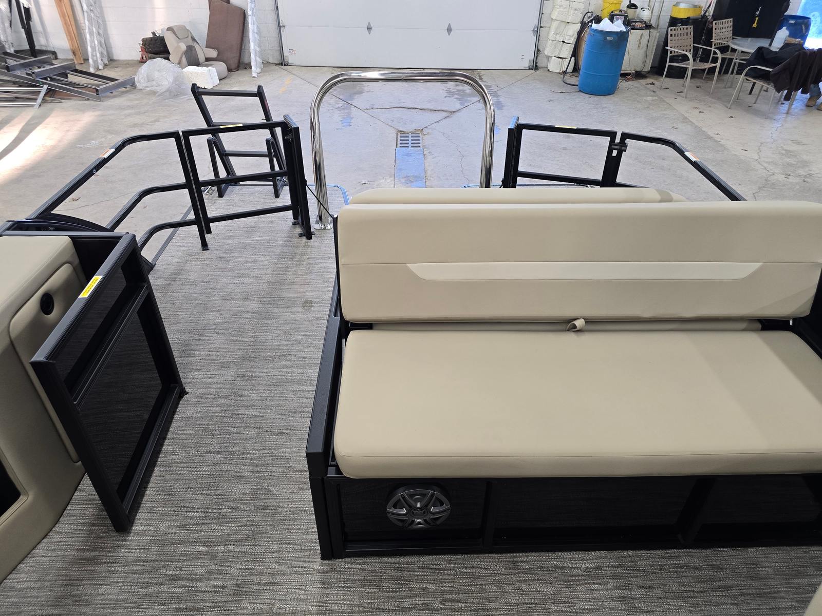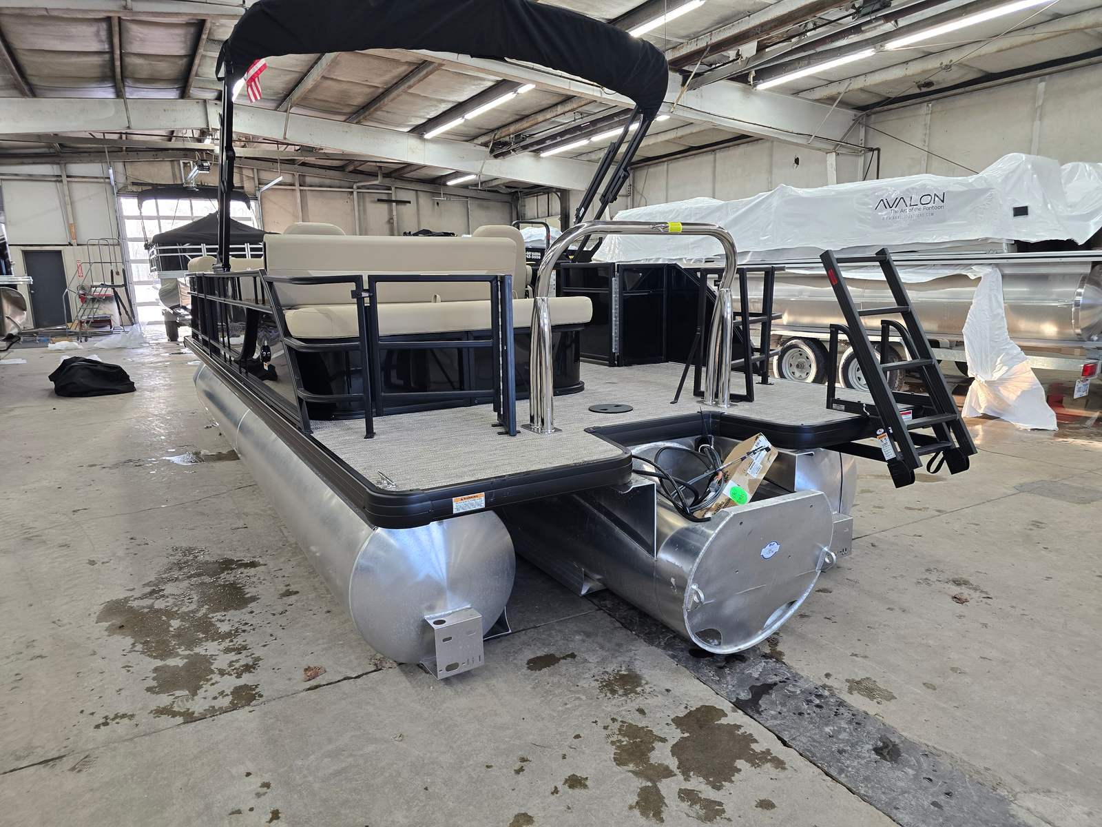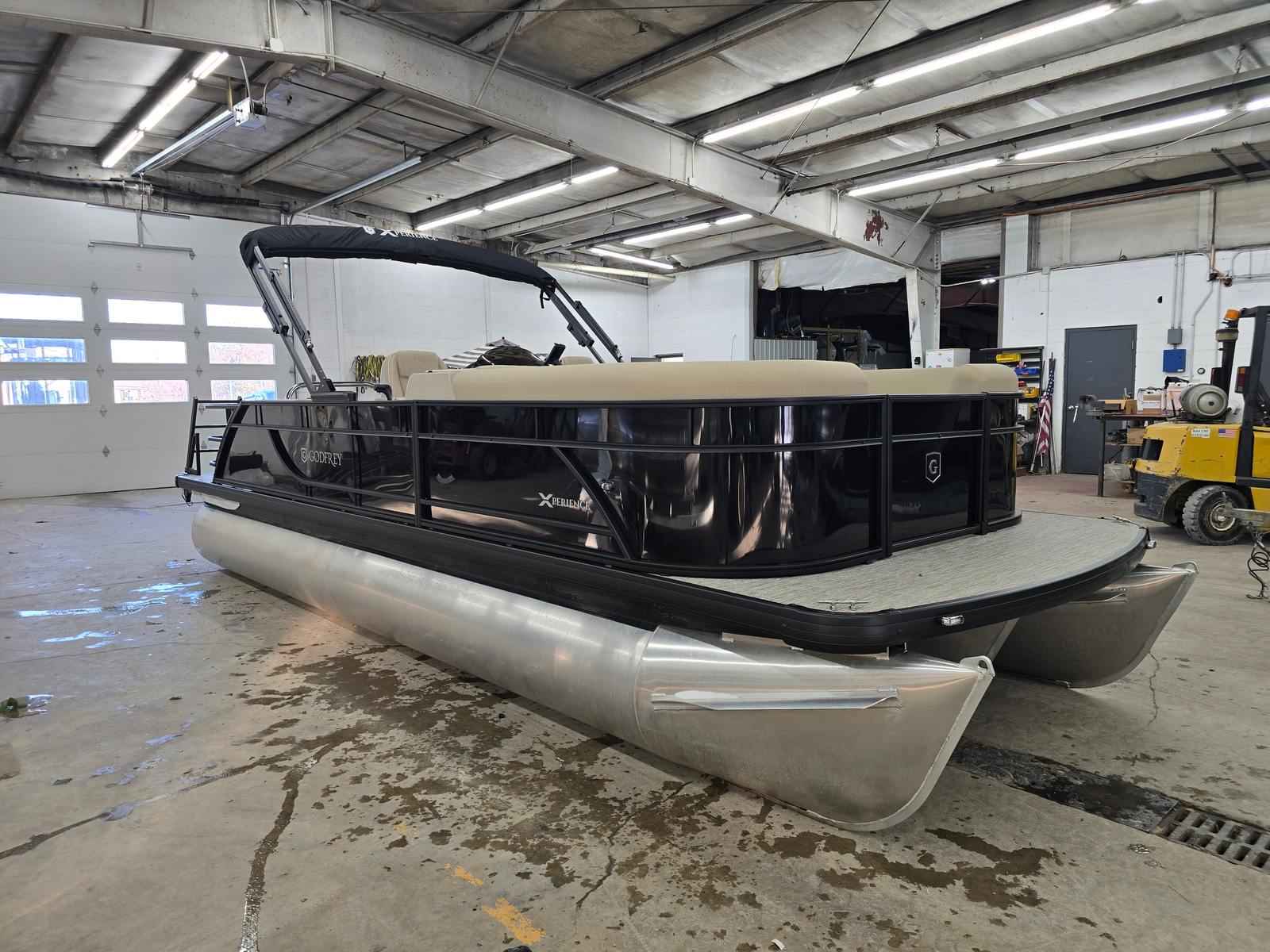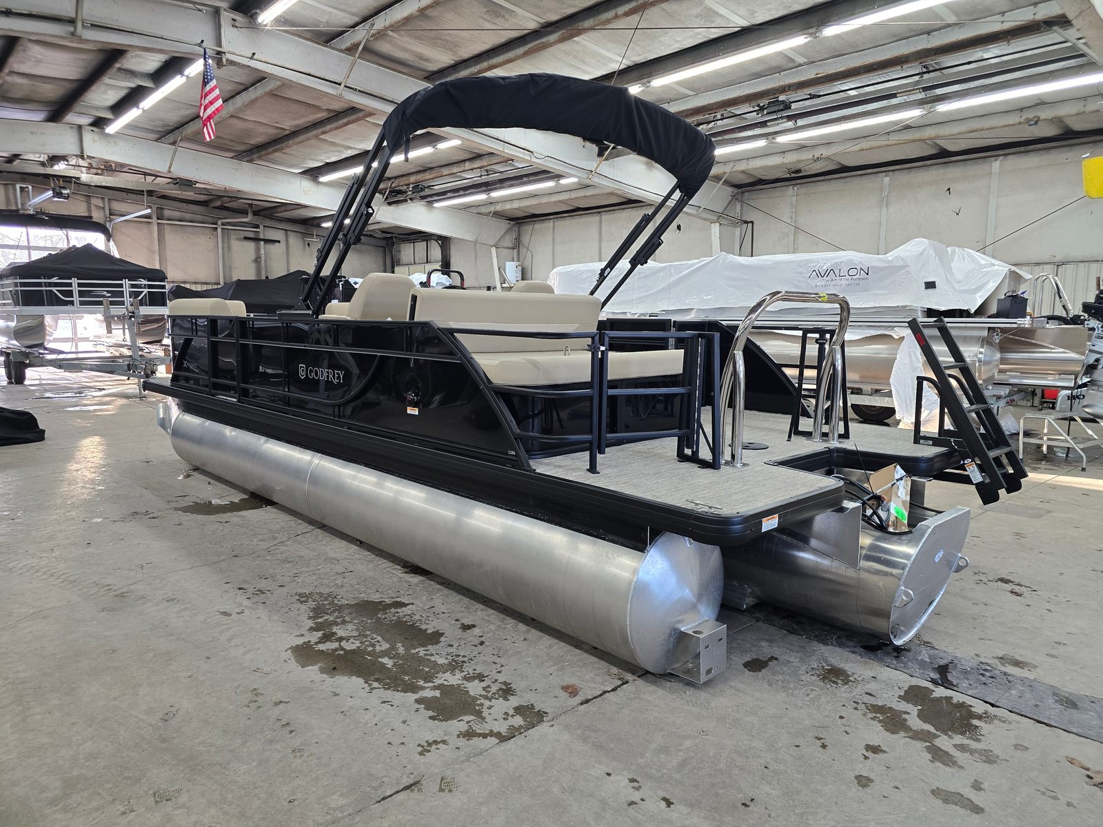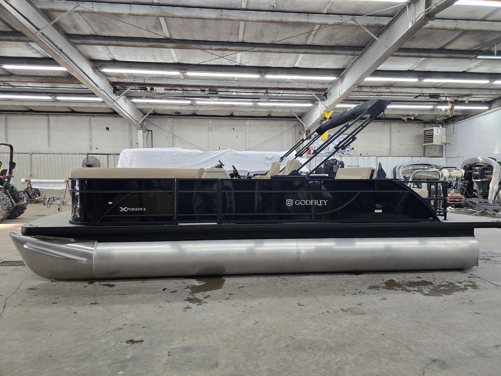 The Godfrey EX 2286 Sflx is packed with features designed to enhance your boating experience. The canopy, equipped with a protective boot and dome light in black, offers shade and shelter from the elements, allowing you to enjoy your time on the water regardless of the weather. The snapless playpen cover in black provides easy protection for your pontoon, keeping it clean and secure when not in use.Barrier gates for SFLX with a ski tow cage add an extra layer of safety and convenience, making it easy to transition between lounging and water sports. The 25-inch transom and Xperience extended deck offer additional space and stability, perfect for hosting gatherings or stretching out in comfort. The additional battery extension ensures you have reliable power for all your onboard electronics and accessories.Boarding and swimming are effortless with the black EZ Climb stern ladder, while LED docking lights illuminate your way during evening outings and make docking safer and easier. The anodized black rail frame and matching rail skin color create a cohesive, modern look that sets this pontoon apart from the rest.