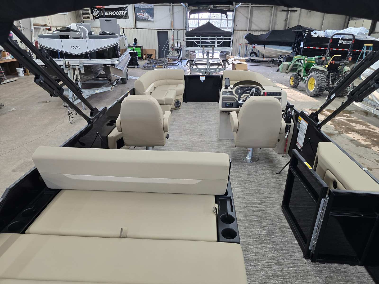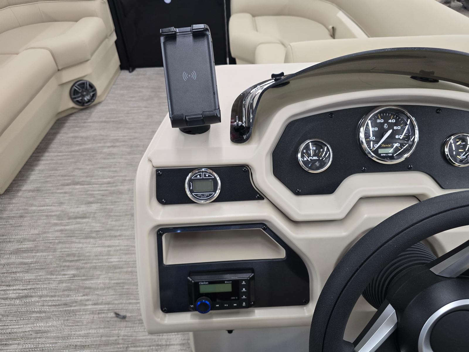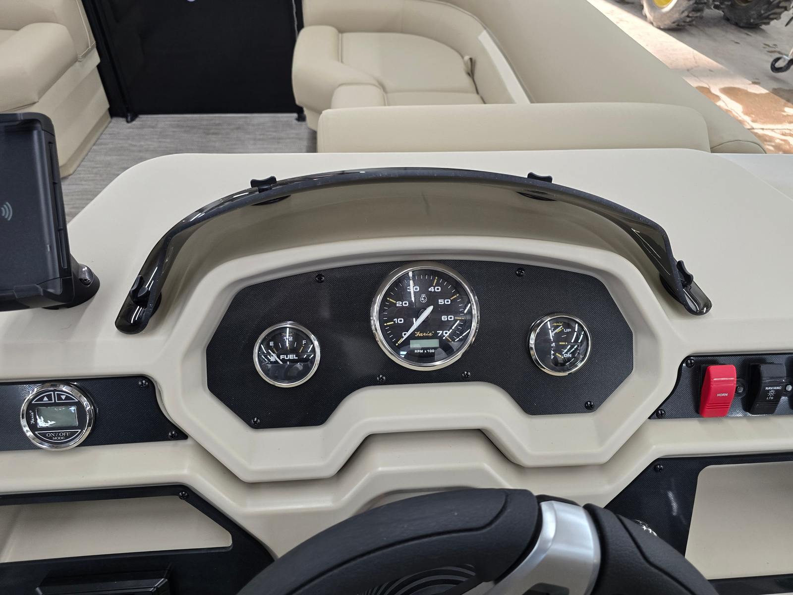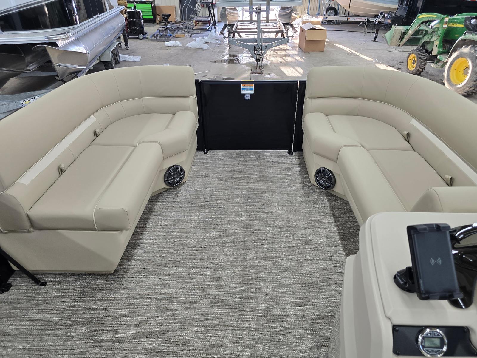 Practicality meets luxury in the Godfrey EX 2286 Sflx. The additional battery extension supports longer outings and more onboard electronics, so you can keep your devices charged and your entertainment systems running. The EZ Climb stern ladder makes it easy for everyone to get in and out of the water, enhancing safety and convenience.LED docking lights improve visibility during nighttime excursions, making docking and navigation safer and more enjoyable. The snapless playpen cover simplifies storage and maintenance, protecting your investment and reducing the time spent on upkeep. The sturdy barrier gates and ski tow cage make water sports accessible and safe, while the extended deck provides extra room for gear, coolers, and personal items.