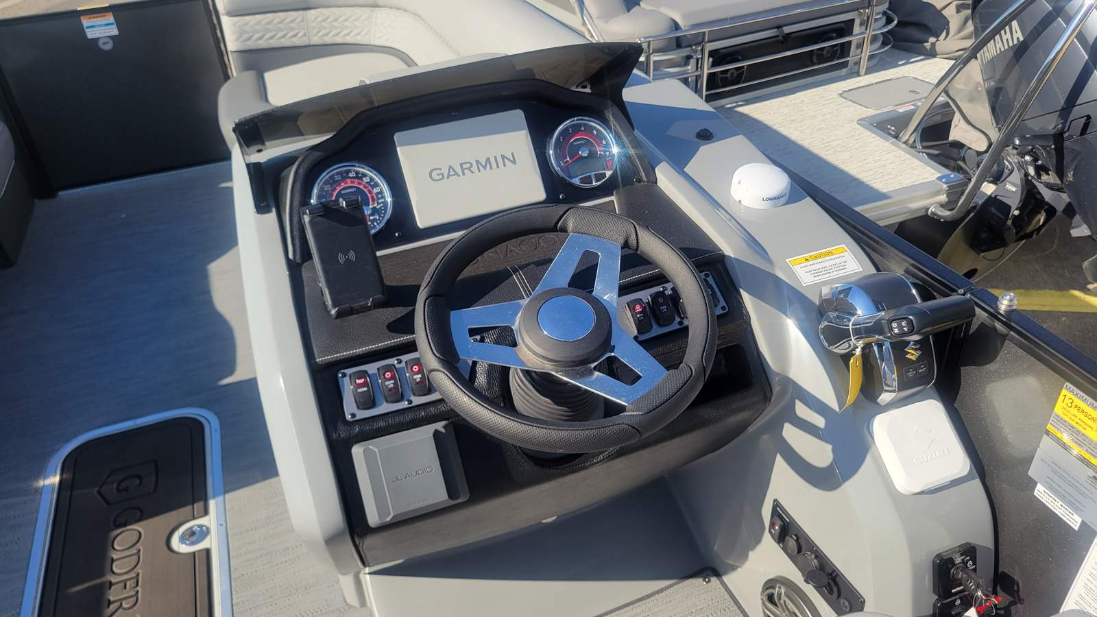 Practicality meets luxury in the MC 235 DFL. The in-floor storage and charcoal mat keep your essentials organized and protected, while the dual battery switch with trays offers peace of mind for longer trips. Docking is simplified with the integrated pull-up cleats and extended deck, providing secure mooring and easy access. The fuel-efficient Suzuki engine helps you make the most of every adventure without worrying about frequent refueling.The Lillipad ladder is perfect for swimmers and water sports enthusiasts, ensuring safe and convenient entry and exit from the water. The ScanStrut ATMOS Integrated Air Station streamlines the process of inflating water toys, paddleboards, or tubes, so you can spend more time enjoying the activities you love. Every feature is thoughtfully designed to enhance your boating experience, making ownership both enjoyable and hassle-free.