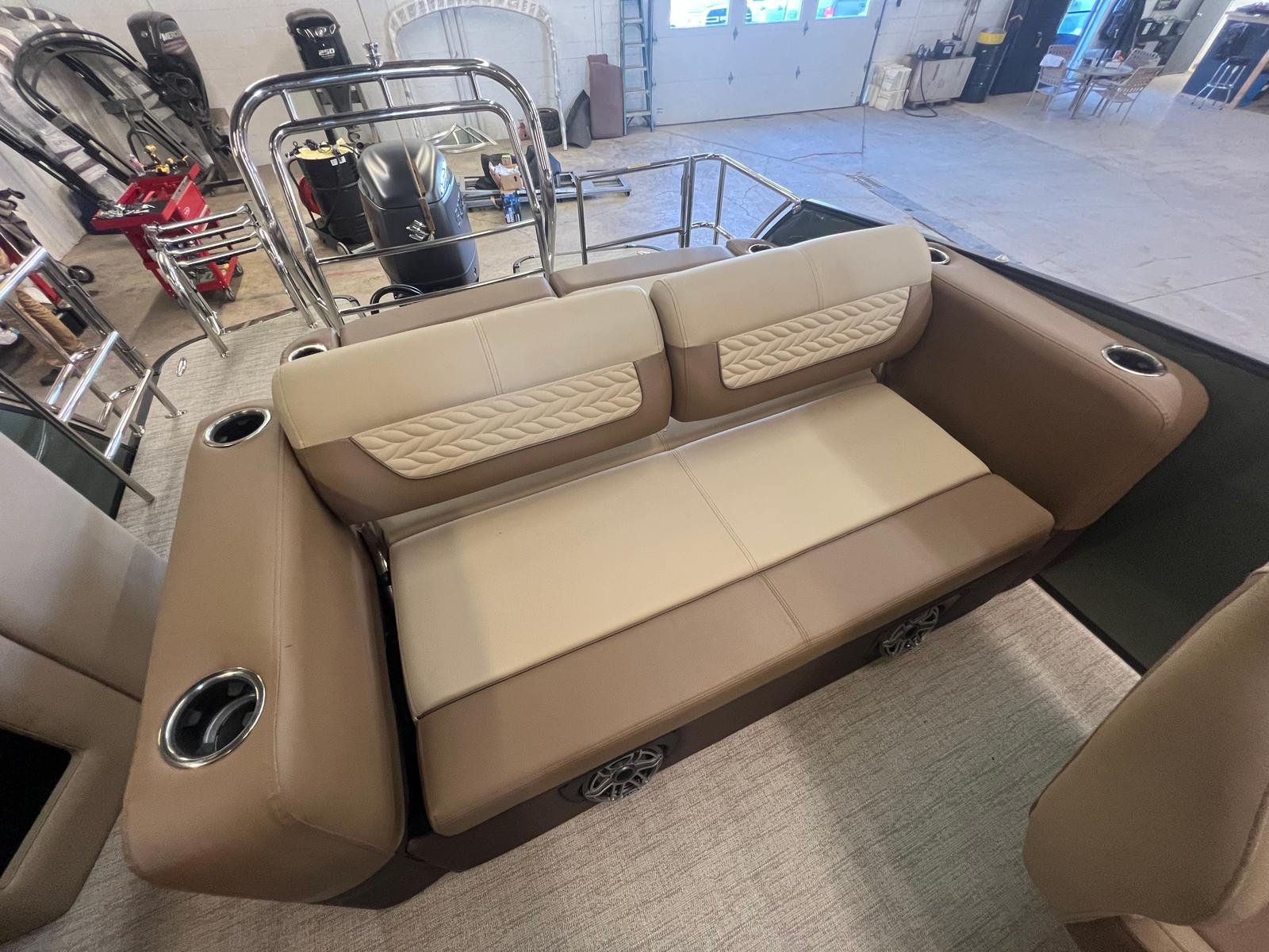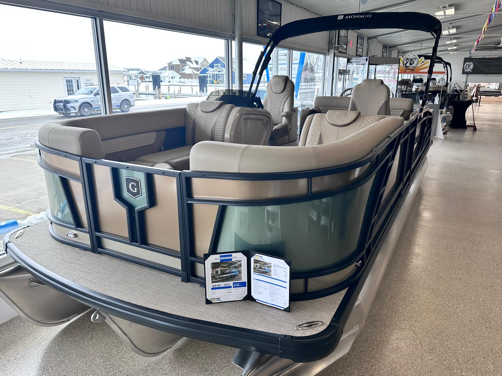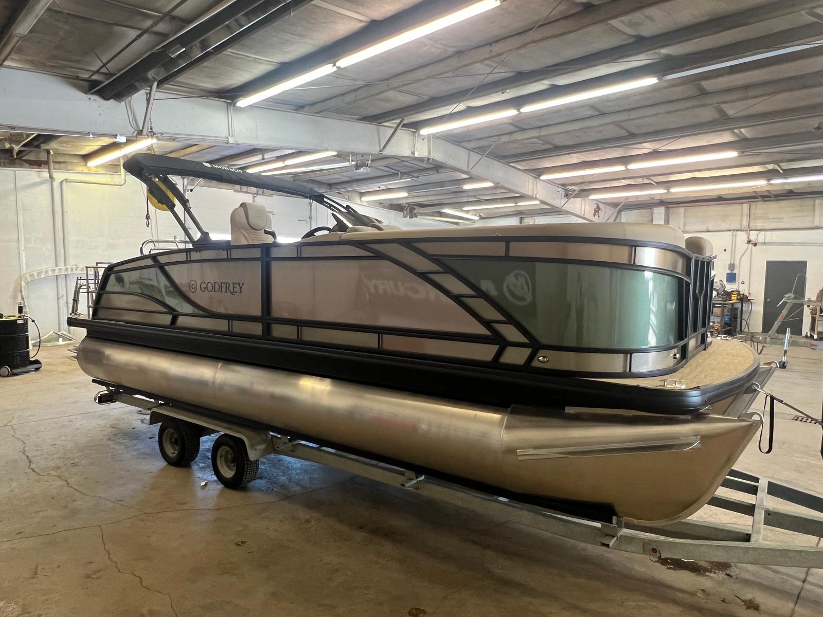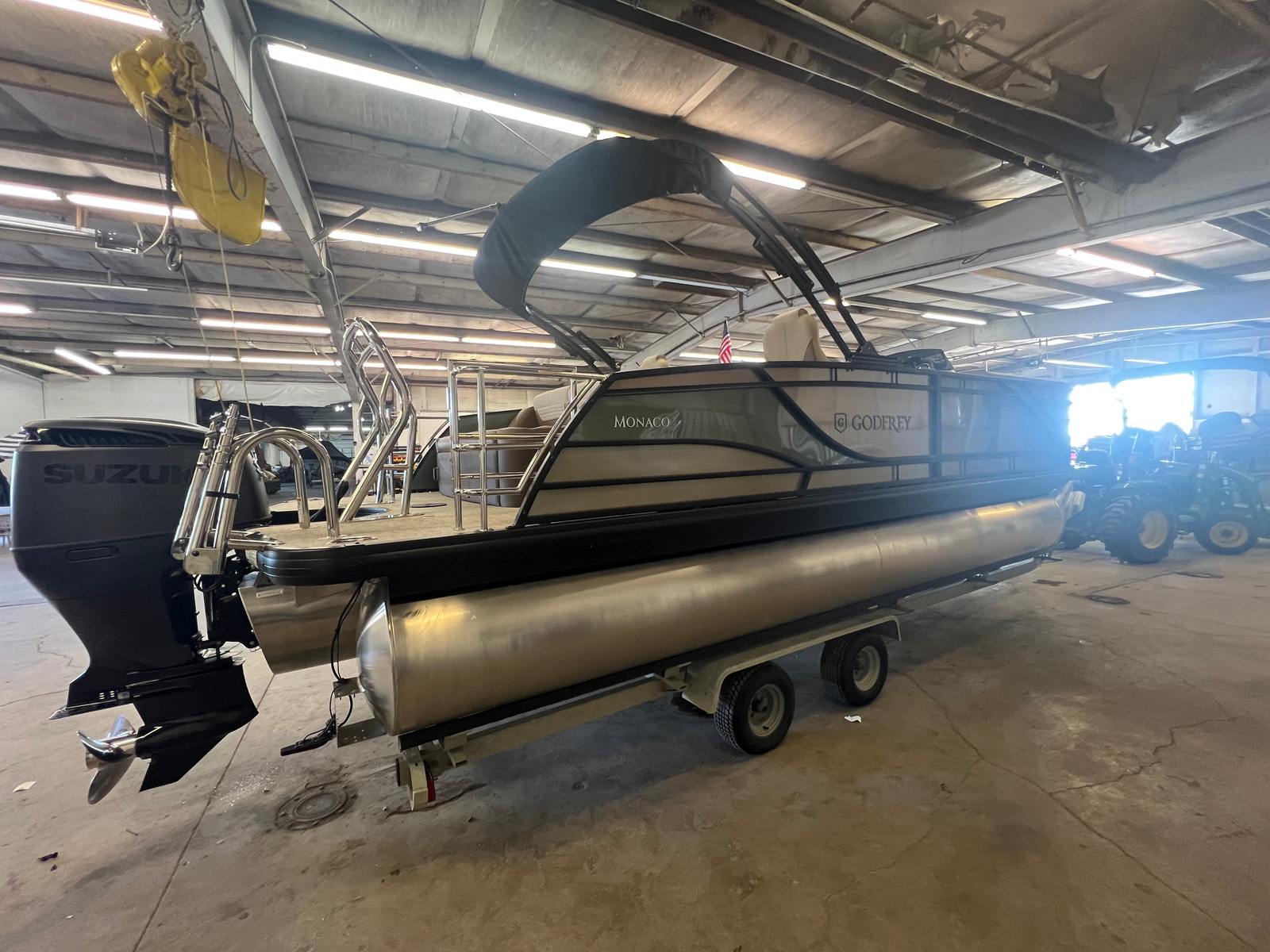 The 2025 Godfrey MC 235 DFL pontoon boat is a remarkable blend of power, style, and innovation. With its impressive 250 horsepower Suzuki DF250SSTL engine, dual battery switch with trays, in-floor storage, and eye-catching caramel and sage color scheme, this new pontoon boat for sale is designed to exceed expectations. The stainless steel telescoping ladder, anodized black rail frame, and premium finishes ensure that every detail enhances your time on the water.If you are searching for a Godfrey boat for sale that offers comfort, performance, and endless opportunities for fun, the MC 235 DFL is the perfect choice. Don’t miss the chance to make unforgettable memories with family and friends aboard this exceptional pontoon. Contact your local dealer today to learn more about the 2025 Godfrey MC 235 DFL and start your next adventure on the water.