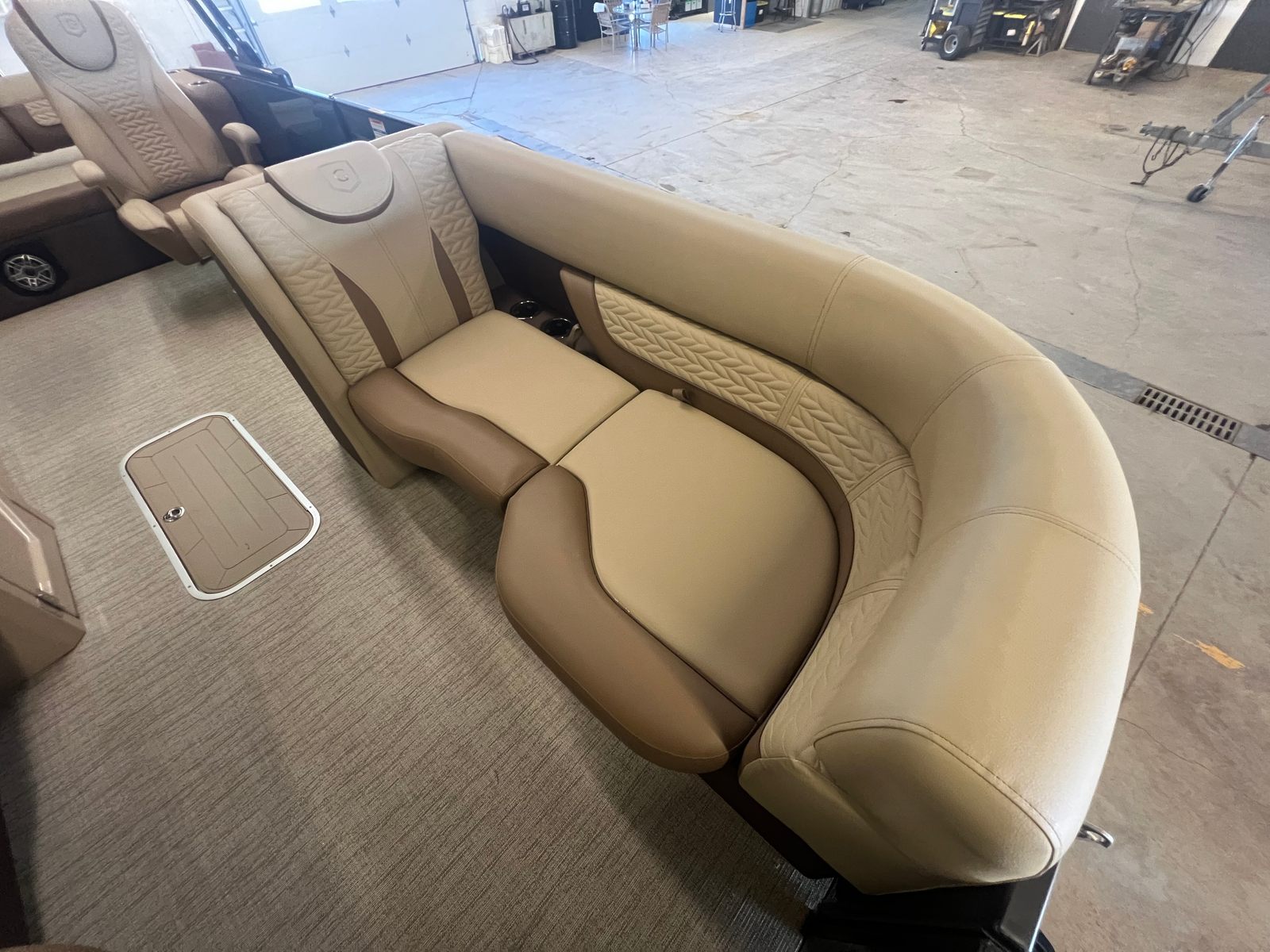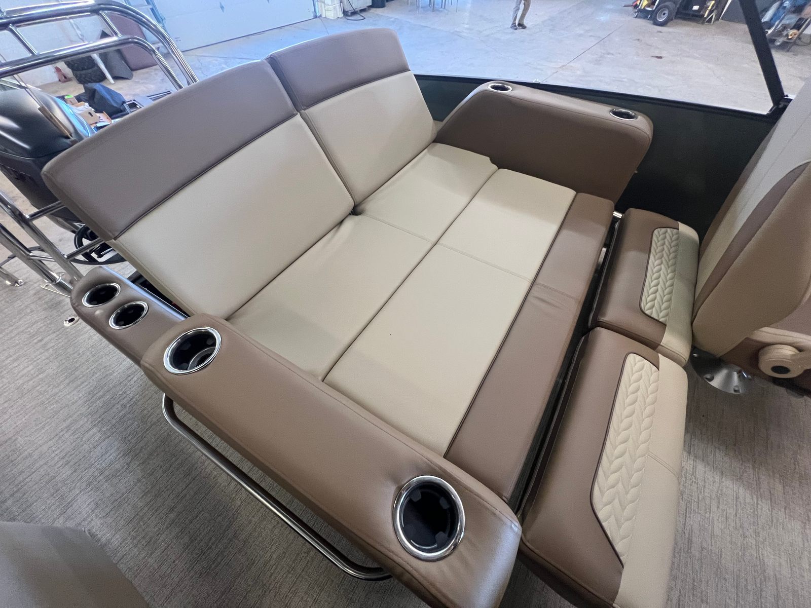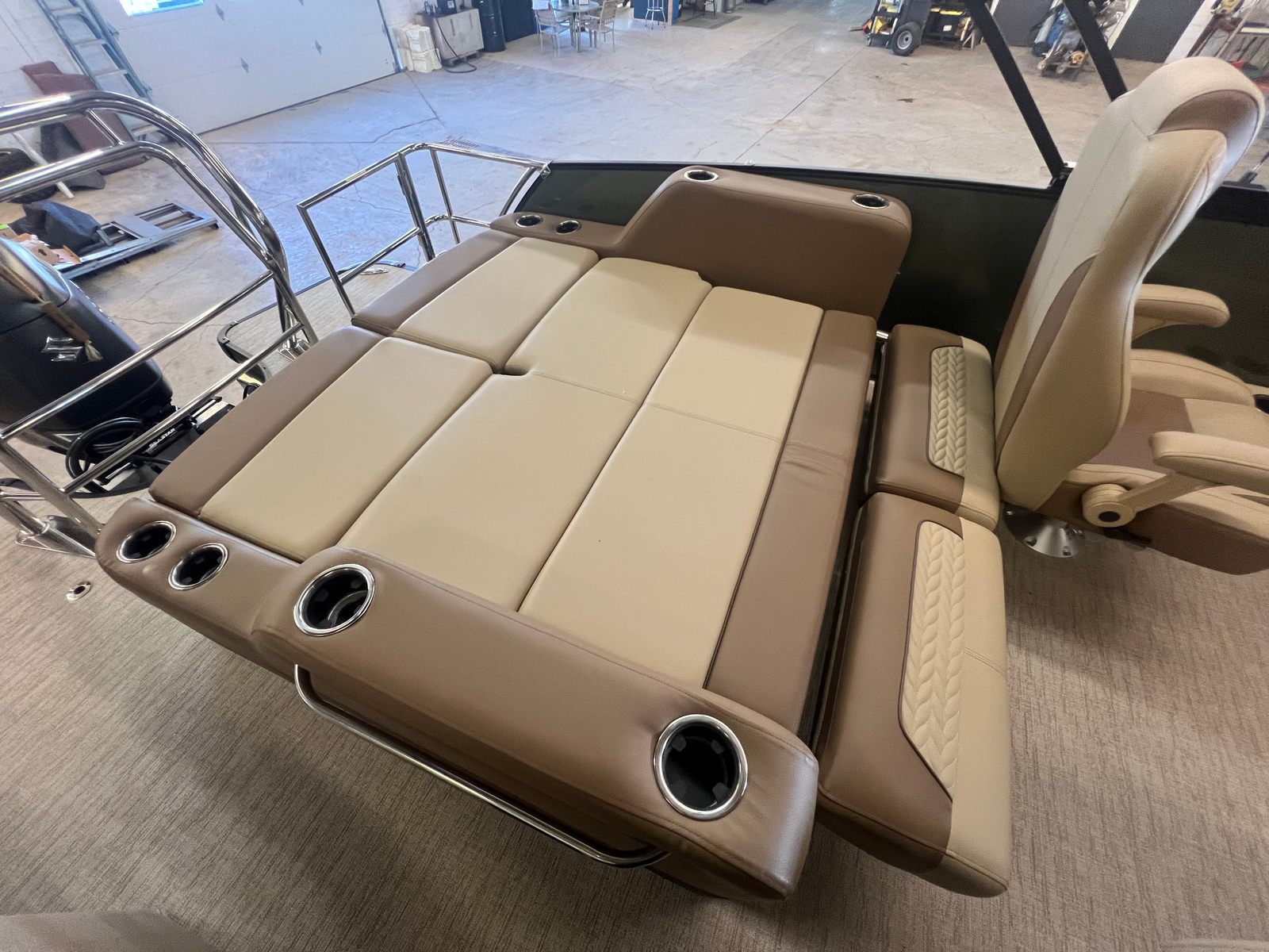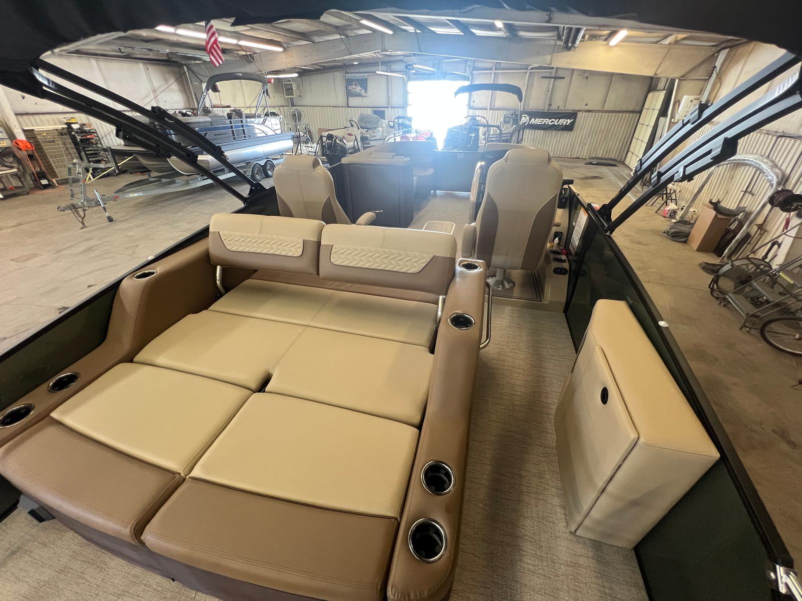 The 2025 Godfrey MC 235 DFL pontoon boat is a remarkable blend of power, style, and innovation. With its impressive 250 horsepower Suzuki DF250SSTL engine, dual battery switch with trays, in-floor storage, and eye-catching caramel and sage color scheme, this new pontoon boat for sale is designed to exceed expectations. The stainless steel telescoping ladder, anodized black rail frame, and premium finishes ensure that every detail enhances your time on the water.If you are searching for a Godfrey boat for sale that offers comfort, performance, and endless opportunities for fun, the MC 235 DFL is the perfect choice. Don’t miss the chance to make unforgettable memories with family and friends aboard this exceptional pontoon. Contact your local dealer today to learn more about the 2025 Godfrey MC 235 DFL and start your next adventure on the water.