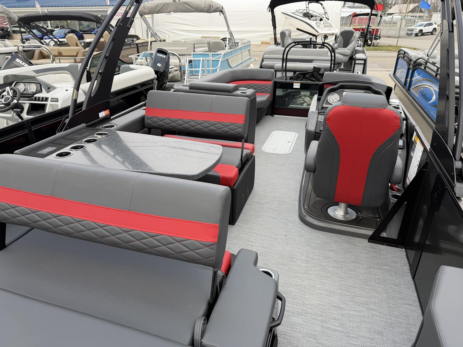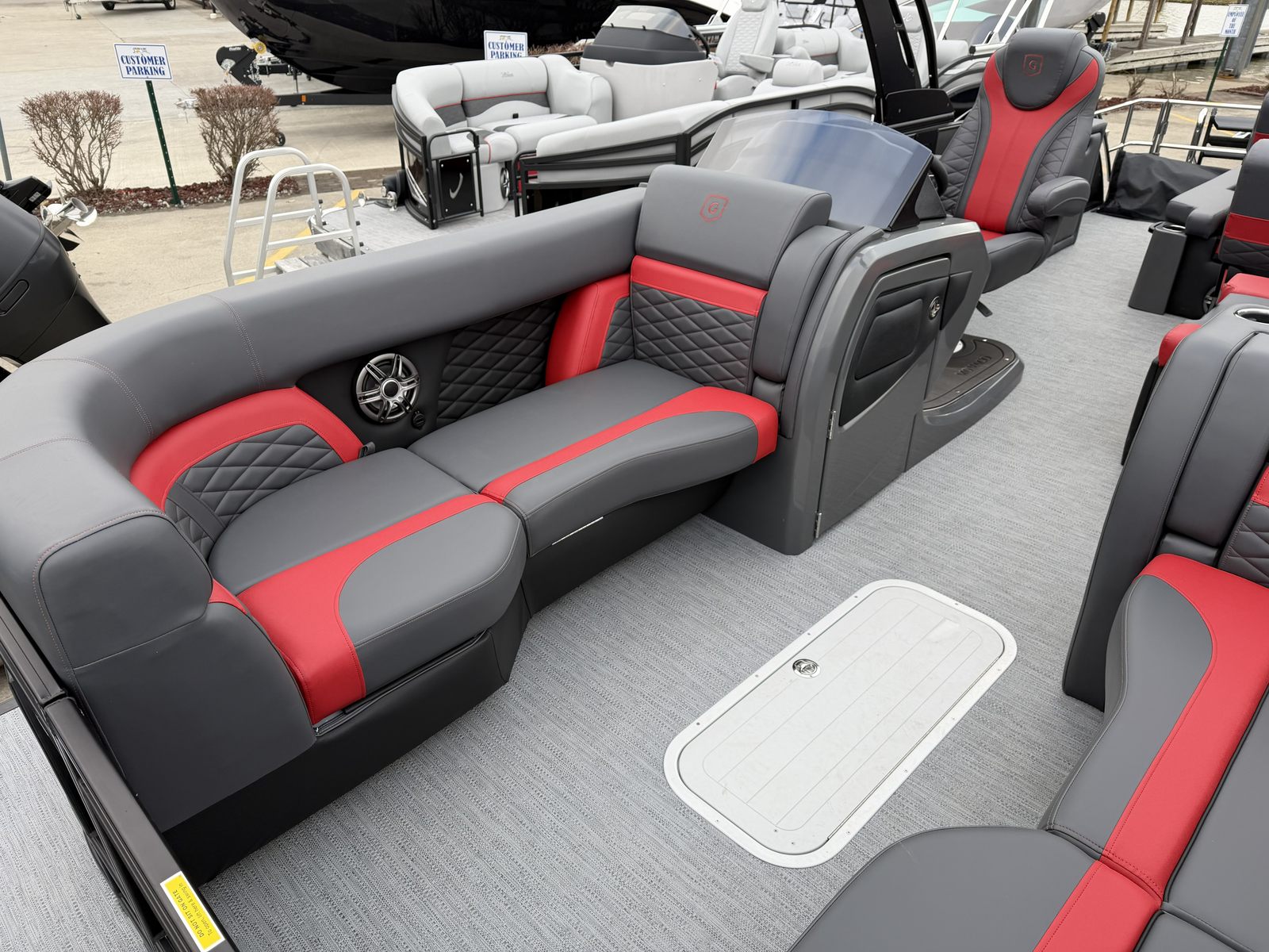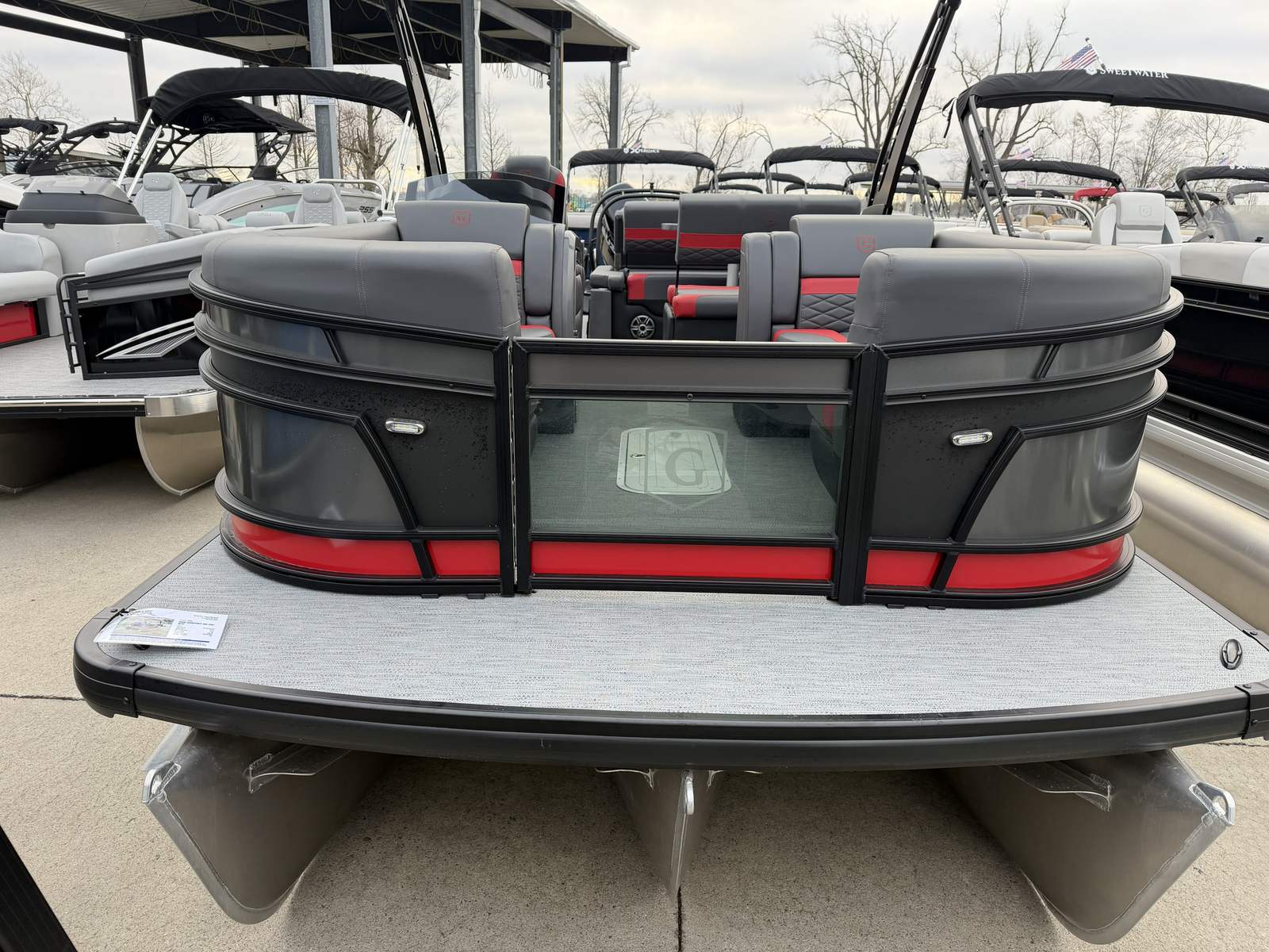 The 2026 Godfrey MC 255 MTF is a brand-new pontoon that measures an impressive 25.75 feet in length, offering ample space for entertaining, lounging, and enjoying the open water. With its sleek lines, modern design, and eye-catching Graphic Bottom Stripe in Crimson, this pontoon commands attention at every dock and on every lake. Whether you are planning a day of cruising, watersports, or simply soaking up the sun, the MC 255 MTF provides the perfect platform for all your aquatic adventures.