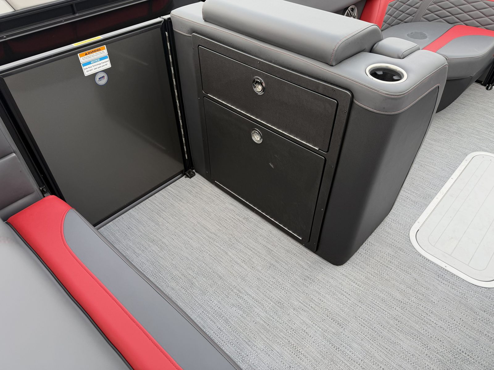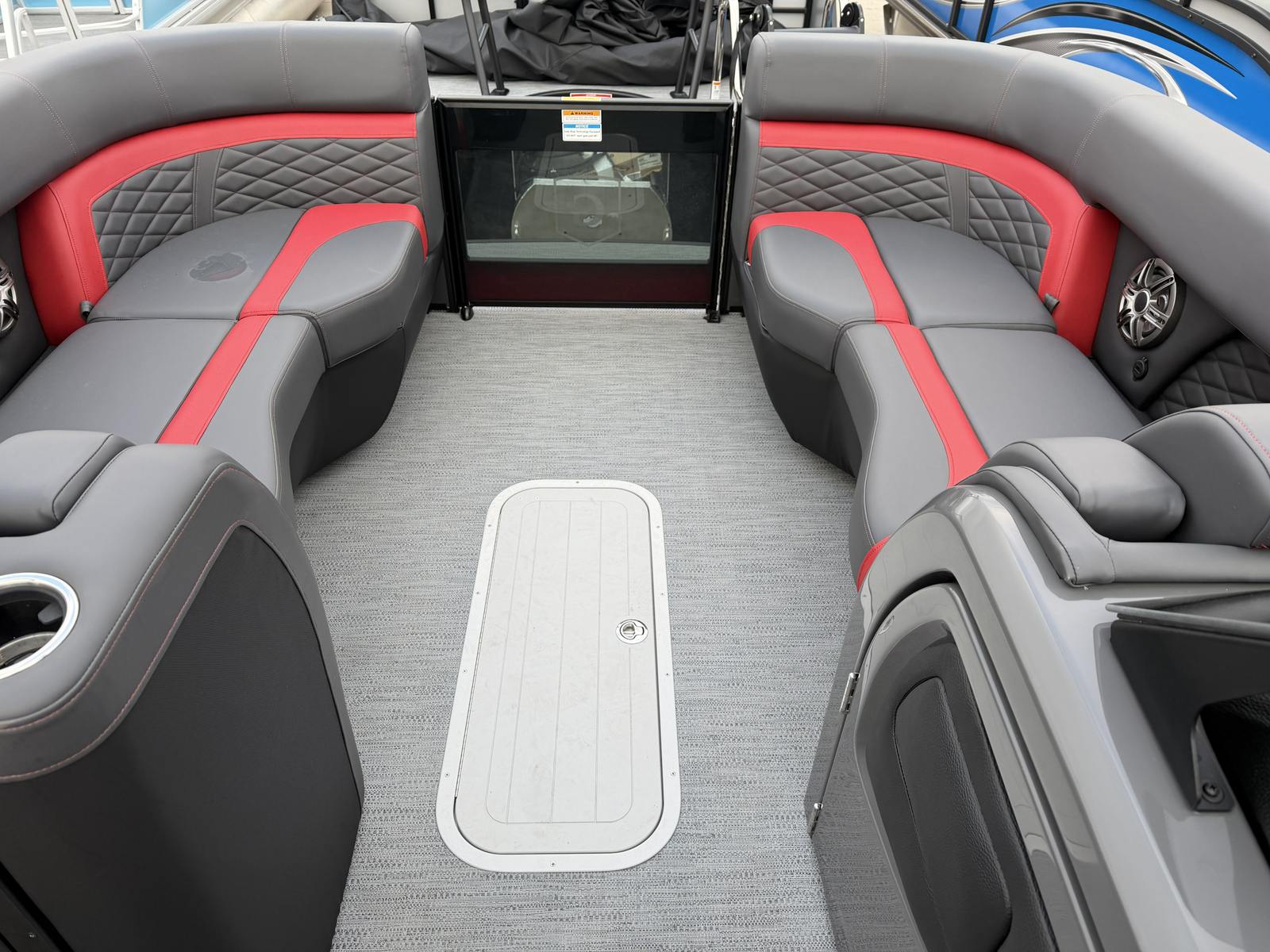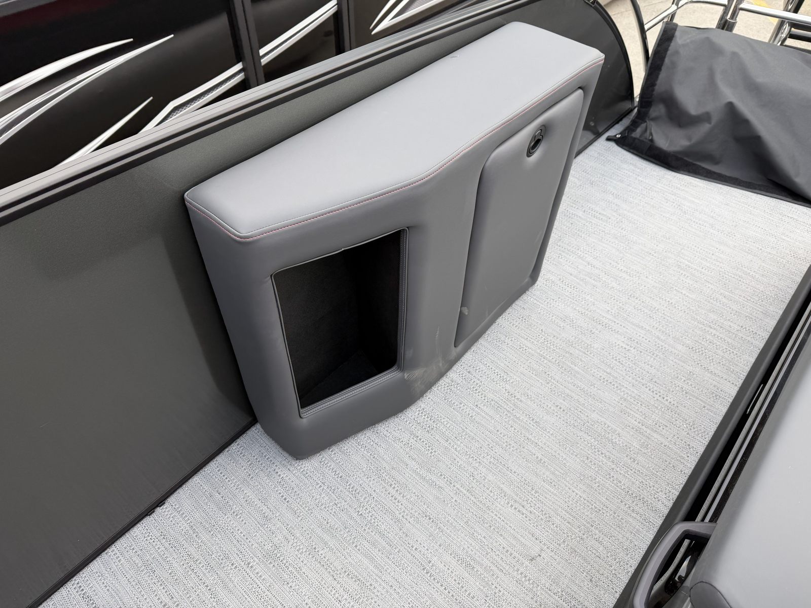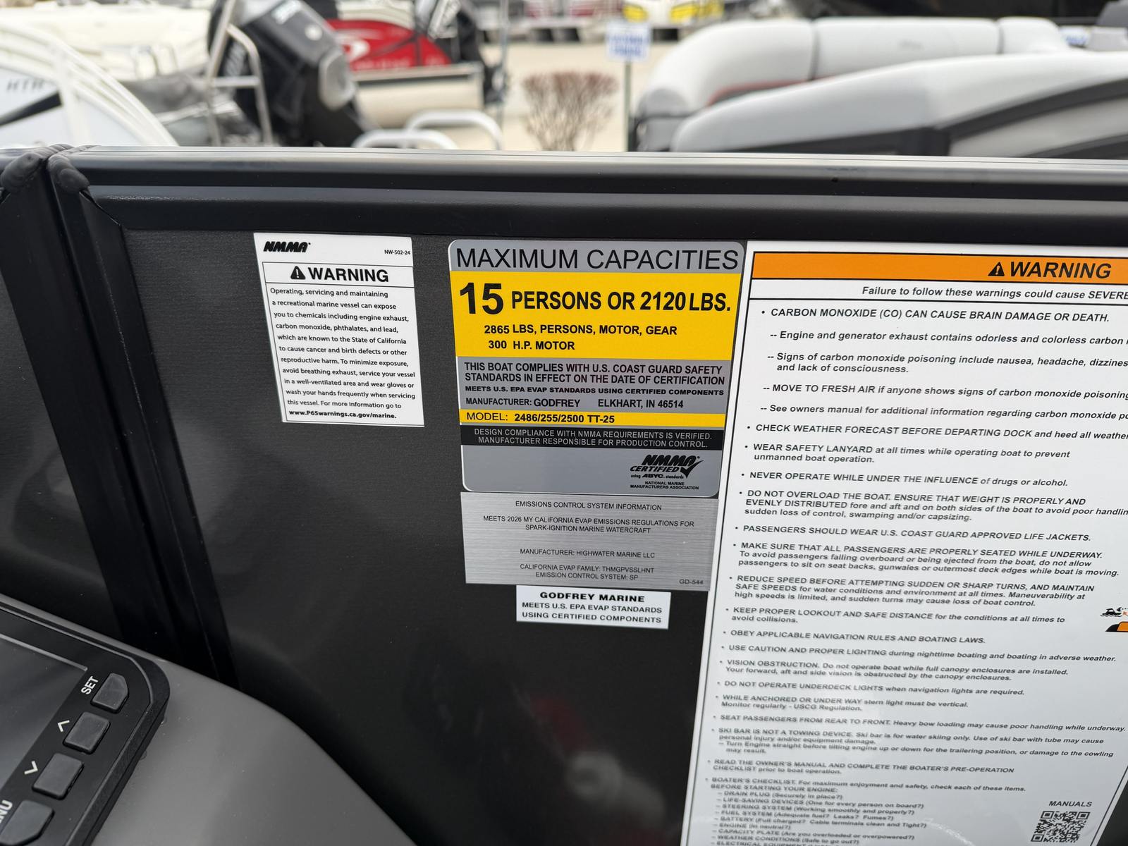 The 2026 Godfrey MC 255 MTF is loaded with innovative features designed to enhance your boating lifestyle. The Sport Wave Bimini in Black offers stylish and effective shade, keeping you and your guests cool and comfortable during sunny afternoons. The anchor bracket, mounted inside the in-floor storage, allows for safe and easily accessible storage of your box anchor, ensuring quick deployment and secure anchoring wherever your journey takes you.Practicality meets convenience with the dual battery switch and trays, providing reliable power management for all your onboard electronics and accessories. The helm features a tip-out, lockable glovebox for secure storage of valuables and essentials, while the in-floor storage mat in Slate adds a touch of sophistication and protection for your gear. Additional in-floor and transom storage options, including a spacious 25-inch transom compartment, offer plenty of room for water toys, life jackets, and other necessities.One of the standout features is the ScanStrut ATMOS Integrated Air Station, which brings modern convenience to your boating experience. This integrated air station makes inflating water toys, paddleboards, or even air mattresses quick and effortless, so you can spend more time enjoying the water and less time preparing for fun.