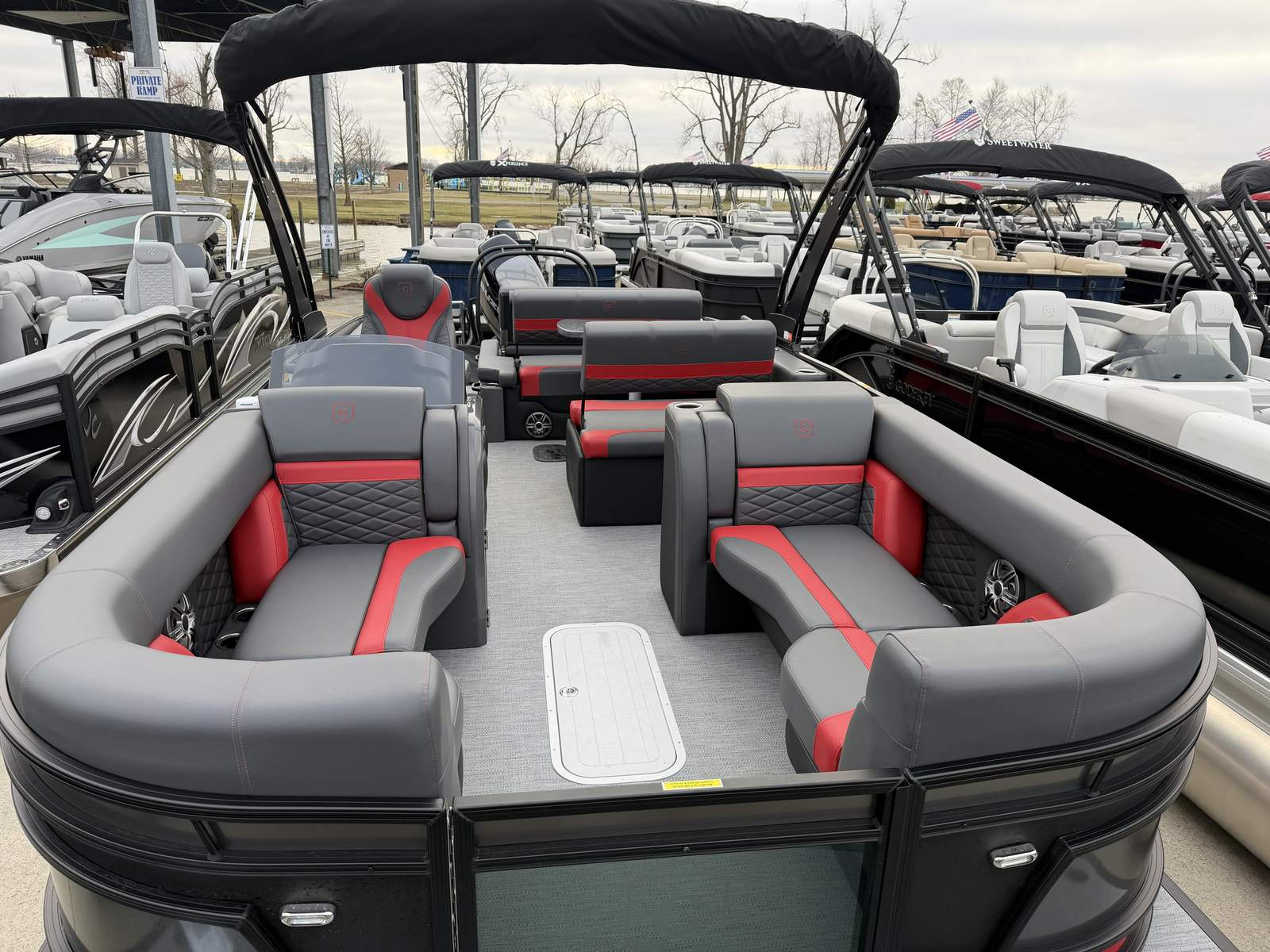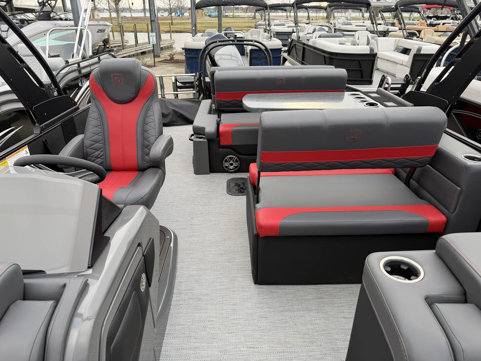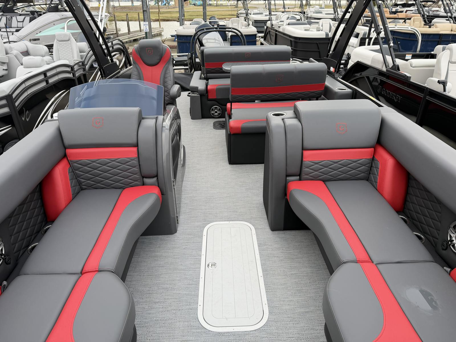 The Godfrey MC 255 MTF is as practical as it is luxurious. The in-floor and transom storage compartments provide ample space for all your gear, making it easy to keep the deck tidy and ready for action. The dual battery system ensures reliable power for extended outings, while the integrated air station adds a layer of convenience for families and watersports enthusiasts alike.Docking and maneuvering are made simple thanks to the pontoon’s responsive handling and well-balanced design. The anchor bracket’s strategic placement allows for quick and safe anchoring, giving you peace of mind when stopping to swim, fish, or relax. The durable construction and high-quality materials ensure that your investment will provide years of enjoyment with minimal maintenance.