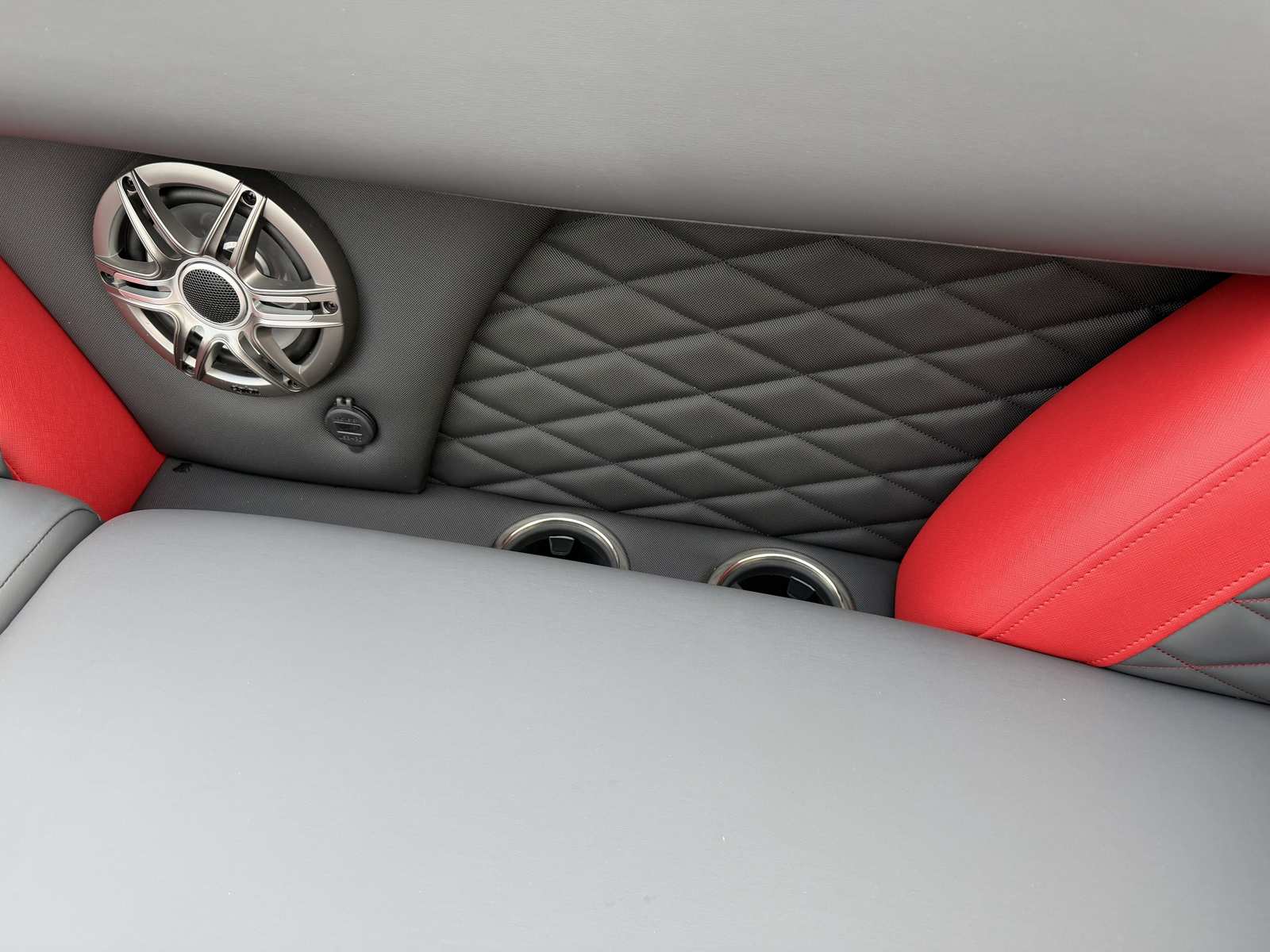 - Stereo; Aft Exterior speakers (2) - Clarion RGB(2) 6.5" RGB Speakers with Sport Grilles w/ Chrome, and 6 channel 600W amplifier