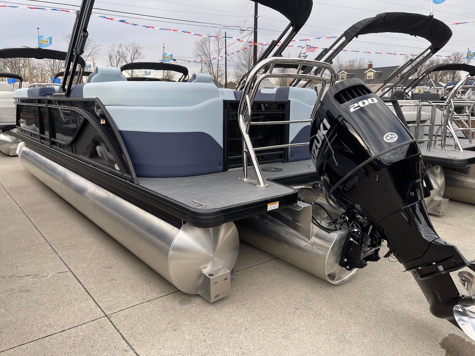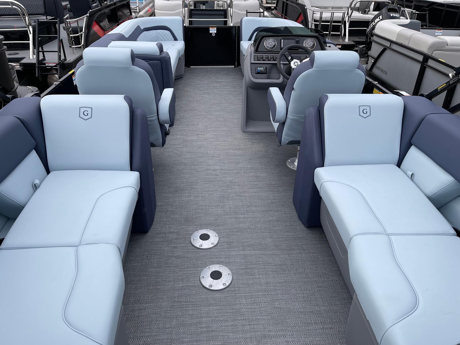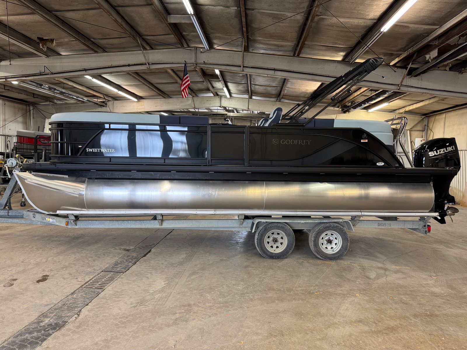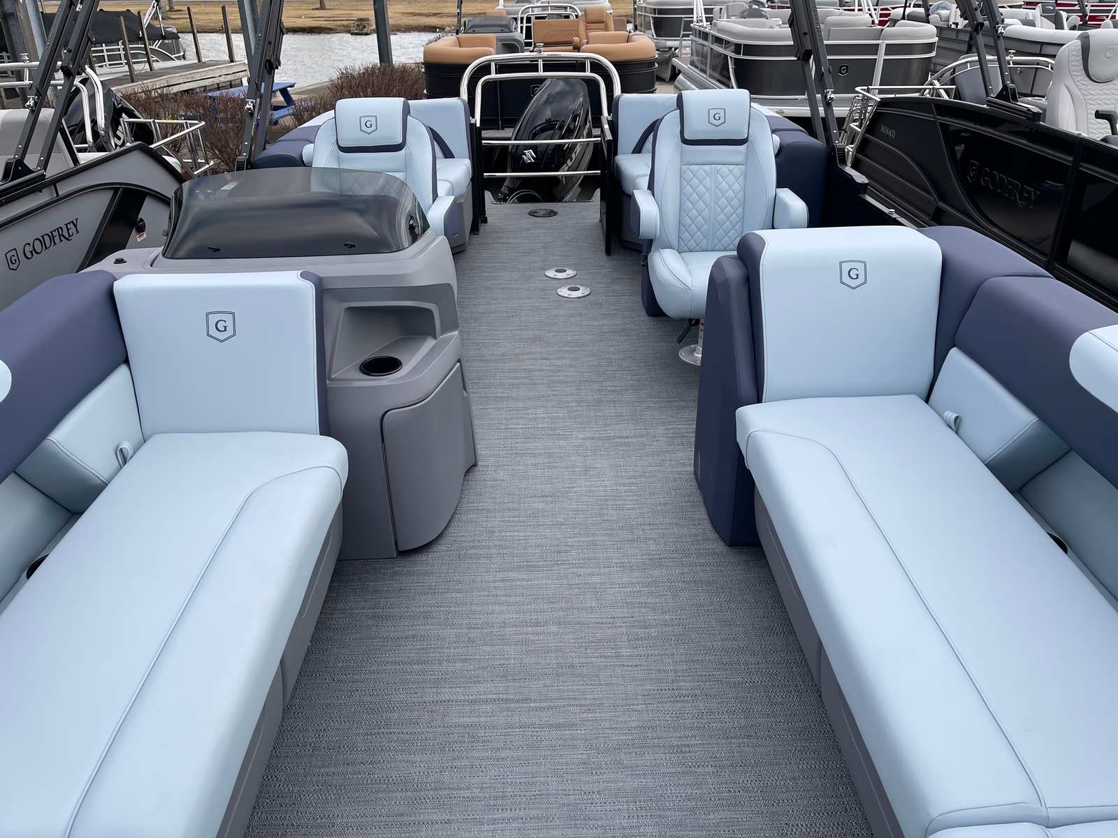 In summary, the 2025 Godfrey SW 2286 SB Pontoon is a remarkable choice for anyone seeking a new pontoon boat for sale that combines luxury, performance, and versatility. With its powerful Suzuki DF200ATL engine, innovative features like the dual battery switch, LED docking lights, and sport-polished ski tow bar, and its eye-catching design elements, this Godfrey boat for sale stands out from the crowd. The Platinum Weave flooring, Riviera Cool Touch vinyl, and modern rail system ensure comfort, style, and durability for years to come.Whether you’re planning family adventures, social gatherings, or peaceful escapes, the Godfrey SW 2286 SB is ready to deliver unforgettable moments on the water. Don’t miss your chance to own this exceptional pontoon – contact your local dealer today to learn more and schedule a viewing. Your next great adventure awaits with the Godfrey SW 2286 SB!