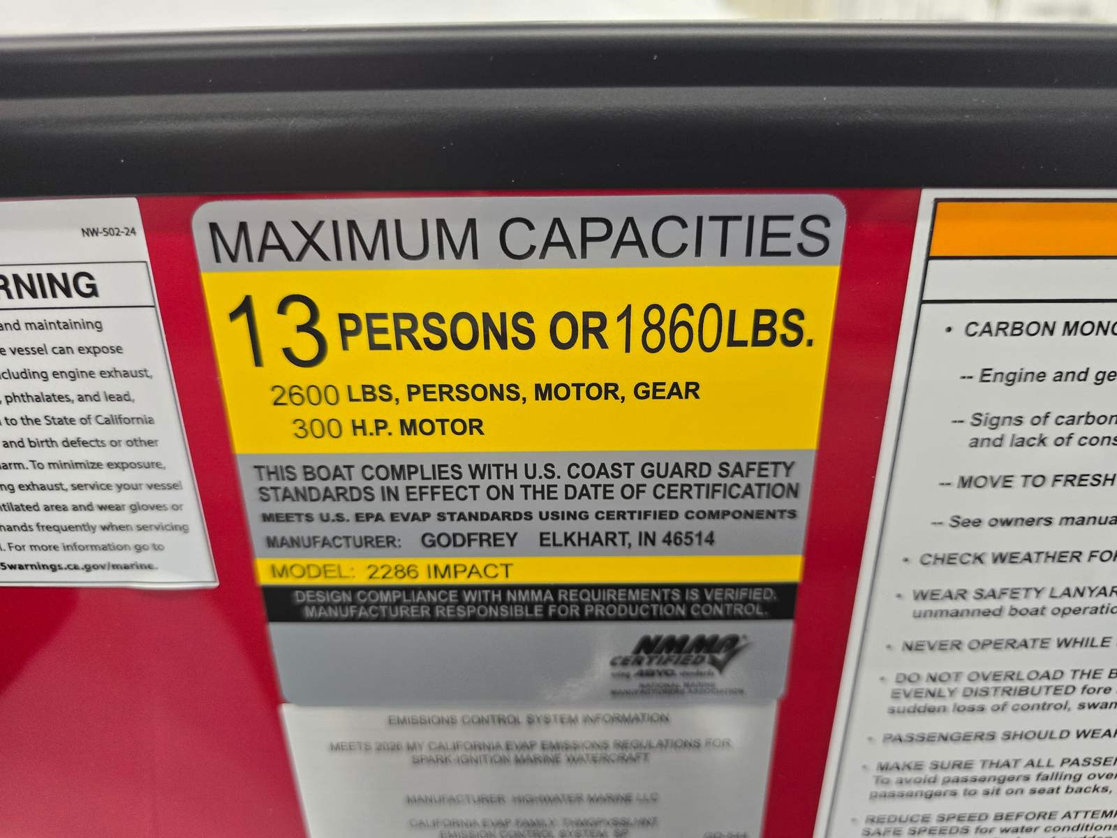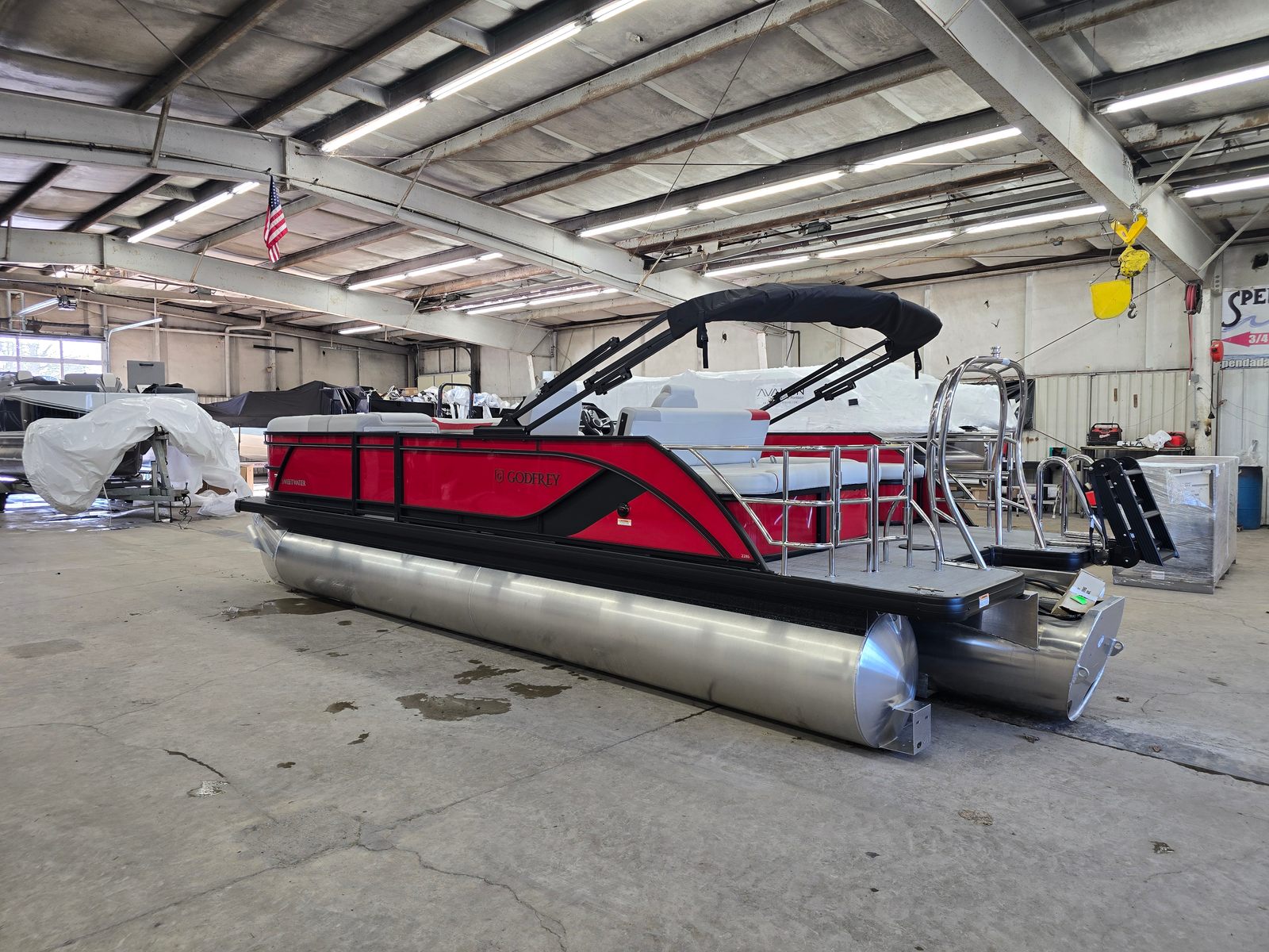 The 2026 Godfrey SW 2286 Sflc pontoon boat is a testament to Godfrey’s commitment to quality and innovation. Measuring just over 23 feet in length, this pontoon offers ample space for socializing, lounging, and enjoying the open water. Its sleek profile, highlighted by the striking Crimson Smooth Rail Skin and Anodized Black Rail Frame, ensures you’ll turn heads at every marina and lakefront. The Fastback Rails and SeaView Bow Gate add a touch of sophistication and safety, making this Godfrey boat for sale a true standout in its class.