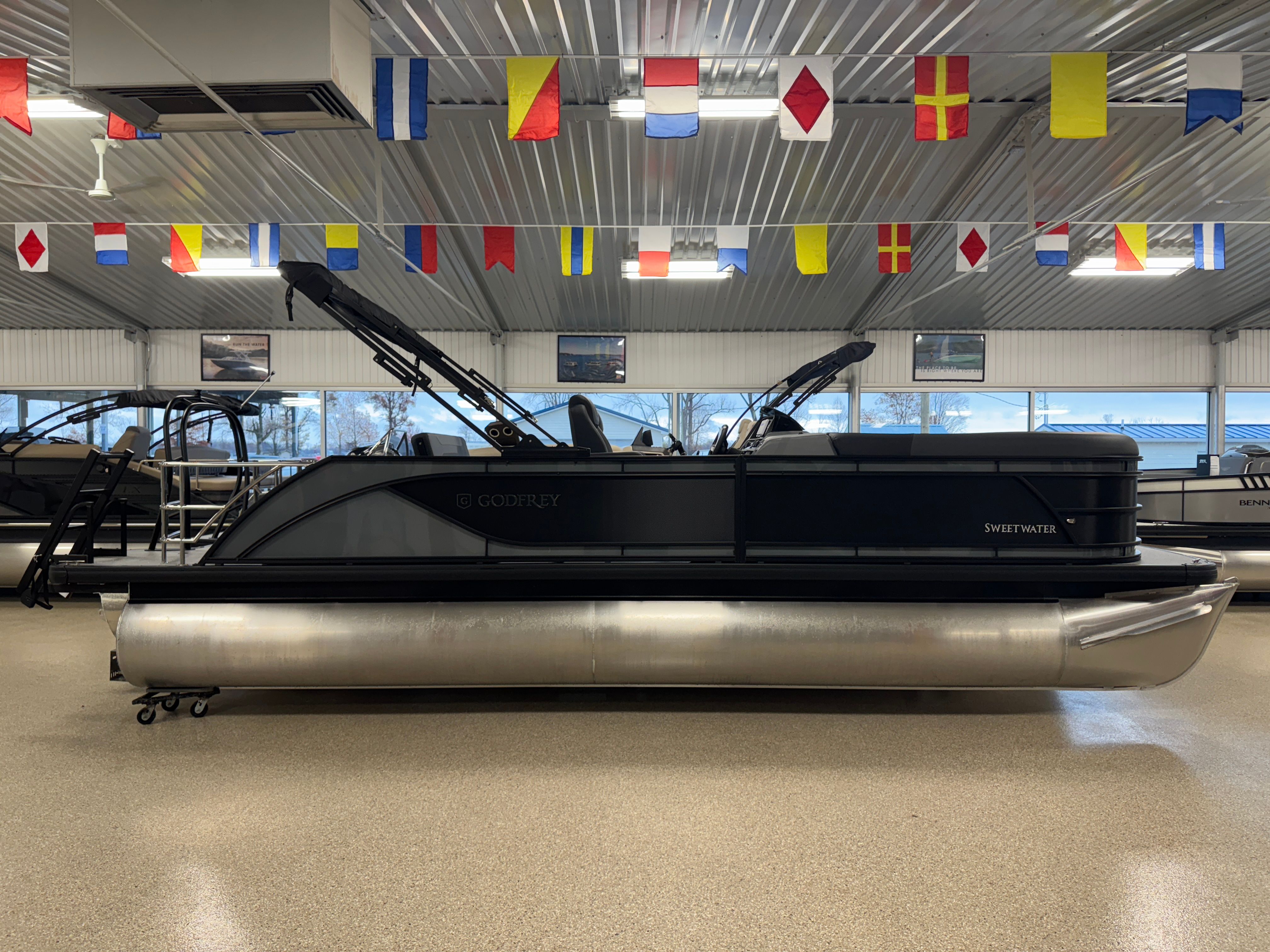 The 2026 Godfrey SW 2286 Sflc pontoon boat for sale is a remarkable blend of style, performance, and innovation. With its powerful Suzuki DF200ATX engine, spacious 23-foot deck, and a host of special features—including Click & Cruise Tethers, in-floor storage, ScanStrut ATMOS Integrated Air Station, mid-body carbon fiber graphics, black EZ Climb Stern ladder, and LED docking lights—this Godfrey boat for sale is designed to deliver endless enjoyment on the water.Experience the ultimate in comfort, convenience, and fun with a pontoon boat that’s built for memorable moments and effortless adventures. Don’t miss your chance to own this exceptional vessel—contact the dealer today to learn more and start your journey with the Godfrey SW 2286 Sflc!