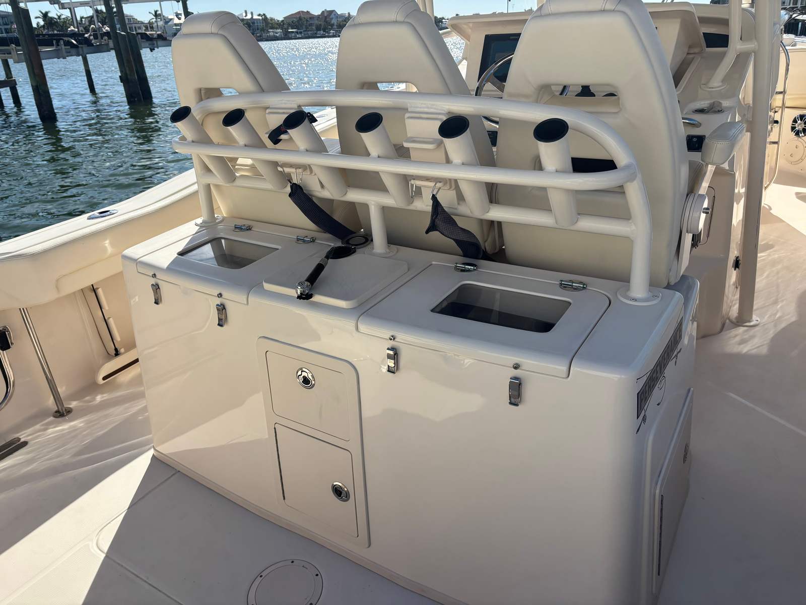 Powering the Grady-White Canyon 336 are twin engines, delivering a combined 850 horsepower. This formidable setup ensures exhilarating acceleration, impressive top speeds, and confident handling in a variety of sea conditions. The dual-engine configuration not only enhances performance but also provides added reliability and peace of mind for longer journeys. Whether you are navigating coastal waters or heading offshore, the Canyon 336’s responsive handling and smooth ride make every trip enjoyable and safe. The robust powertrain is designed for those who demand both speed and efficiency, making this center console boat a top contender for serious boaters.