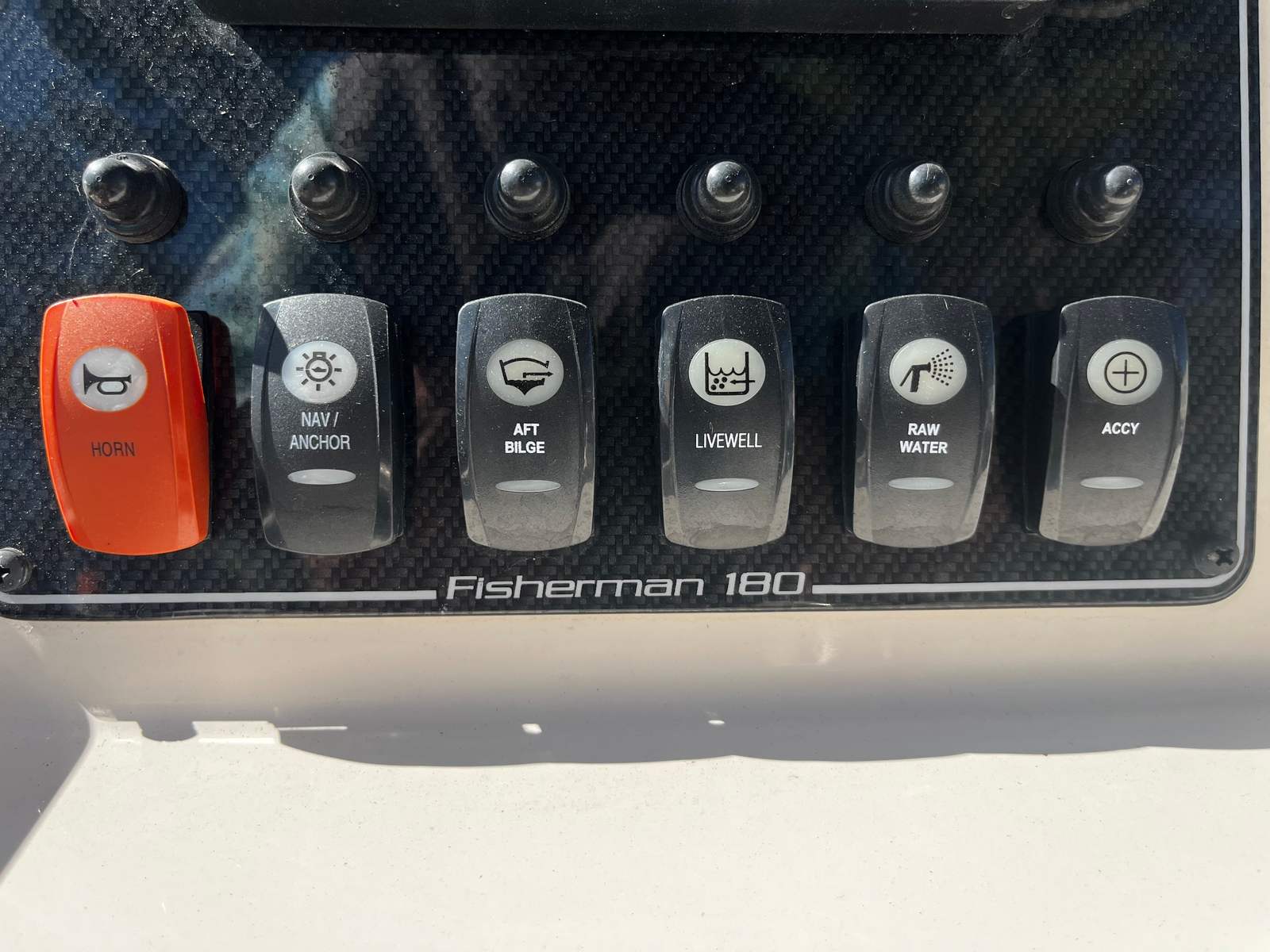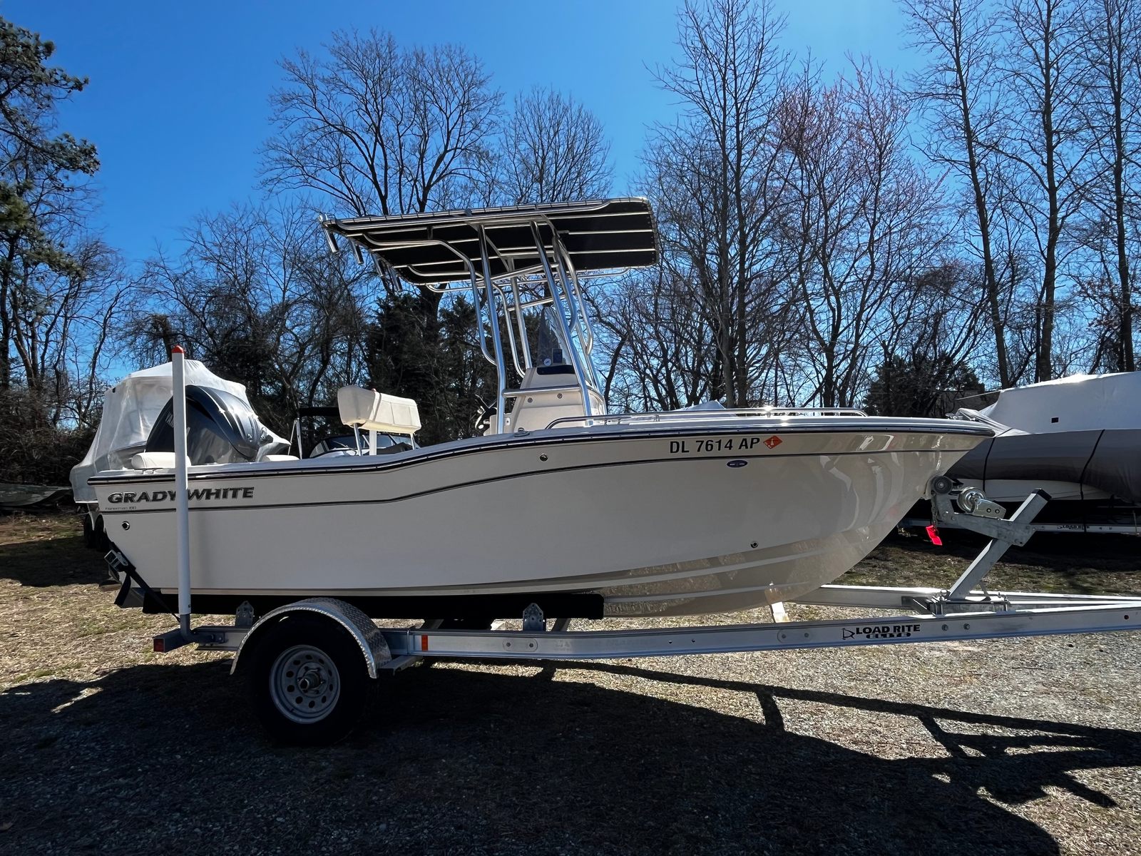- Custom Canvas T-Top w/ Anchor Light & Aft Rocket Launcher – Provides shade, added rod storage, and improved visibility.