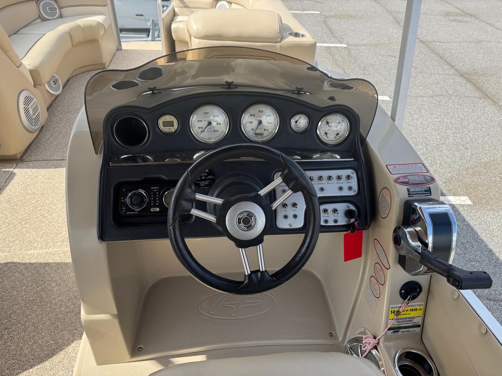 Powering the Grand Mariner SEL 230 is a robust single engine delivering an impressive 250 horsepower. This powerful setup ensures that every outing is filled with excitement, whether you’re cruising across the lake, towing water toys, or simply enjoying a smooth ride. The 250 HP engine provides responsive handling and reliable acceleration, making it easy to navigate busy waterways or find that perfect secluded spot. With this Harris boat for sale, you’ll experience the thrill of high-performance boating combined with the stability and safety that pontoon boats are known for.
