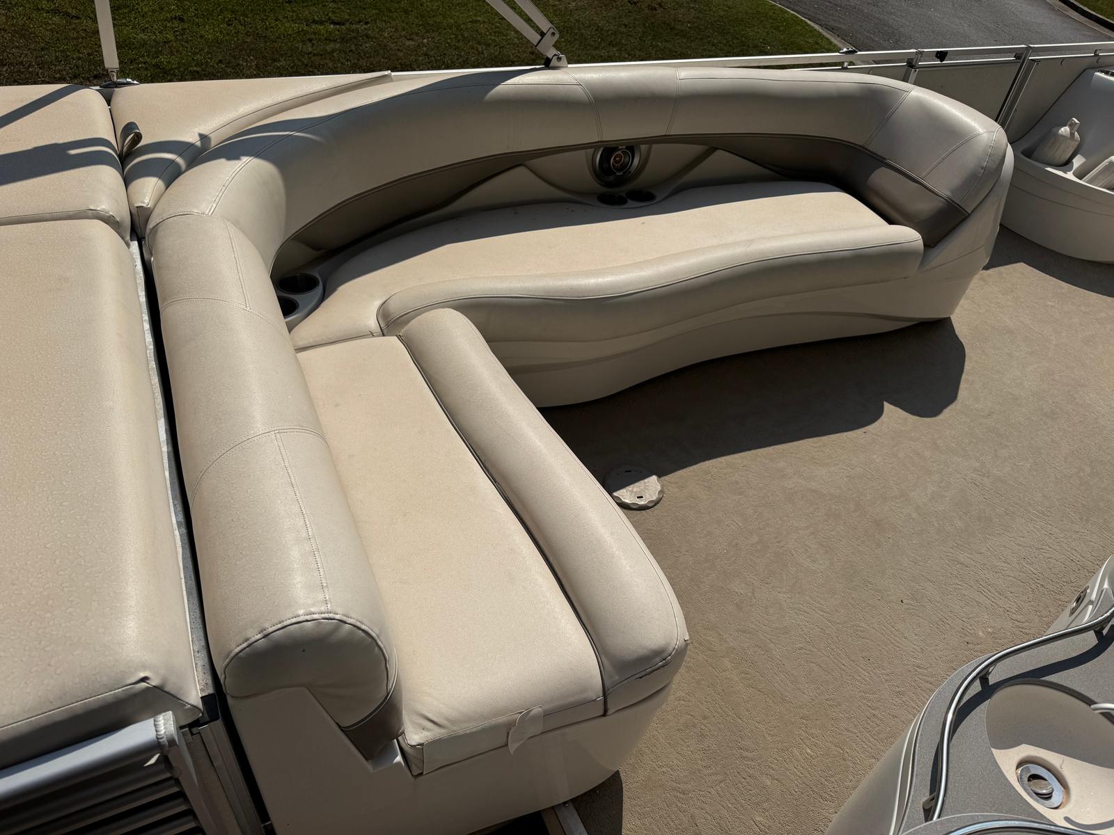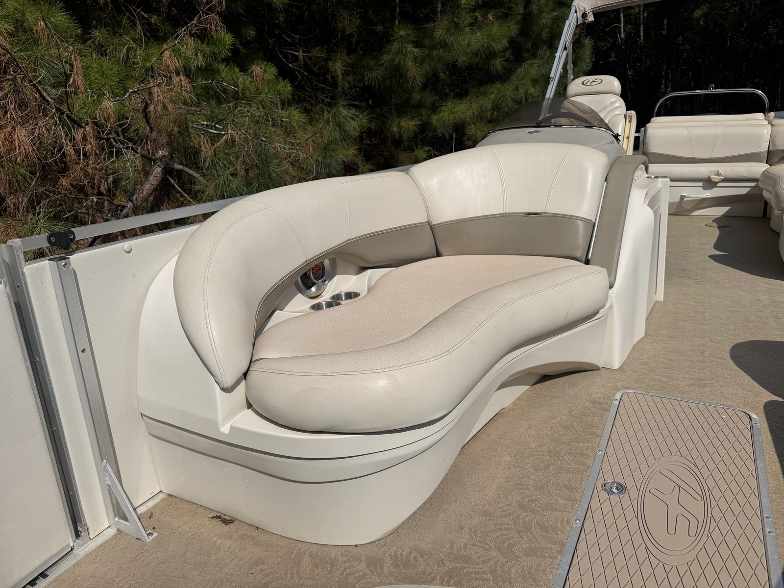 Under the hood, the Harris Royal Heritage 250 is powered by a single engine boasting an impressive 250 horsepower. With only 400 engine hours, this pontoon boat for sale has plenty of life left to deliver thrilling rides and smooth handling. The robust engine ensures reliable acceleration and steady cruising, making it easy to navigate lakes, rivers, and coastal waters. Whether you’re towing water toys or simply enjoying a brisk ride, the Royal Heritage 250’s performance capabilities stand out among used pontoon boats.