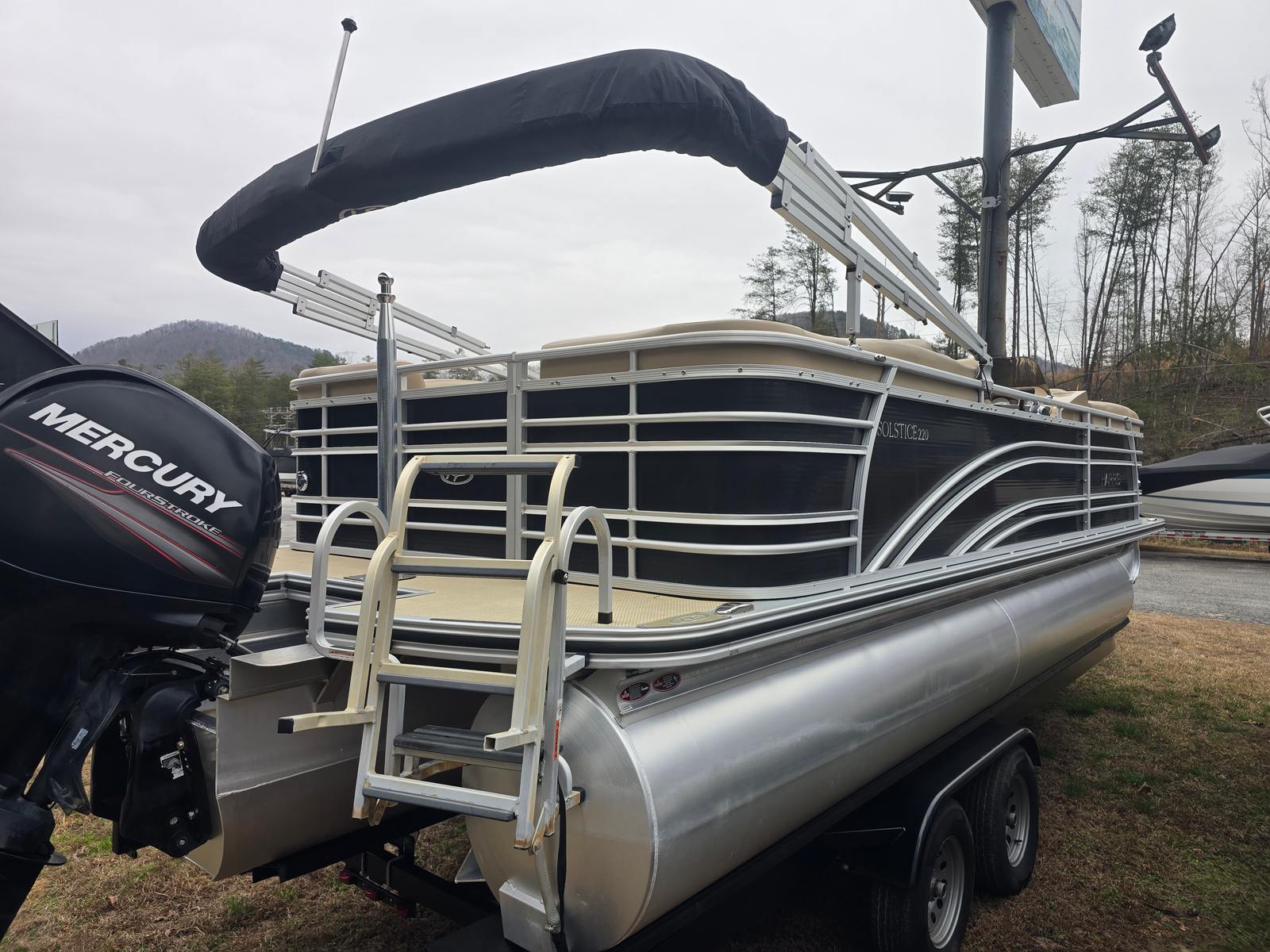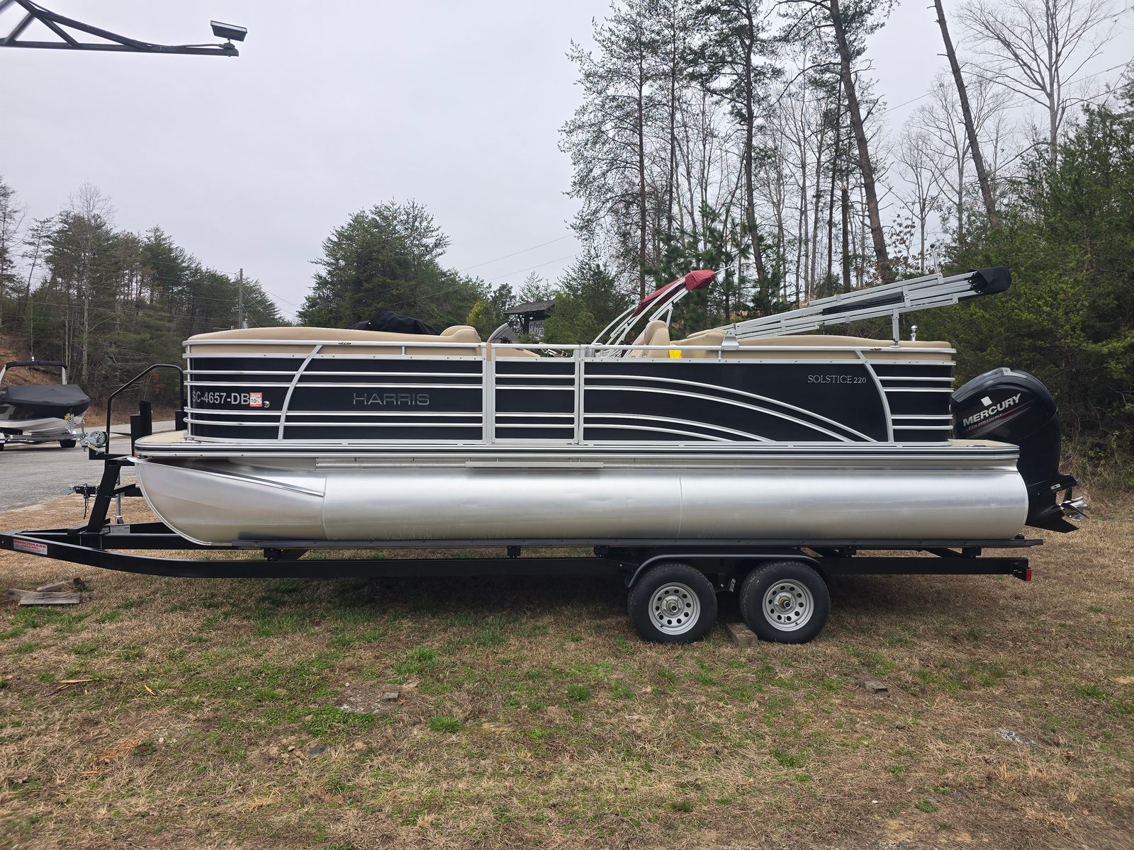 Powered by a single engine with 150 horsepower, the Harris Solstice 220 delivers a perfect balance of power and efficiency. The 150 HP engine ensures responsive handling and smooth acceleration, allowing you to cruise comfortably or pick up the pace for water sports and towing. With only 200 engine hours, this pontoon boat for sale promises reliable performance for years to come. Whether you’re navigating calm lakes or exploring winding rivers, the Solstice 220 offers a confident and enjoyable ride.