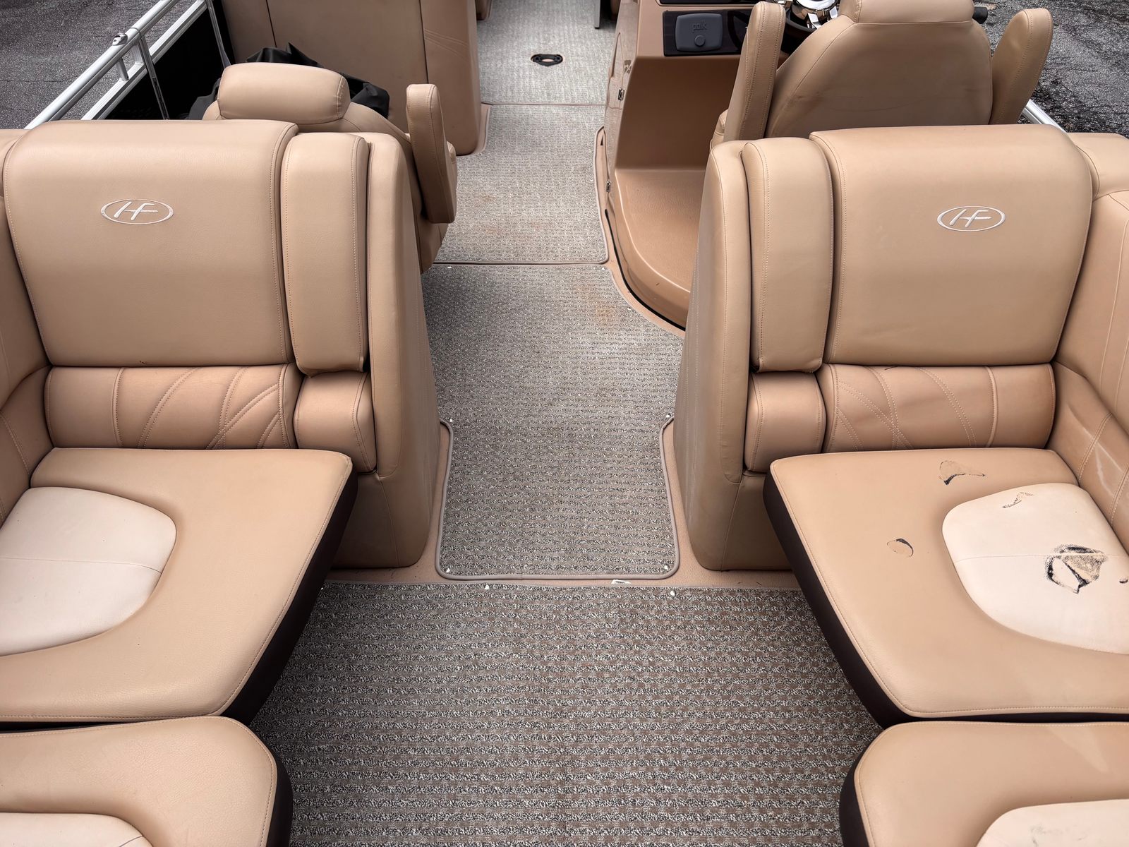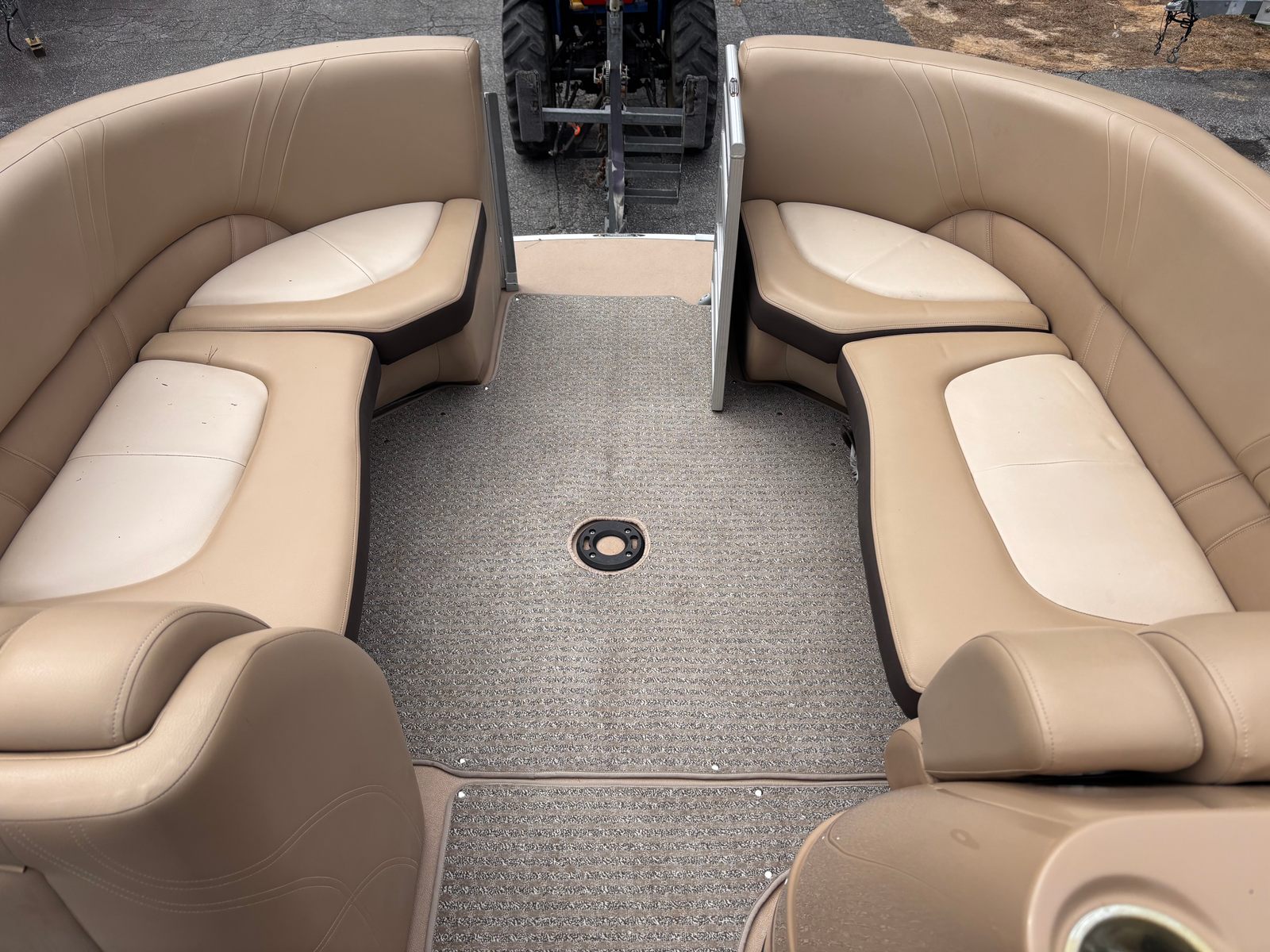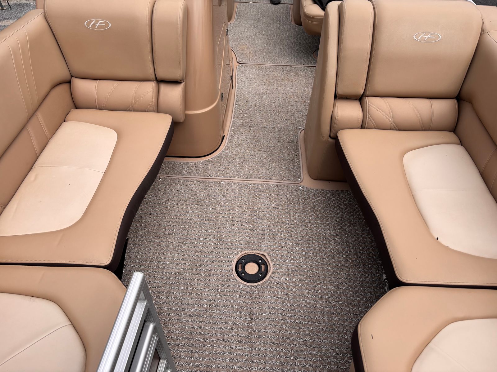 Powered by a single engine with an impressive 175 horsepower, the Harris Solstice 220 offers a smooth and responsive ride. With 551 engine hours, this pontoon boat demonstrates reliability and enduring performance, making it a smart choice for those seeking both power and efficiency. The robust engine ensures you can glide effortlessly across the water, whether you’re towing water toys, heading out for a day of fishing, or simply enjoying a leisurely cruise. The Solstice 220’s performance capabilities make it a standout among pontoon boats for sale, offering the perfect blend of speed and stability.