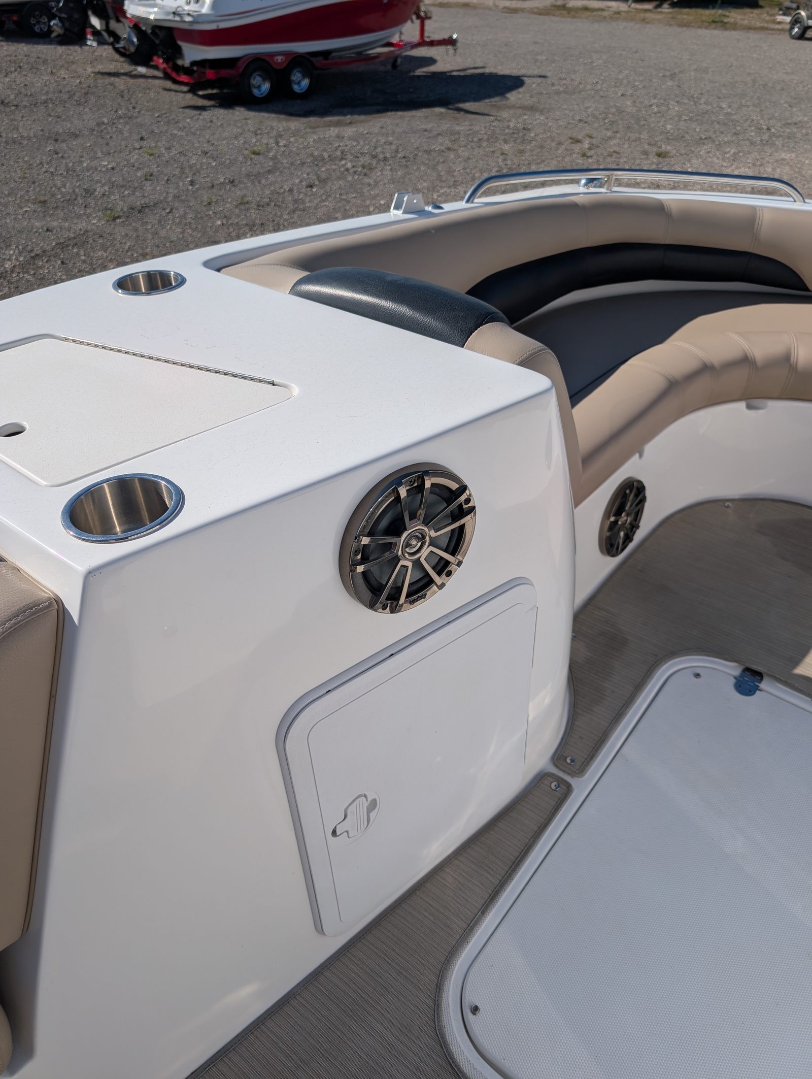 The Hurricane 188 SS is designed with practicality in mind, making ownership easy and enjoyable. Its manageable 18-foot length allows for simple storage in most garages or boat slips, and trailering is straightforward for those who want to explore different waterways. Docking is hassle-free thanks to the boat’s responsive handling and compact size, so you can spend more time enjoying your destination and less time maneuvering. The efficient single engine not only delivers strong performance but also helps keep fuel costs in check, making this bowrider a smart choice for budget-conscious boaters. The inclusion of a fish finder adds versatility, allowing you to switch seamlessly between cruising and fishing without missing a beat.