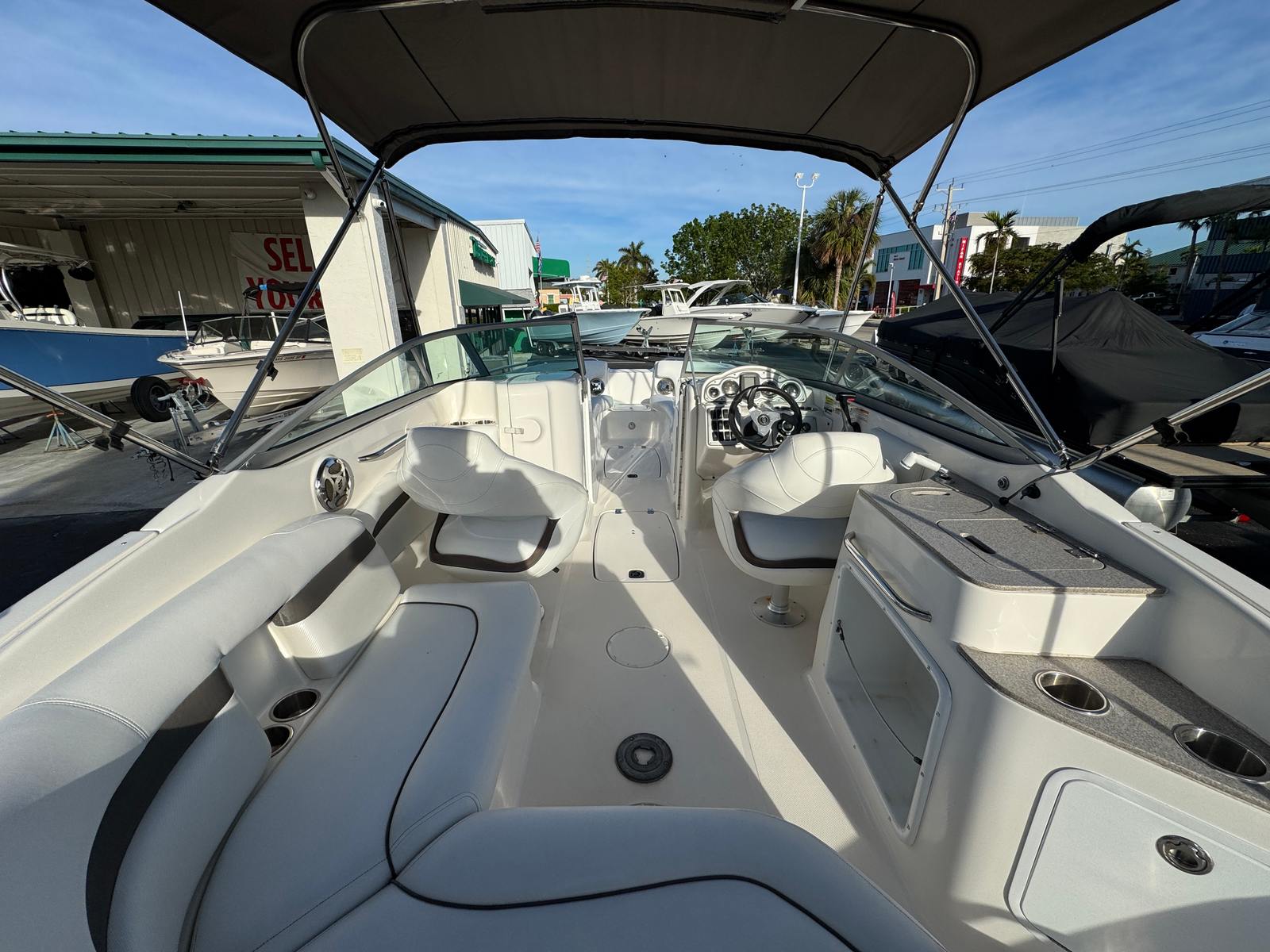 Practicality is at the heart of the Hurricane Sundeck 2400’s design. The ample storage options make it easy to bring along all your gear, from coolers and water toys to fishing equipment and picnic supplies. The boat’s manageable size and responsive handling make docking and maneuvering a breeze, even in crowded marinas or tight spaces.Fuel efficiency is another key advantage of this deckboat. The single-engine setup provides plenty of power without sacrificing economy, allowing you to enjoy longer days on the water without frequent stops at the fuel dock. Maintenance is straightforward, making this used Hurricane boat for sale an excellent choice for those who want hassle-free ownership.