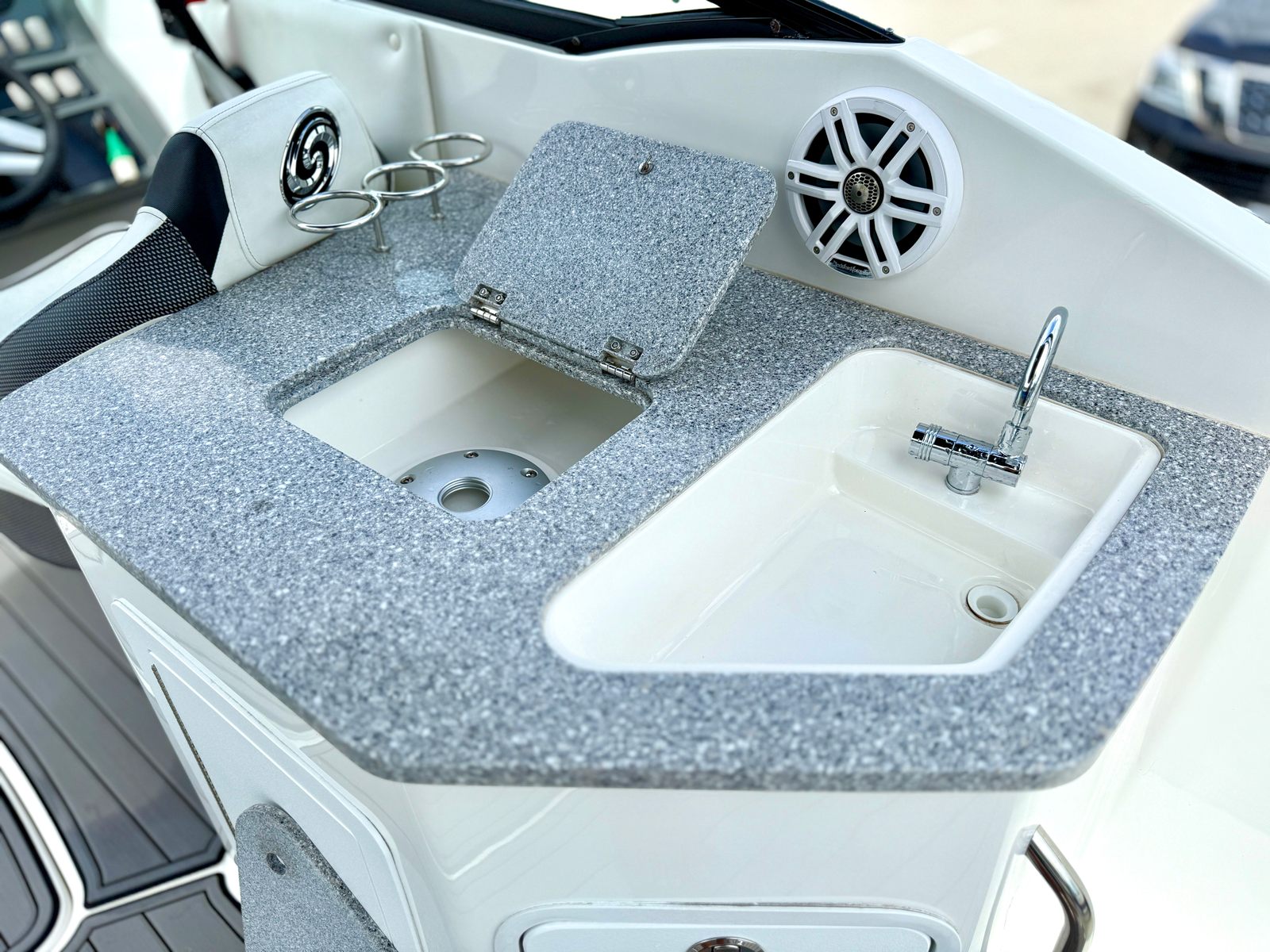 This Hurricane boat for sale truly shines in a variety of scenarios. Imagine taking your family out for a day of swimming, sunbathing, and picnicking on the open water. The spacious deck and comfortable seating make it easy to relax and enjoy each other’s company. For fishing enthusiasts, the Sundeck 2690 OB offers plenty of room to cast lines and store your catch, while the powerful engine ensures you can reach your favorite fishing spots with ease. If you’re looking for excitement, the boat’s performance capabilities make it perfect for towing water toys or exploring new waterways. Whether you’re seeking a luxurious escape or an action-packed adventure, this Dual Console boat adapts to your needs and delivers unforgettable experiences.
