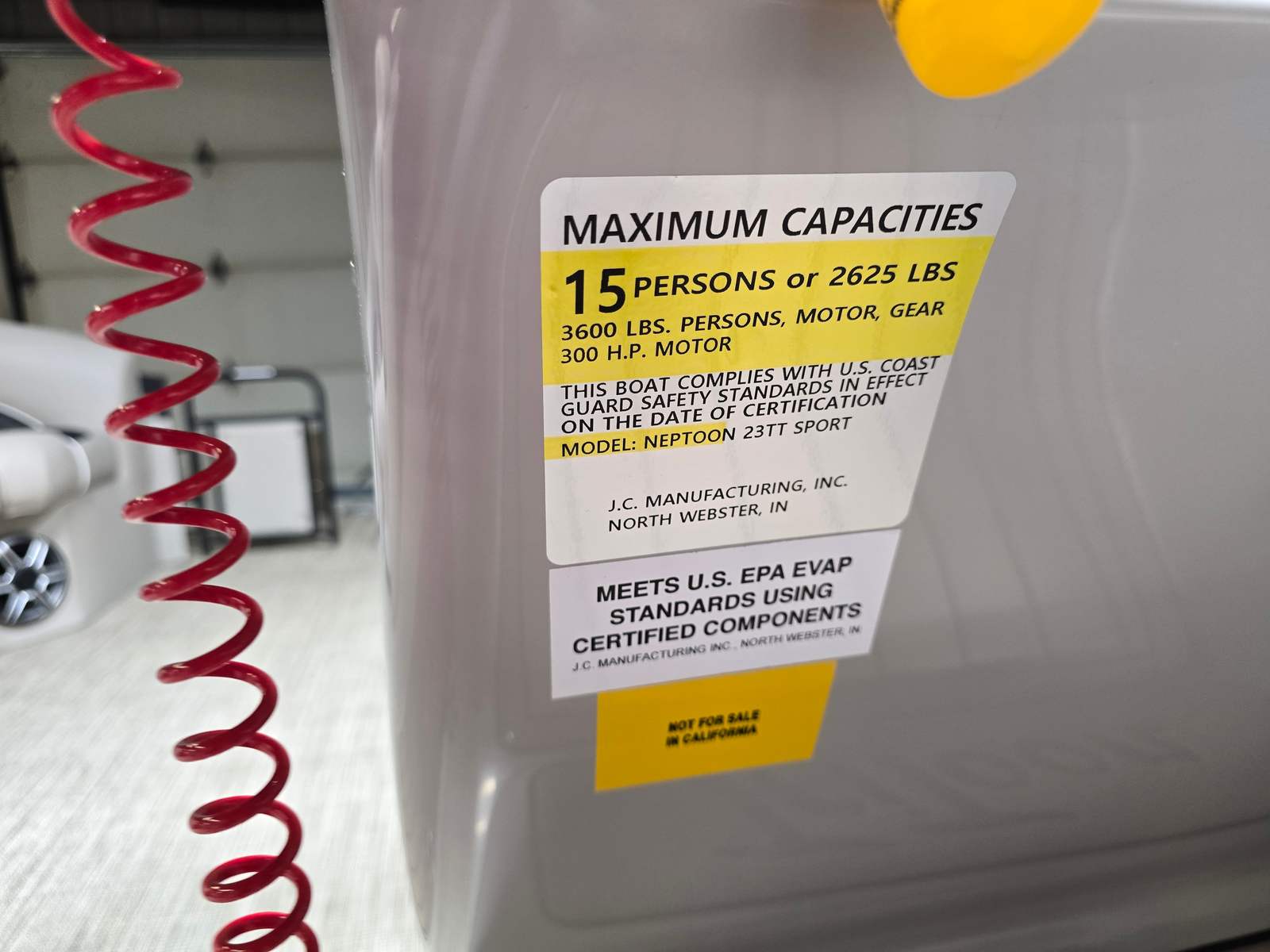 The 2026 Jc Neptoon 23TT Sport is more than just a pontoon boat for sale – it is an invitation to experience the best that boating has to offer. With its powerful 250-horsepower engine, stylish tan and carbon upholstery, dual stern lounges, and ample storage, this new Jc boat for sale is designed to deliver comfort, performance, and endless enjoyment on the water. Whether you are seeking excitement, relaxation, or a bit of both, the Neptoon 23TT Sport is ready to make every outing unforgettable. Do not miss your chance to own this exceptional pontoon. Contact your local dealer today to learn more about the Jc Neptoon 23TT Sport and start planning your next adventure on the water!