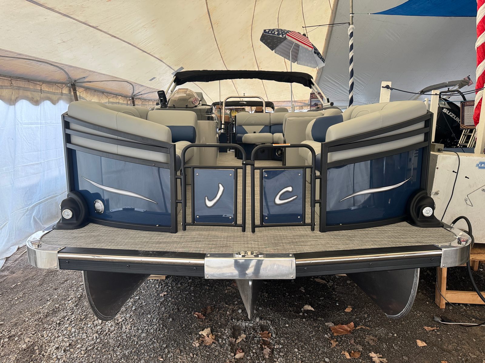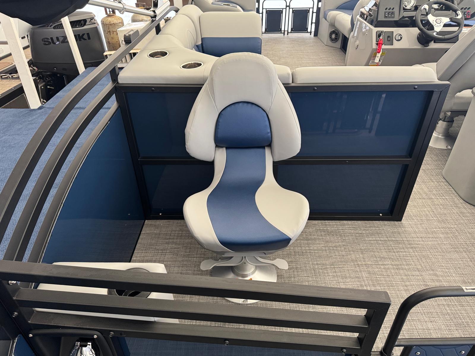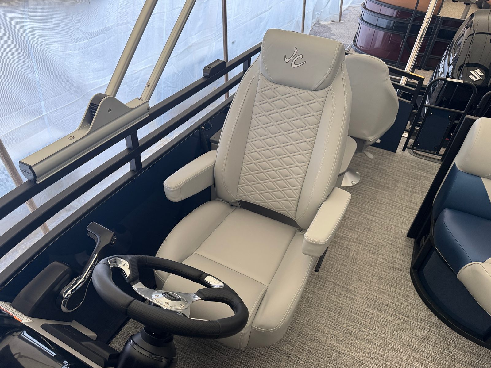 In summary, the 2026 Jc Spirit 220TT Fish Sport pontoon boat is a remarkable blend of style, performance, and versatility. With its powerful Suzuki DF150ATL5 engine, modern gray interior, accent navy blue exterior, black rails, gray weave flooring, deluxe curved armrests, ample storage, and advanced Garmin Chart Plotter, this new Jc boat for sale offers everything you need for memorable days on the water. Whether you’re looking for comfort, convenience, or adventure, the Spirit 220TT Fish Sport delivers on all fronts. Don’t miss the opportunity to experience the ultimate in pontoon boating – contact your local dealer today to learn more about this exceptional model and start your journey toward endless fun and relaxation on the water.