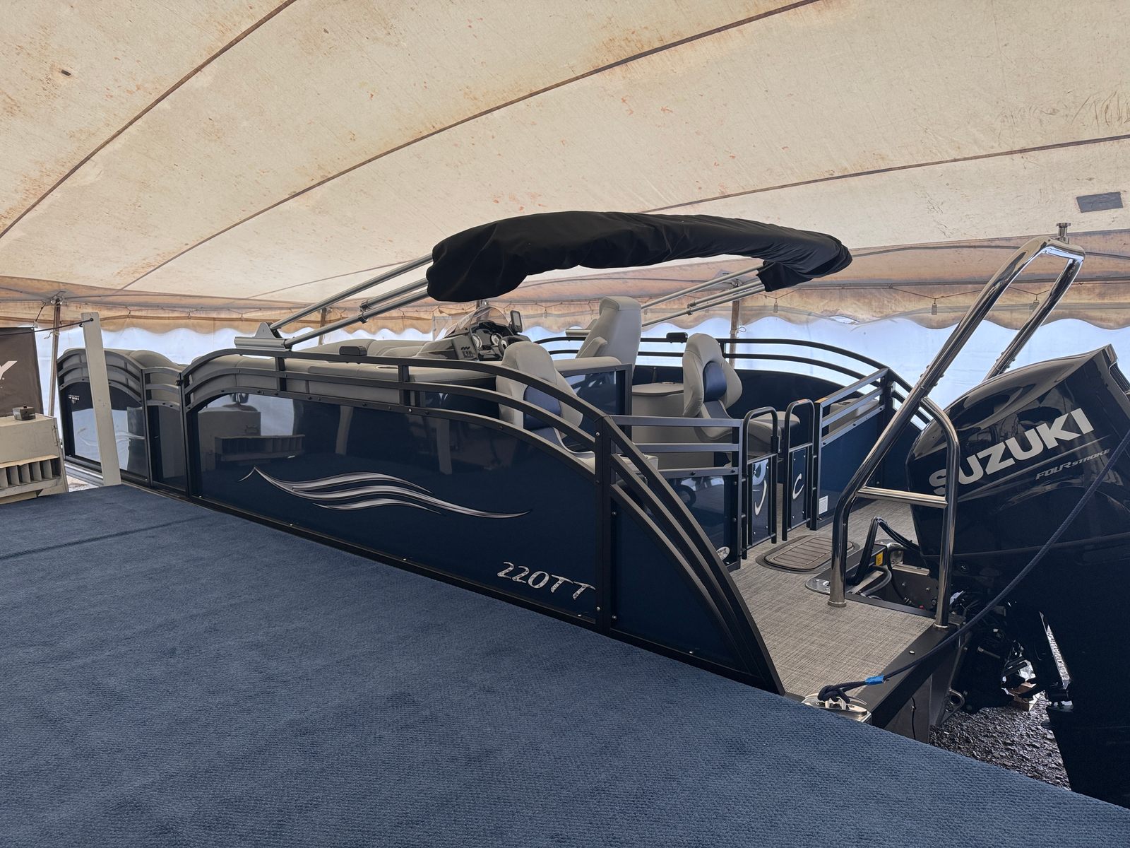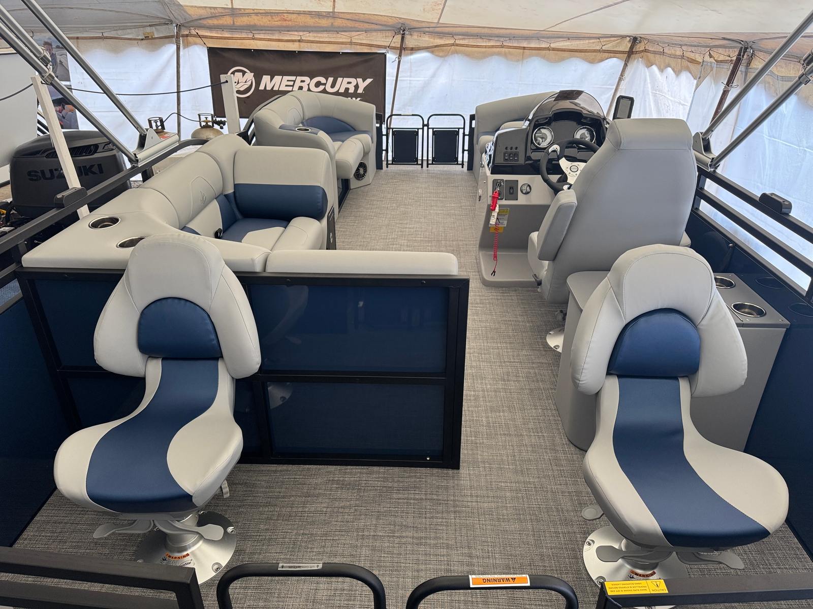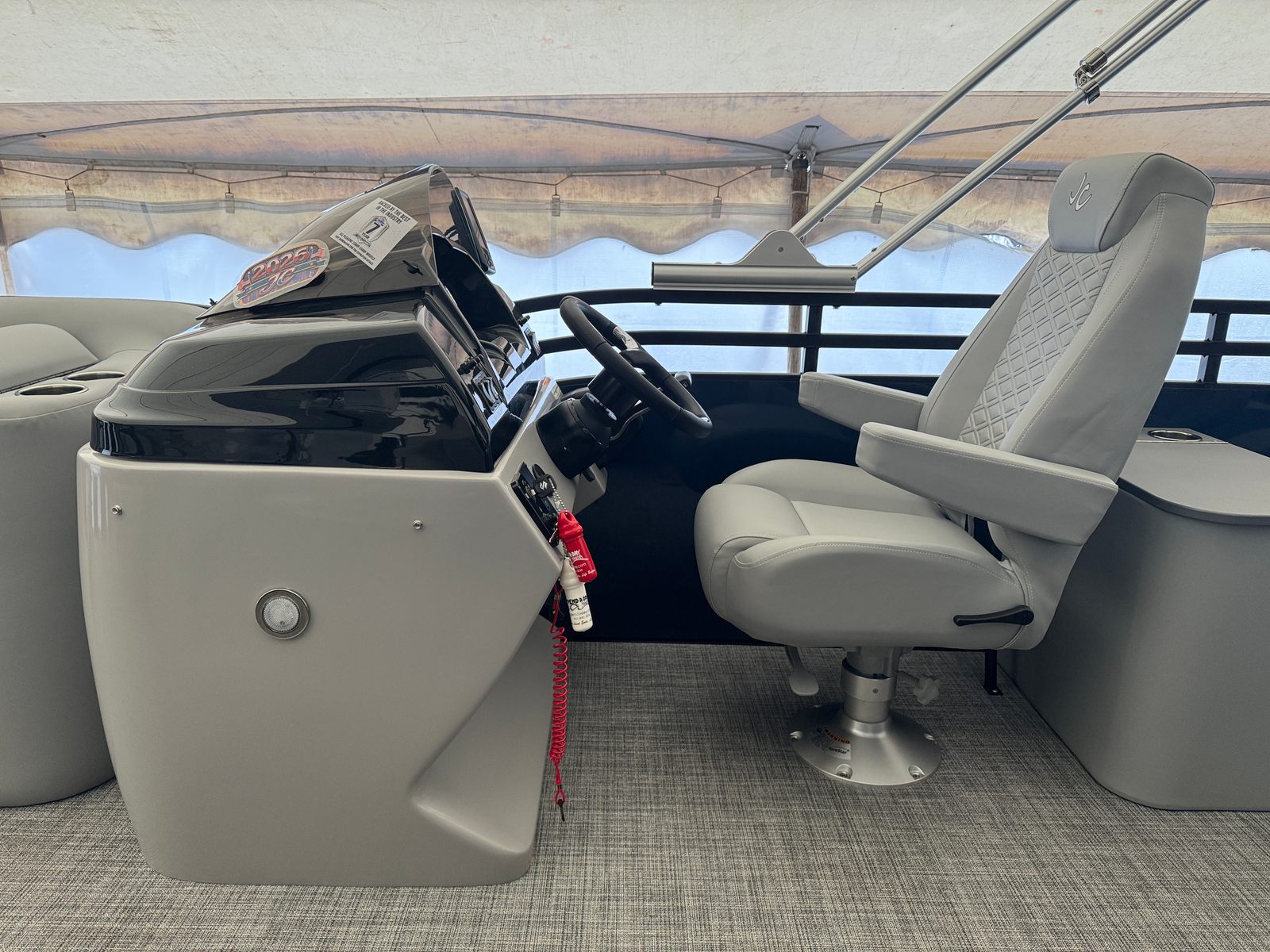 In summary, the 2026 Jc Spirit 220TT Fish Sport pontoon boat is a remarkable blend of style, performance, and versatility. With its powerful Suzuki DF150ATL5 engine, modern gray interior, accent navy blue exterior, black rails, gray weave flooring, deluxe curved armrests, ample storage, and advanced Garmin Chart Plotter, this new Jc boat for sale offers everything you need for memorable days on the water. Whether you’re looking for comfort, convenience, or adventure, the Spirit 220TT Fish Sport delivers on all fronts. Don’t miss the opportunity to experience the ultimate in pontoon boating – contact your local dealer today to learn more about this exceptional model and start your journey toward endless fun and relaxation on the water.