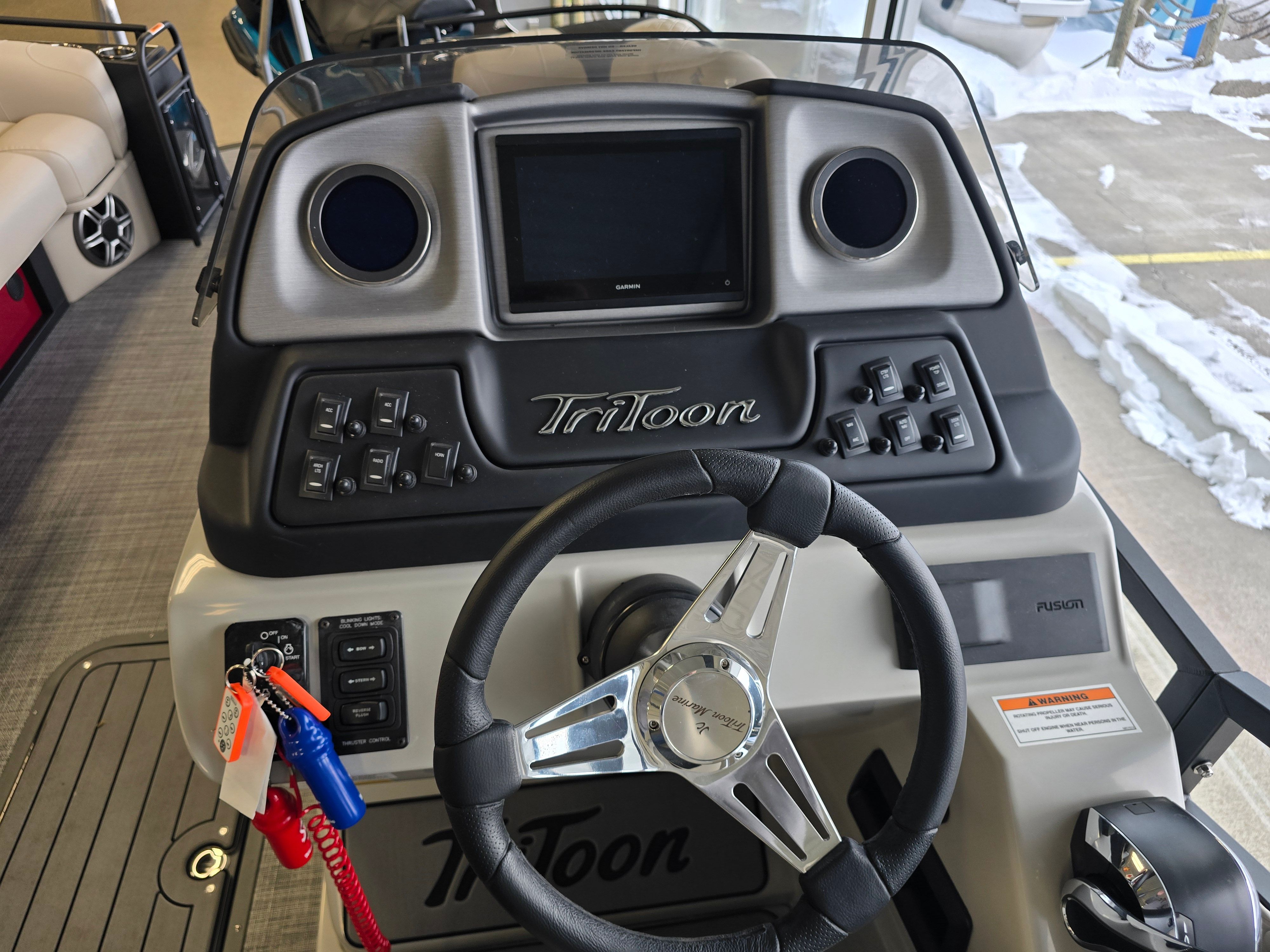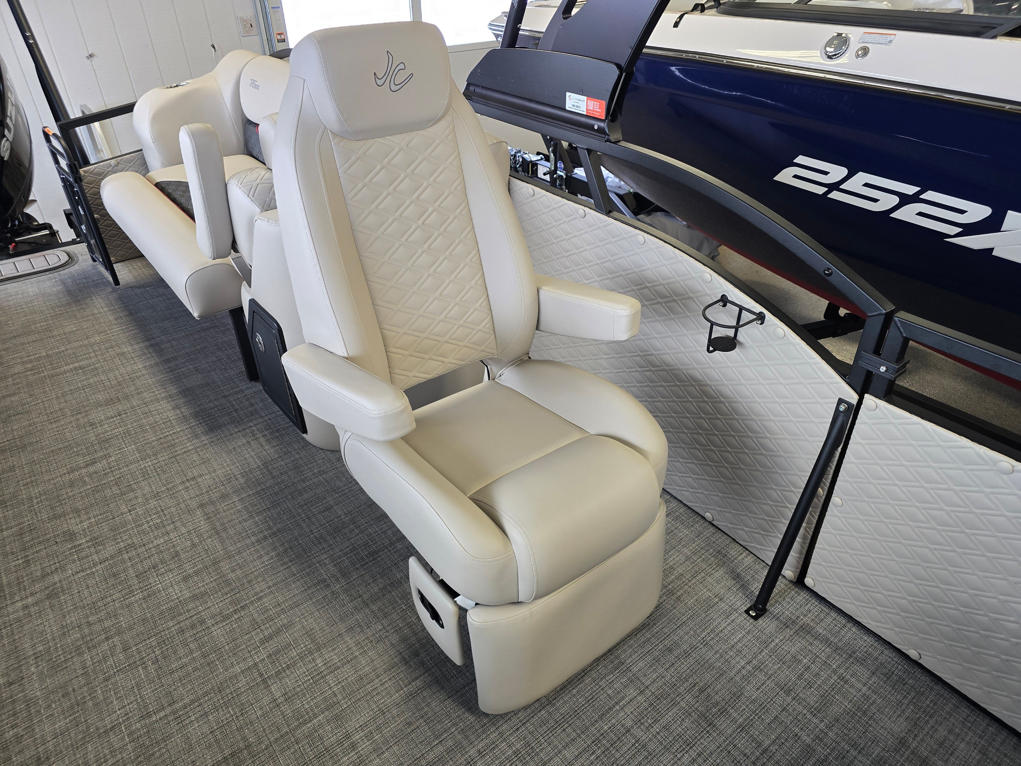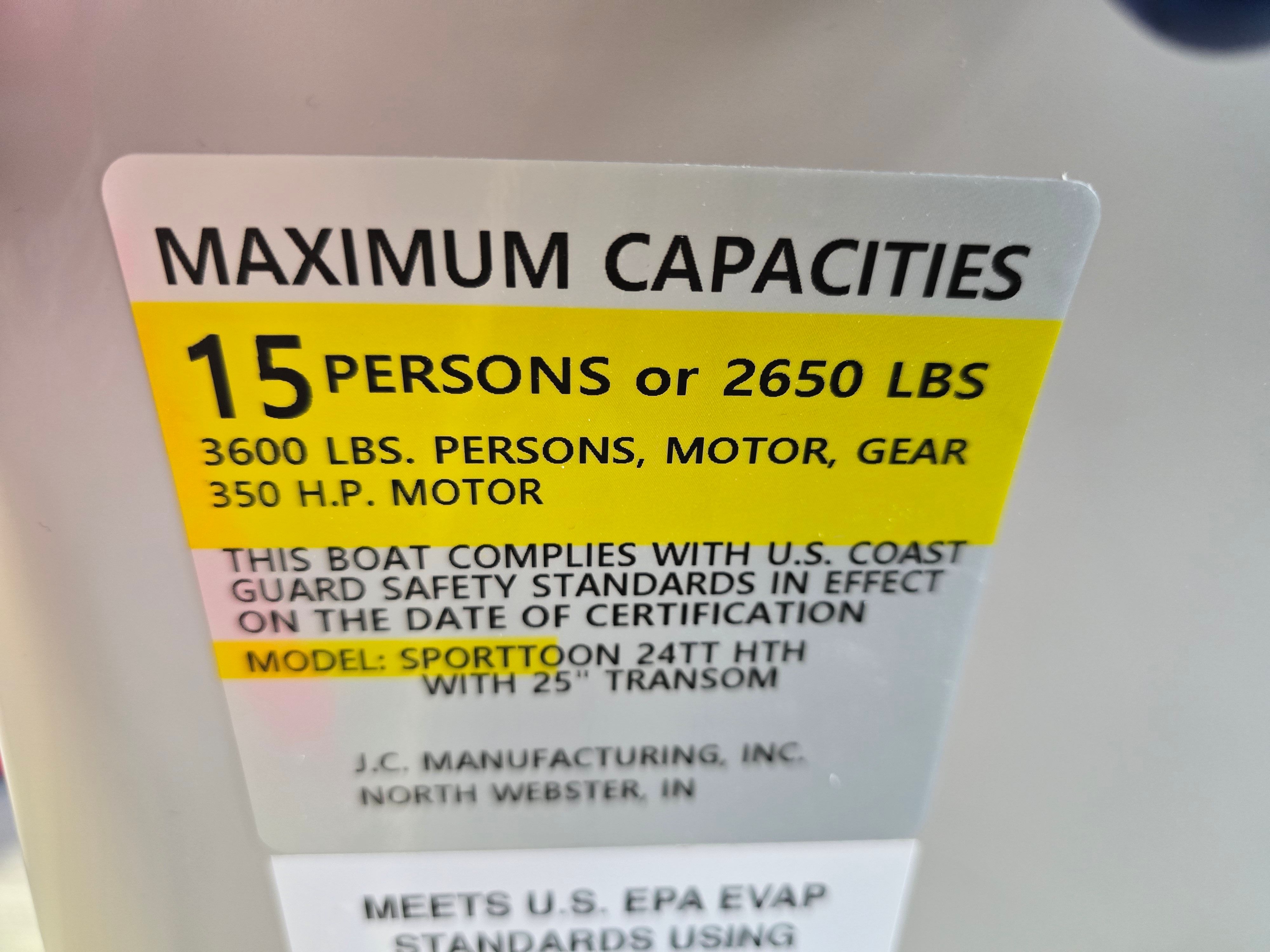 Powering the Jc Sporttoon 24TT is a robust 350-horsepower engine, providing the muscle you need for exhilarating rides and smooth cruising. The prerig Suzuki setup ensures seamless integration and reliable performance, making every outing enjoyable and worry-free. With this level of horsepower, you’ll experience quick acceleration, effortless maneuverability, and the ability to handle a variety of water conditions with confidence. Whether you’re towing water toys, exploring new coves, or simply enjoying a leisurely cruise, the Sporttoon 24TT delivers the performance you expect from a premium pontoon boat.