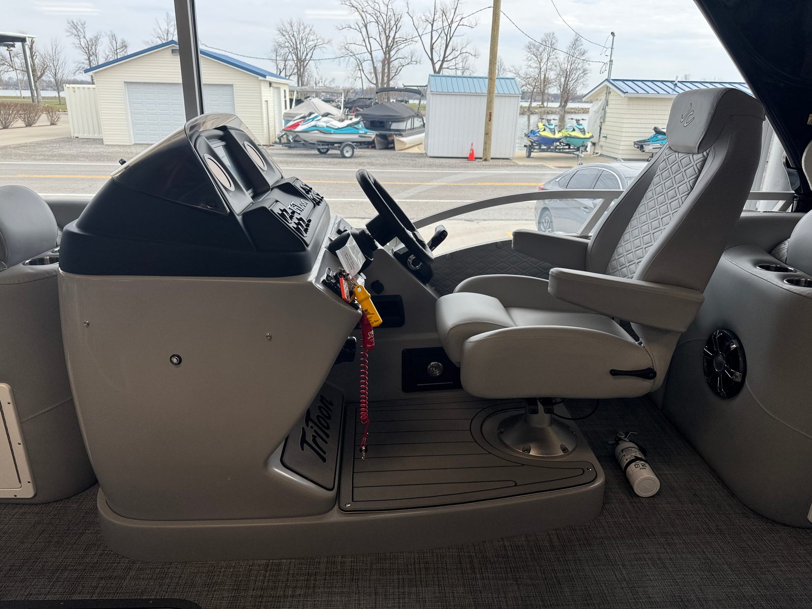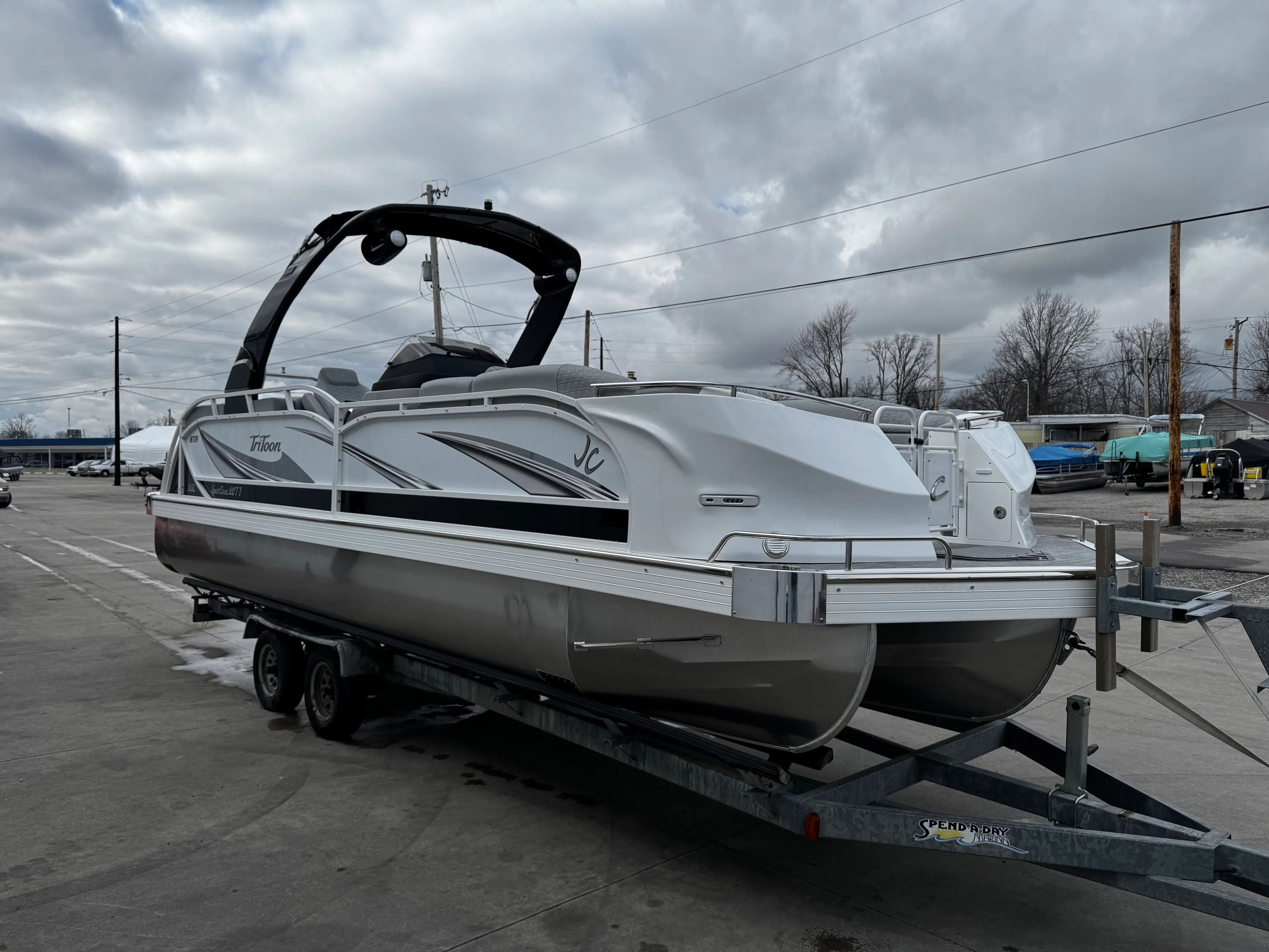 Owning the Jc Sporttoon 26TT means embracing a lifestyle of leisure, excitement, and connection. This pontoon boat is designed for maximum enjoyment, whether you’re hosting a lively gathering or seeking a peaceful escape. The spacious deck allows for easy movement and comfortable seating, making it ideal for socializing with friends and family. The dual stern lounges provide the perfect spot to soak up the sun, read a book, or enjoy a cool drink while taking in the views.The thoughtfully chosen color palette and high-quality materials create a welcoming ambiance that enhances every outing. The gray JC Grass flooring is soft yet resilient, ensuring that your boat stays looking great season after season. The black bimini offers essential shade, allowing you to stay cool and protected during hot summer days. Every detail of the Sporttoon 26TT is designed to make your time on the water more enjoyable, from the stylish graphics to the comfortable seating arrangements.
