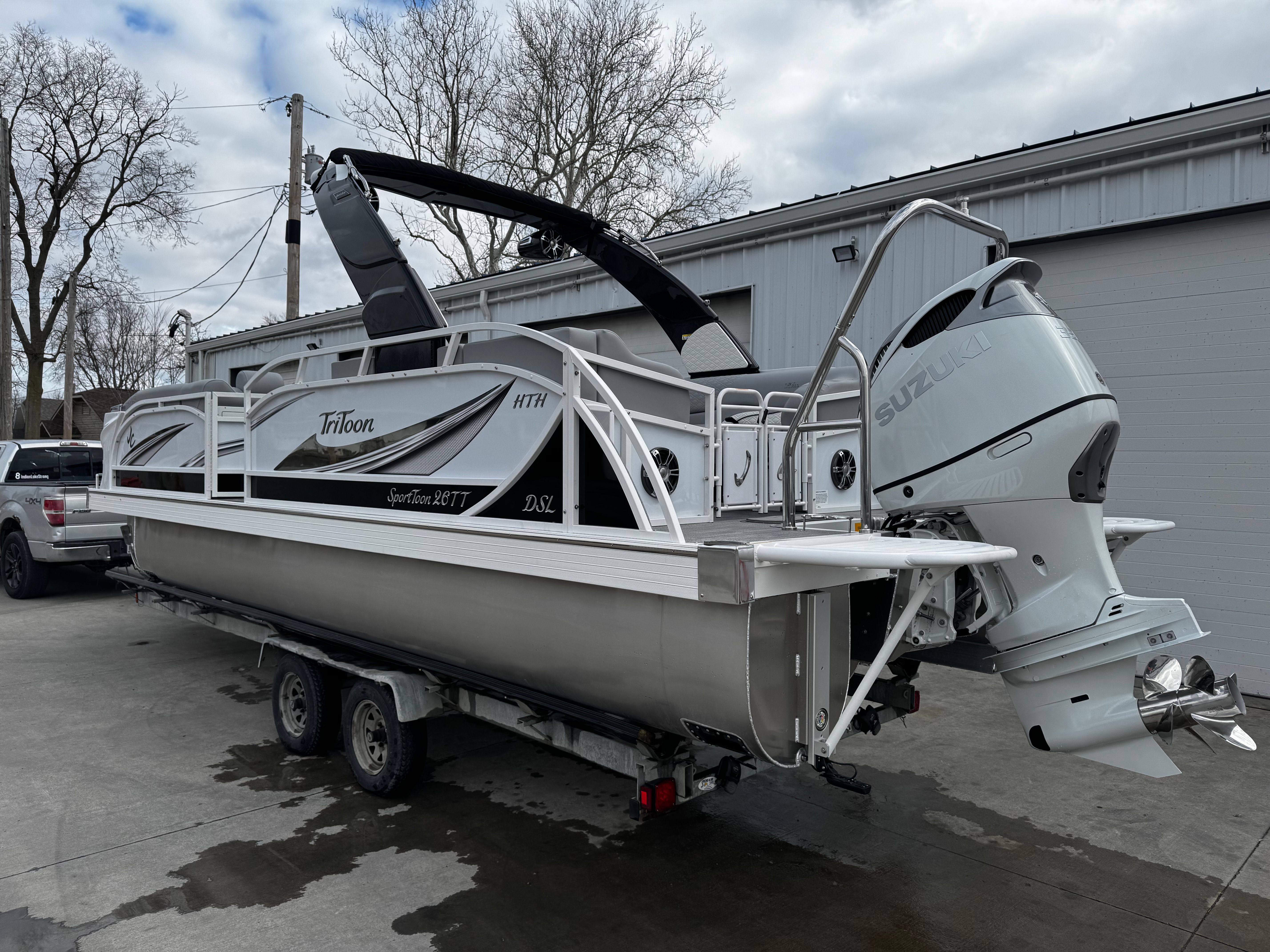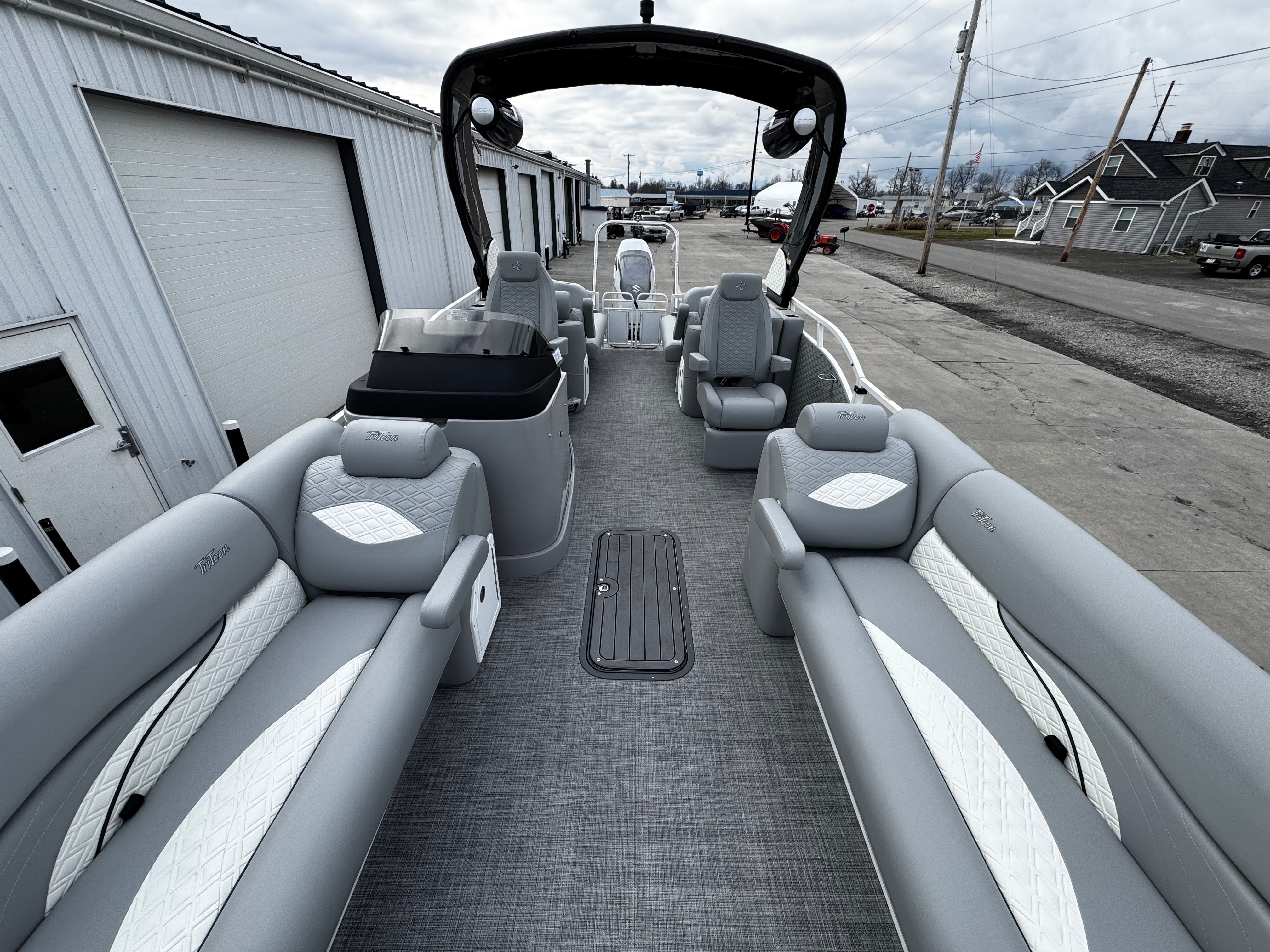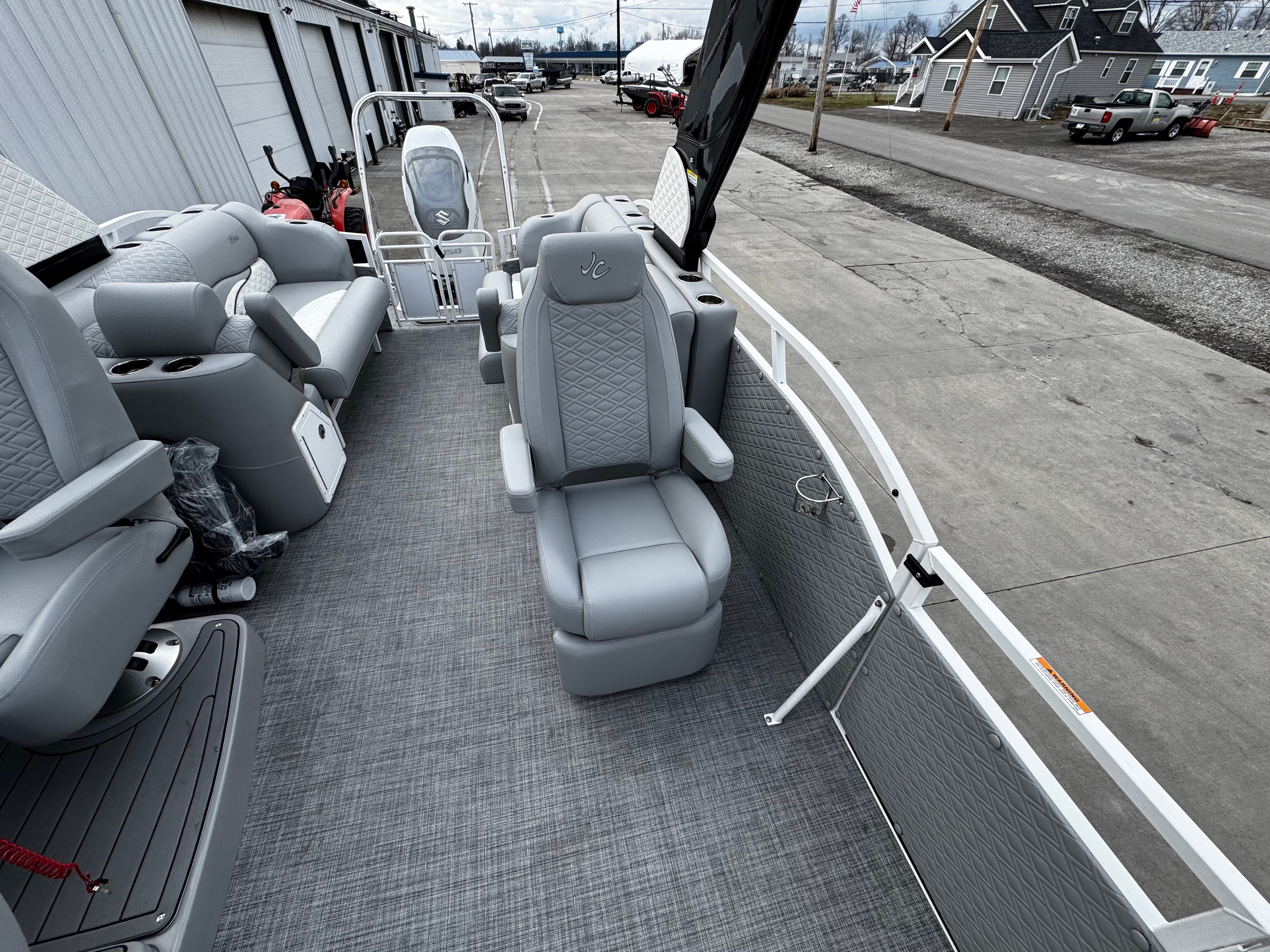 The 2026 Jc Sporttoon 26TT is a standout pontoon boat for sale, offering a winning combination of performance, style, and comfort. With its powerful 350 horsepower engine, prerig Suzuki setup, elegant gray and white upholstery, black bimini, JC Grass flooring, and dual stern lounges, this new pontoon boat is designed to deliver unforgettable experiences on the water. If you’re searching for a Jc boat for sale that meets the highest standards of quality and enjoyment, the Sporttoon 26TT is the ultimate choice. Discover the possibilities and make your boating dreams a reality – contact your local dealer today to learn more about this exceptional pontoon boat.