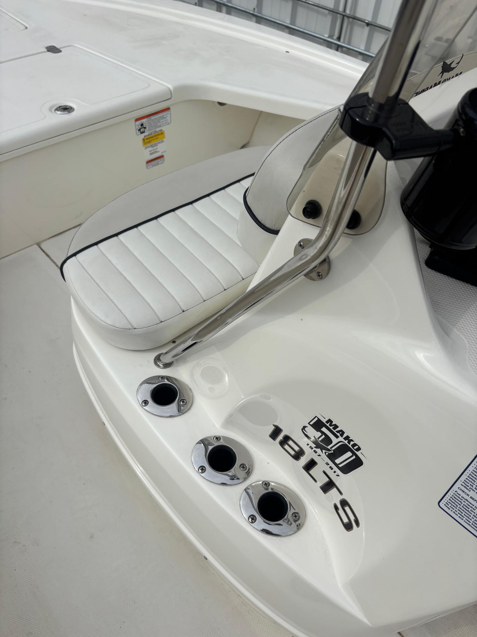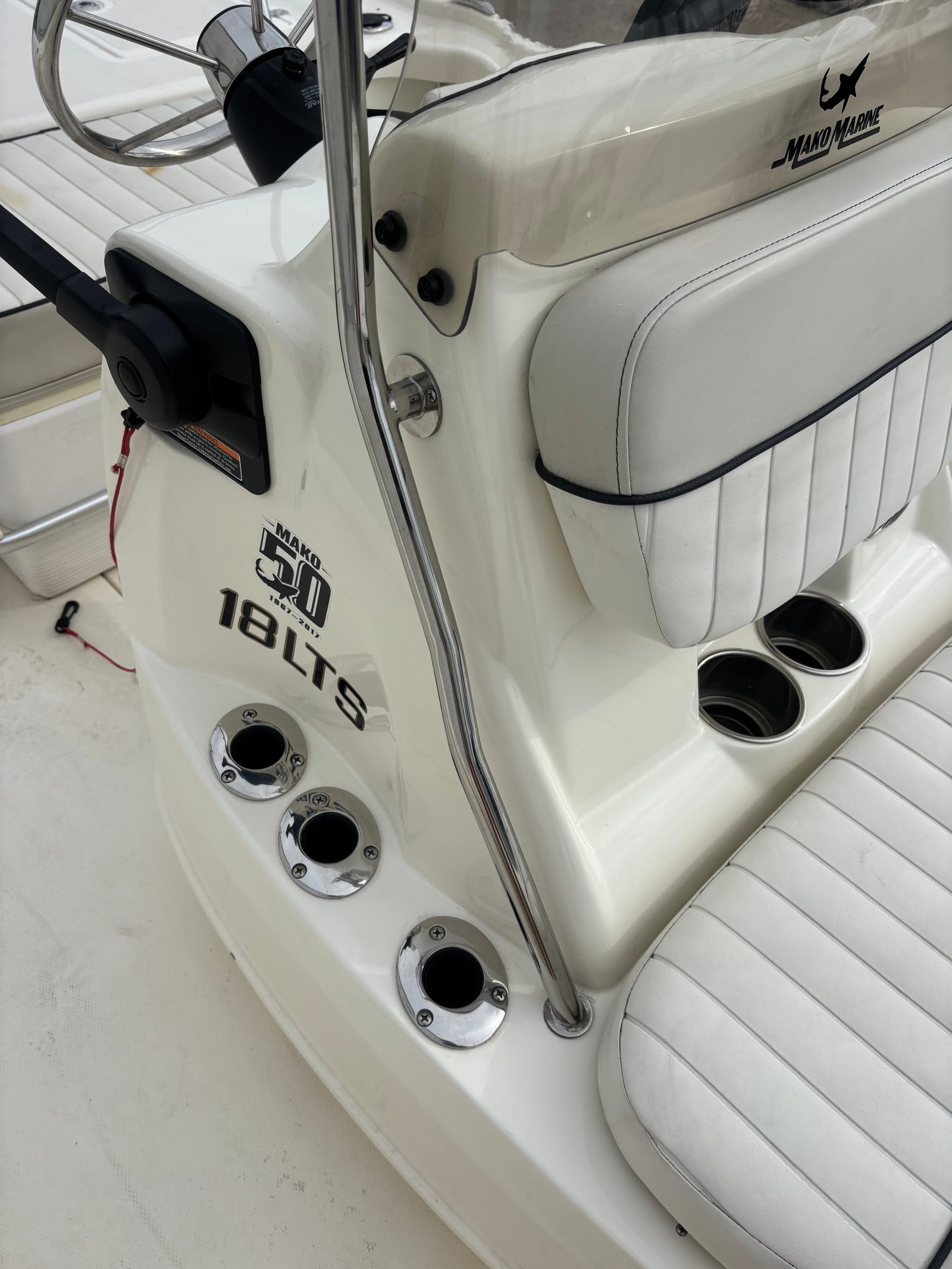 The 2017 Mako 18 LTS is thoughtfully designed to maximize both utility and comfort. Its Center Console layout provides unobstructed 360-degree access, making it a favorite among anglers who need freedom of movement while casting or reeling in the catch of the day. The spacious deck allows for multiple passengers to move about comfortably, while the sturdy hull ensures a stable ride even in choppier conditions.This Mako boat for sale is built with high-quality materials and attention to detail, ensuring long-lasting performance and reliability. The Center Console design also offers ample storage space for gear, tackle, and personal items, keeping the deck clutter-free and organized. The ergonomic helm station is designed for ease of use, with intuitive controls and clear instrumentation that make piloting the boat a pleasure.