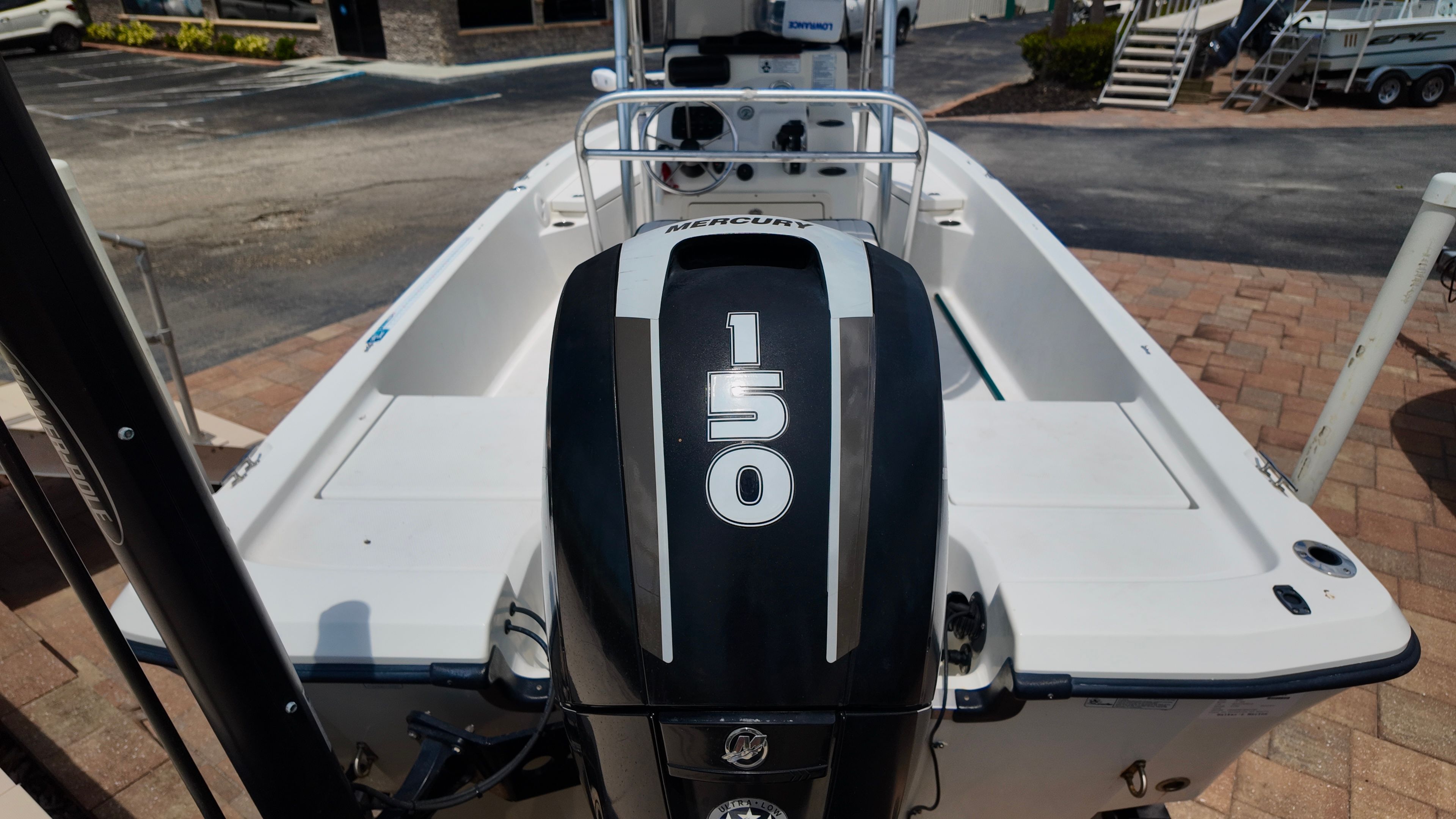 Powering this Mako 19 CPX is a single engine with 150 horsepower, boasting 330 engine hours. This setup ensures a thrilling ride, whether you are cruising along the coastline, heading out to your favorite fishing spot, or simply enjoying a day on the water with friends and family. The 150-horsepower engine delivers impressive acceleration and top-end speed, making it easy to reach your destination quickly and efficiently. With its responsive handling and smooth ride, the Mako 19 CPX is engineered for both performance and reliability, giving you the confidence to tackle a variety of water conditions.