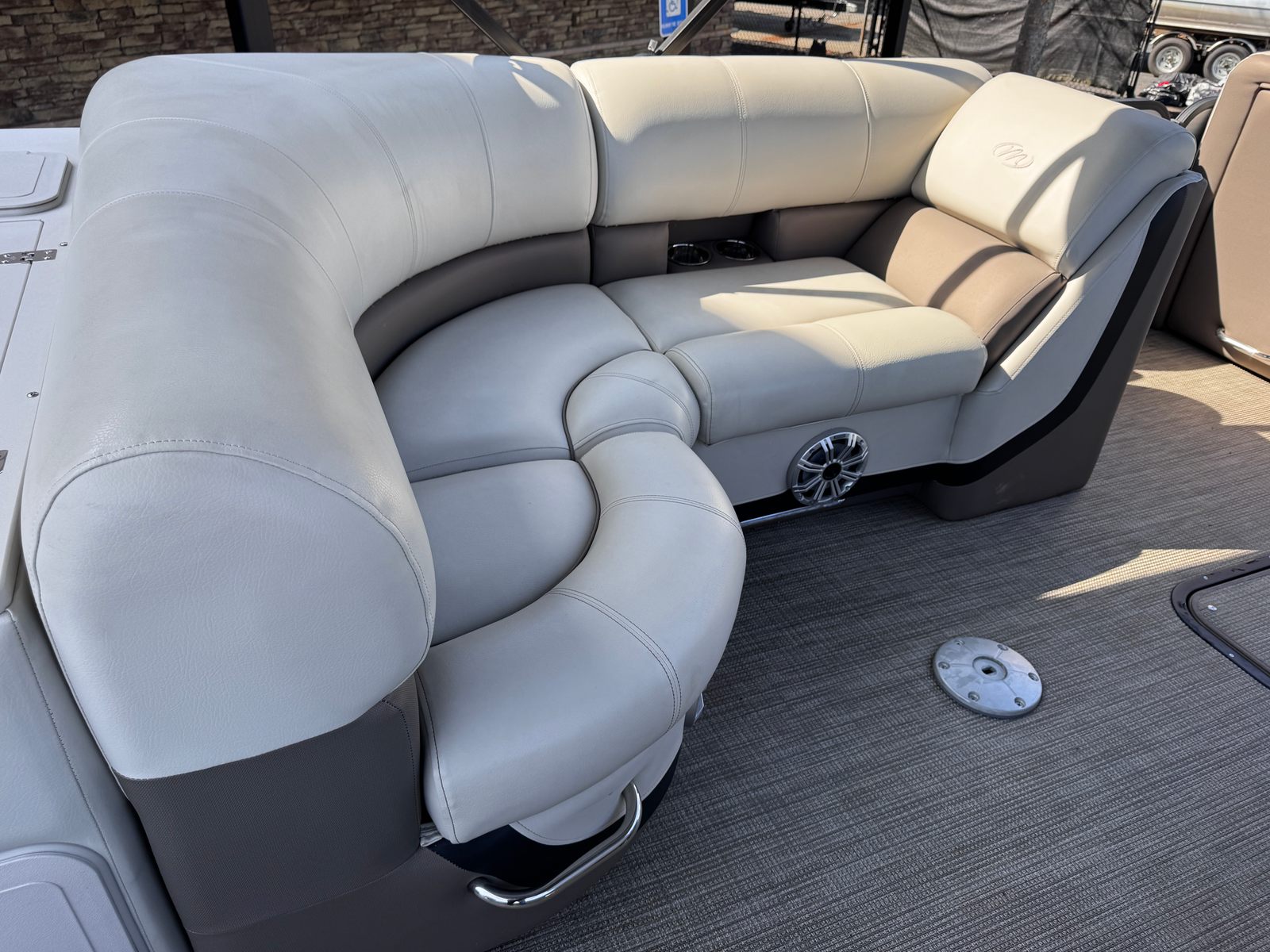 The Manitou Oasis Angler 220 SHP is packed with features that enhance your time on the water. With a length of nearly 24 feet, this pontoon provides generous seating and open deck space, making it easy to move around and socialize. The angler-focused design includes dedicated fishing stations, rod holders, and ample storage for tackle and gear, ensuring you are always ready for a day of casting lines and reeling in the big one.The plush seating and thoughtfully arranged layout create a welcoming environment for relaxing, sunbathing, or enjoying a meal with friends. The durable construction and high-quality materials used throughout the boat ensure long-lasting performance and a stylish appearance that will turn heads at the marina.