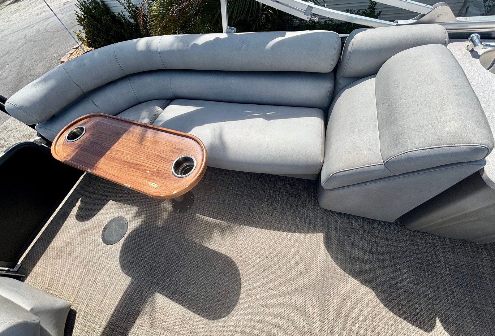 Powering the Premier 270 Intrigue is a robust single engine boasting an impressive 350 horsepower. This powerful setup ensures exhilarating acceleration, smooth cruising, and the ability to handle a variety of water conditions with ease. Whether you are towing water toys, cruising at sunset, or making your way to a favorite fishing spot, the 350 HP engine provides the performance you need for a thrilling and reliable boating experience. With only 100 engine hours, you can be confident in the longevity and dependability of this pontoon’s powertrain.