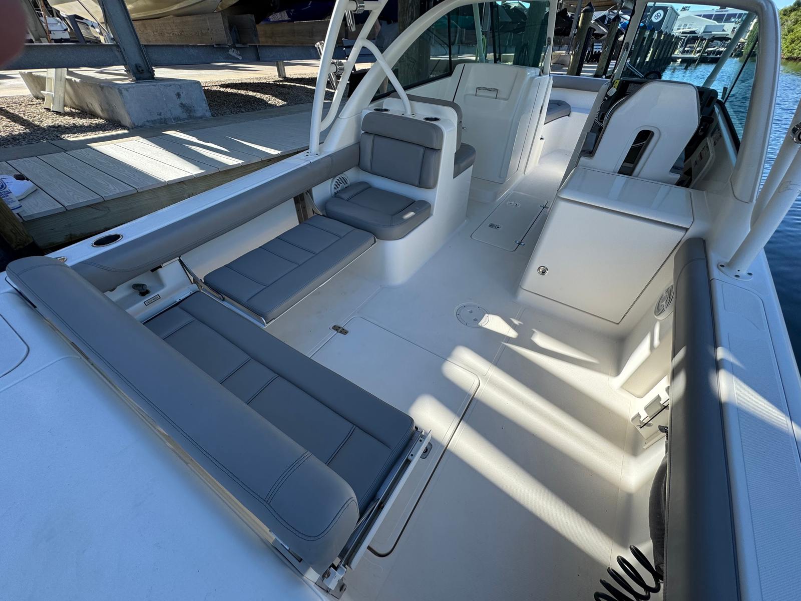 This boat features Pursuit’s deep-V hull for exceptional stability, along with a thoughtfully engineered layout that maximizes usable space!
