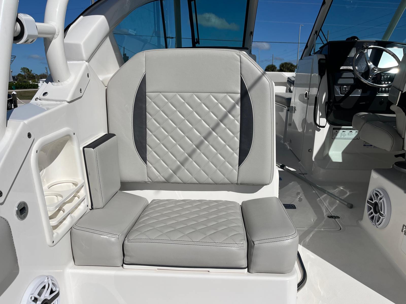 From the stainless hardware to the plush upholstery and premium electronics, every inch reflects Pursuit’s commitment to quality. Storage is abundant and intelligently placed, making day trips or long weekends easy and organized.