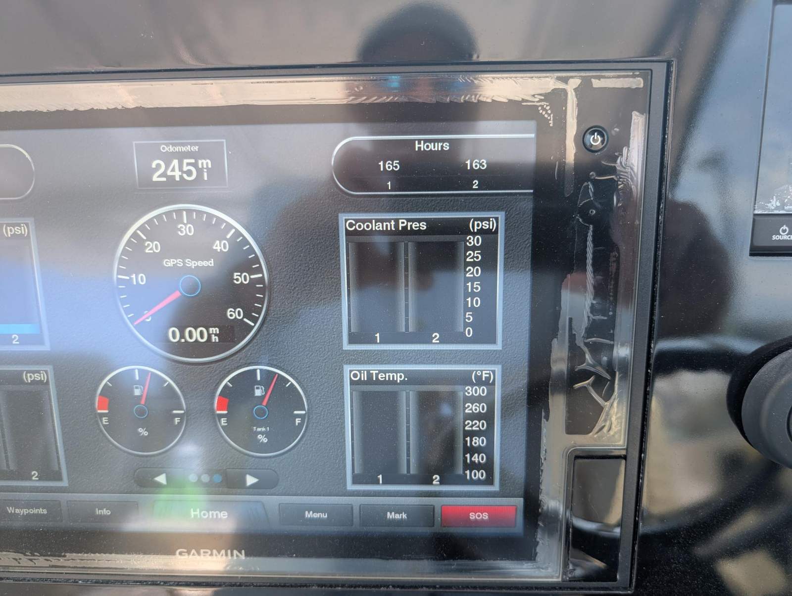 Powering the Pursuit DC 325 are two high-performance engines, delivering a combined 600 horsepower. With only 165 engine hours, these engines promise many more seasons of reliable and exhilarating boating. The twin-engine setup ensures smooth acceleration, responsive handling, and the confidence to tackle a variety of water conditions. Whether you are cruising along the coastline, heading out for a day of fishing, or enjoying watersports, the Pursuit DC 325 delivers the power and agility you need for an unforgettable experience. The efficient engine configuration also contributes to optimal fuel economy, allowing you to spend more time on the water and less time refueling.