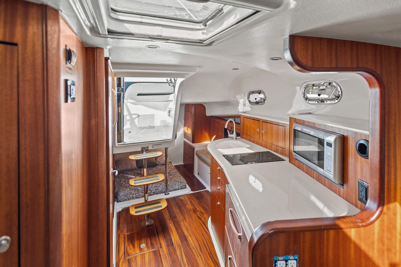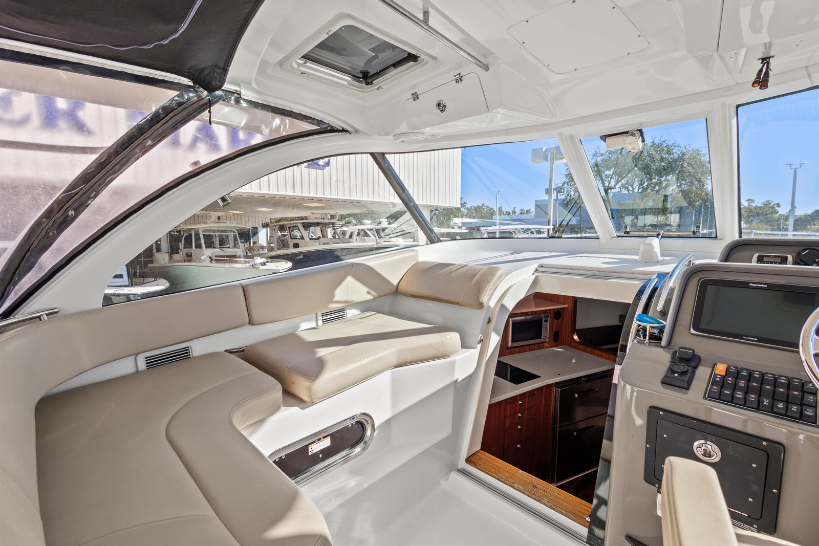 Powering the Pursuit OS 385 are three high-performance engines, delivering a combined 900 horsepower. With only 1,100 engine hours, these engines have plenty of life left, ensuring reliable and efficient operation for years to come. The triple-engine setup provides outstanding acceleration, impressive top speeds, and superior handling in a variety of sea conditions. Whether you’re heading out for a long-range fishing expedition or cruising along the coastline, this Pursuit boat for sale offers the muscle and agility needed for offshore adventures.