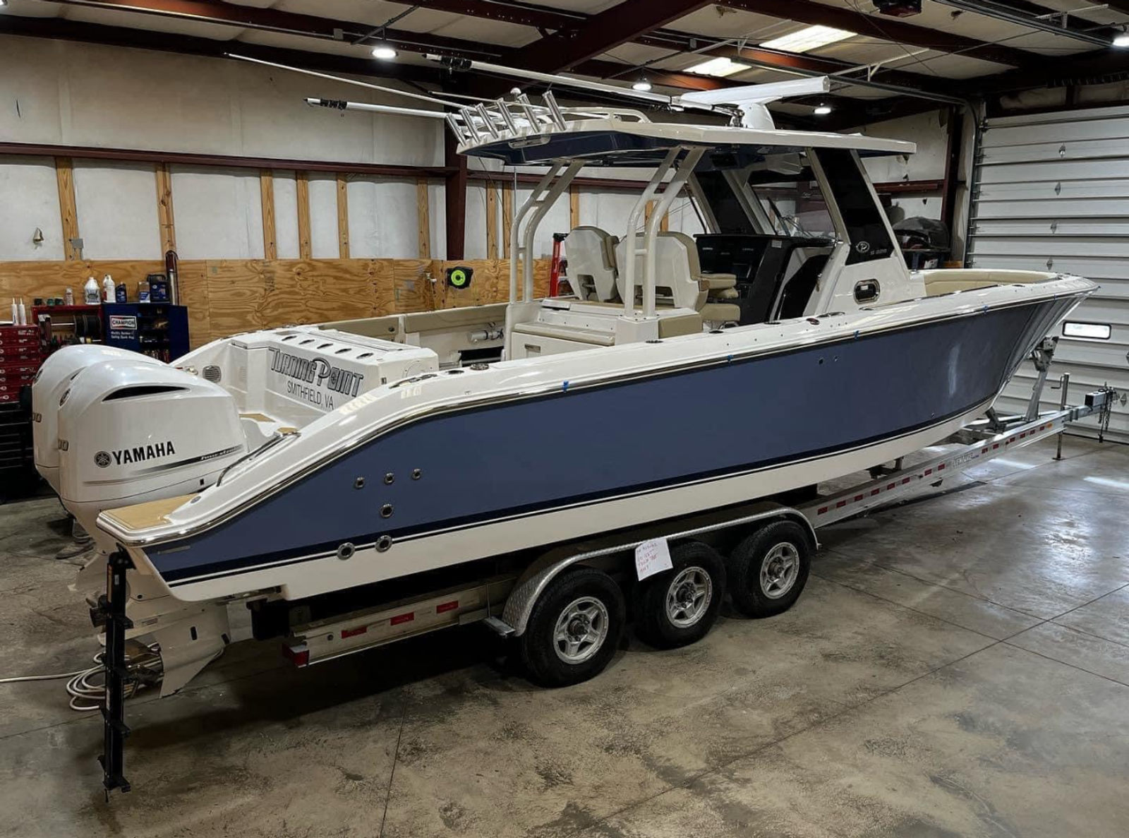 2020 Pursuit S328 Sport powered by twin 300 Yamaha engines with 386 hours. This boat has been meticulously maintained since purchased from us new by the original owner, lift kept under boathouse roof and stored in a climate controlled shop during the winters. It has been ceramic coated inside and out yearly and shows just as well as a 2026 sitting in our showroom. There is not a nicer, more well equipped, and well cared for Pursuit S328 on the used market that you will find! Trailer not included, but available for purchase.