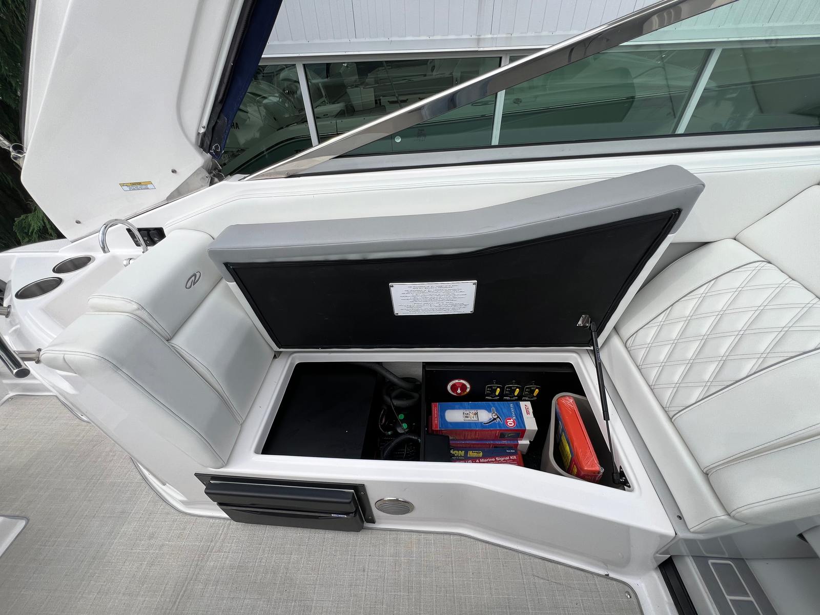 This Regal cruiser boat for sale is as practical as it is stylish. The nearly 29-foot length provides generous storage options for all your gear, making it easy to pack for a day trip or a weekend getaway. The efficient engine and modern electronics contribute to fuel savings and ease of navigation, so you can focus on enjoying your time on the water. Docking is straightforward, thanks to the boat’s responsive handling and well-designed controls.The anchor windlass with an all-chain setup makes it simple to secure your position, whether you are stopping for a swim, a picnic, or an overnight stay. The power tower is perfect for water sports enthusiasts, offering support for wakeboarding, tubing, or simply providing shade on sunny days. The DeaDek swim platform is comfortable and slip-resistant, making it easy to get in and out of the water.