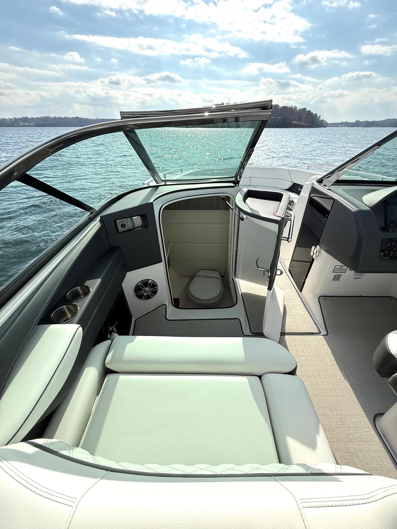 Don’t miss your opportunity to own this 2022 Regal 2800, a true standout in both style and performance. Powered by the Volvo V8 380 EVC motor with only 162 hours, she delivers exceptional handling and smooth, reliable power for hours of enjoyable cruising. Originally ordered for the 2022 Atlanta Boat Show and sold on the first day, this Regal 2800 combines thoughtful design, luxurious comfort, and cutting-edge technology in one sleek package. From the elegant Driftwood interior to her white hull with Newport Blue bootstripe and black bottom, every detail has been carefully chosen for both function and style. Whether entertaining friends in the cockpit, relaxing in the bow, or navigating with ease, this boat offers a perfect balance of performance and sophistication.