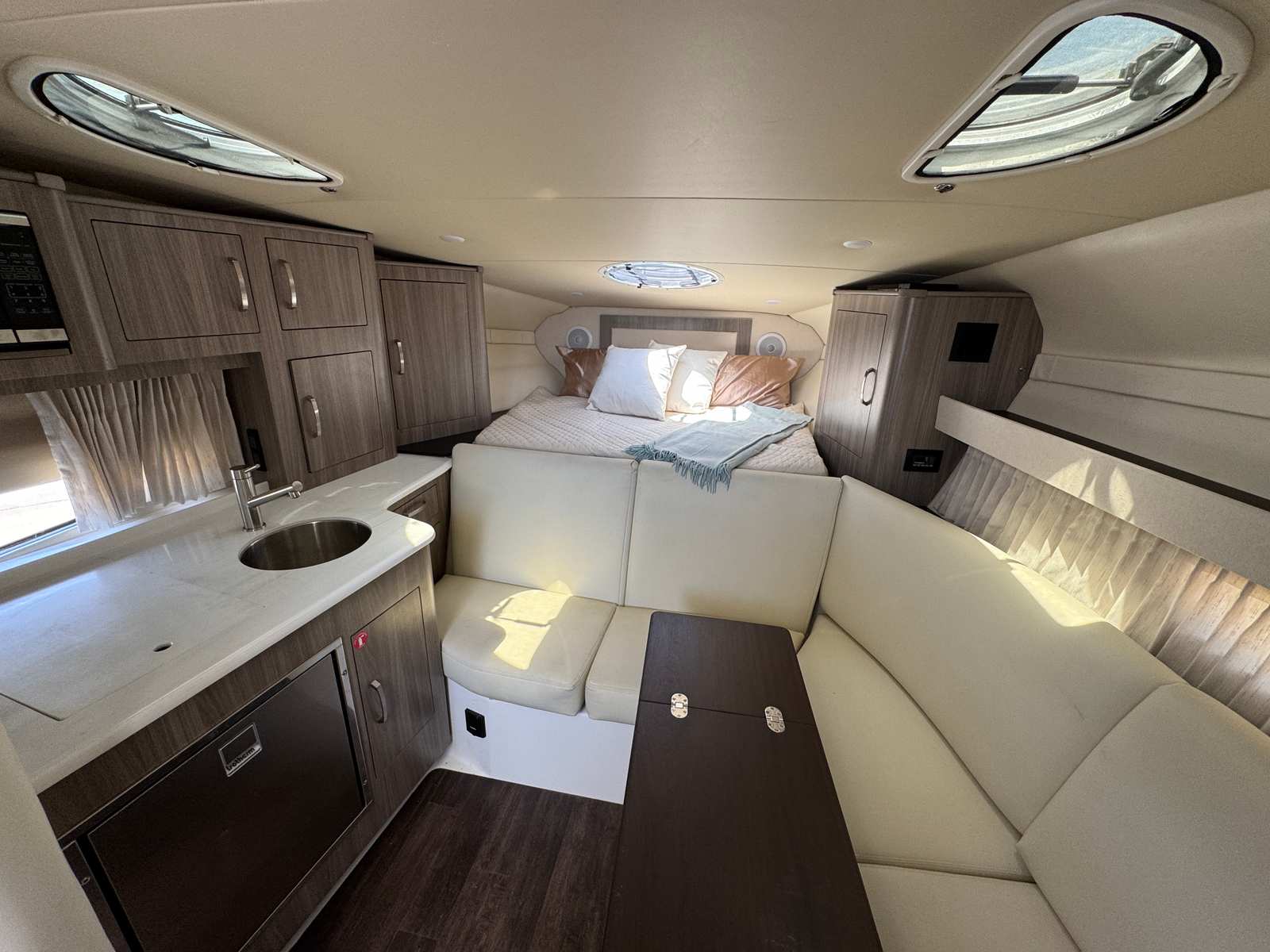 Under the hood, the Regal 33 Express boasts twin engines, delivering a combined 600 horsepower for exhilarating performance. Whether you’re cruising along the coastline or heading out for a weekend adventure, this Express Cruiser offers the power and responsiveness you need for a smooth, enjoyable ride. The dual engine setup enhances maneuverability, making docking and navigating tight spaces a breeze. With this level of horsepower, you’ll experience swift acceleration and reliable handling, ensuring every outing is as thrilling as it is comfortable.