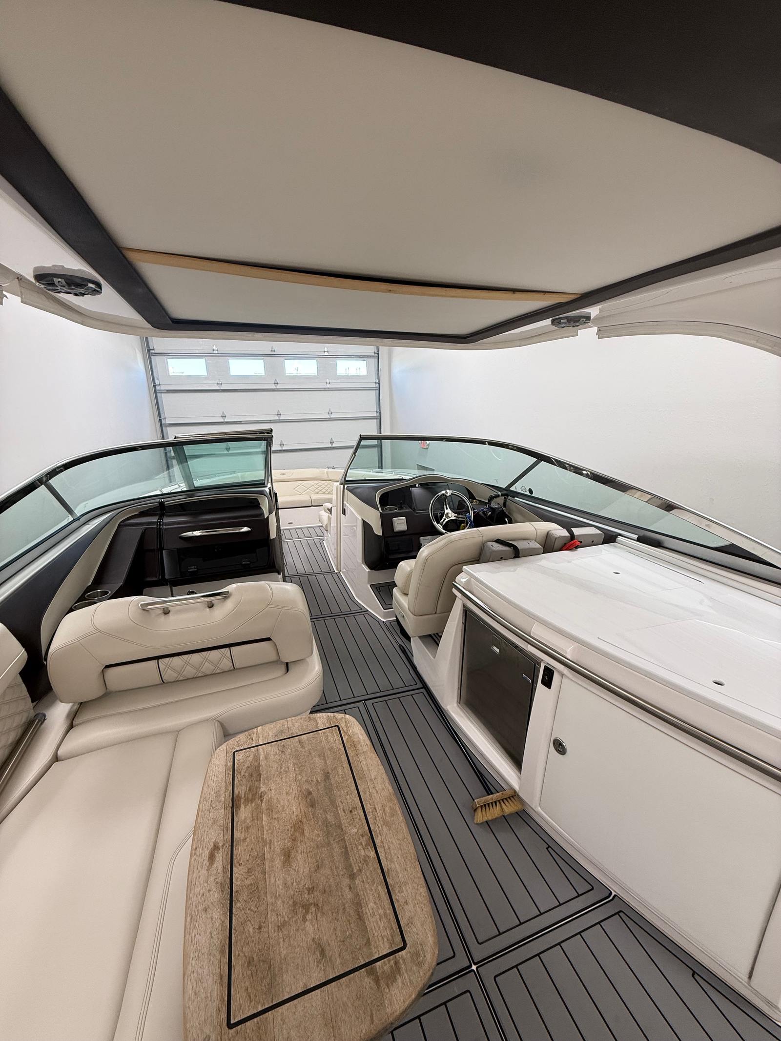 Practicality meets luxury in the Regal 33 OBX. The four-battery system and battery charger ensure reliable power for all your onboard systems, allowing you to enjoy longer outings without worry. The aft bench seat and bow seating maximize passenger comfort and provide flexible options for relaxing or entertaining. The bow cover protects your investment from sun and weather, while the cockpit coaming bolsters add an extra layer of comfort and safety. Docking and maneuvering are made easier with the responsive twin-engine setup, giving you greater control in tight spaces. The depth sounder and compass enhance your ability to navigate safely, whether you are exploring new waterways or returning to your favorite spots. The cockpit wet bar and countertop add a touch of luxury and convenience, making every trip more enjoyable and stress-free.