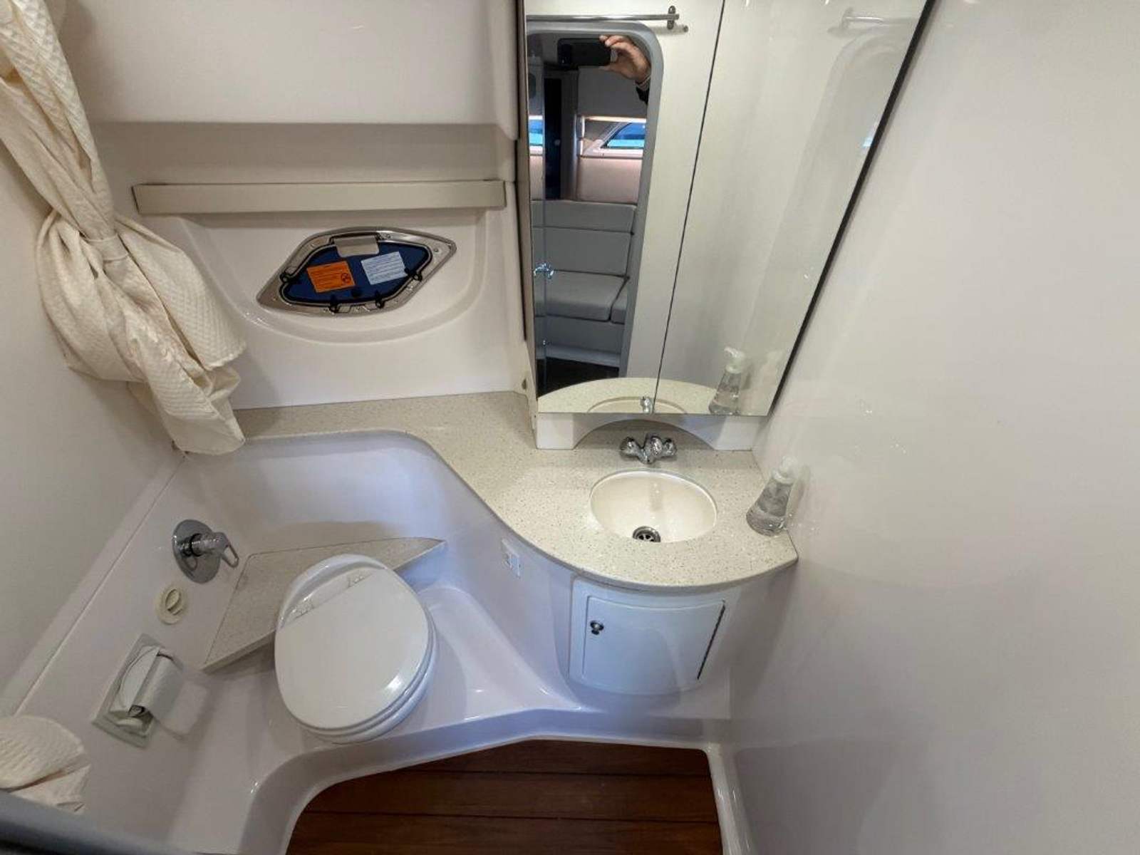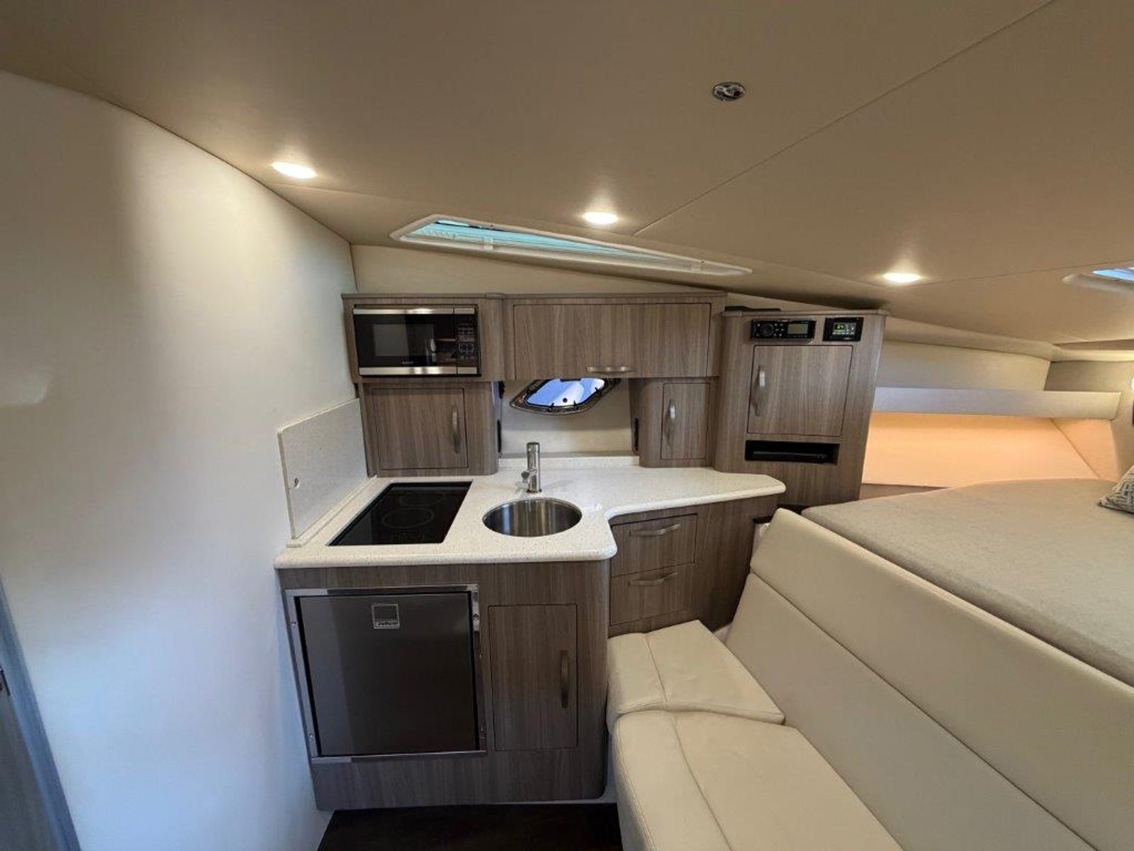Freshwater and meticulously maintained, don’t miss your opportunity to own this beautiful 2-owner 2019 Regal 35 Sport Coupe. She’s brand new to the sales dock and ready for immediate delivery. The current owner already has his next boat picked out and is ready to make a deal. Where sport meets luxury, the 35 Sport Coupe is fast, agile, and effortless to dock with Volvo’s EVC Joystick. Powered by twin Volvo V8 300 DP CAT engines (130 hours) and a Westerbeke generator (75 hours), she delivers smooth cruising with a 225-mile range.
