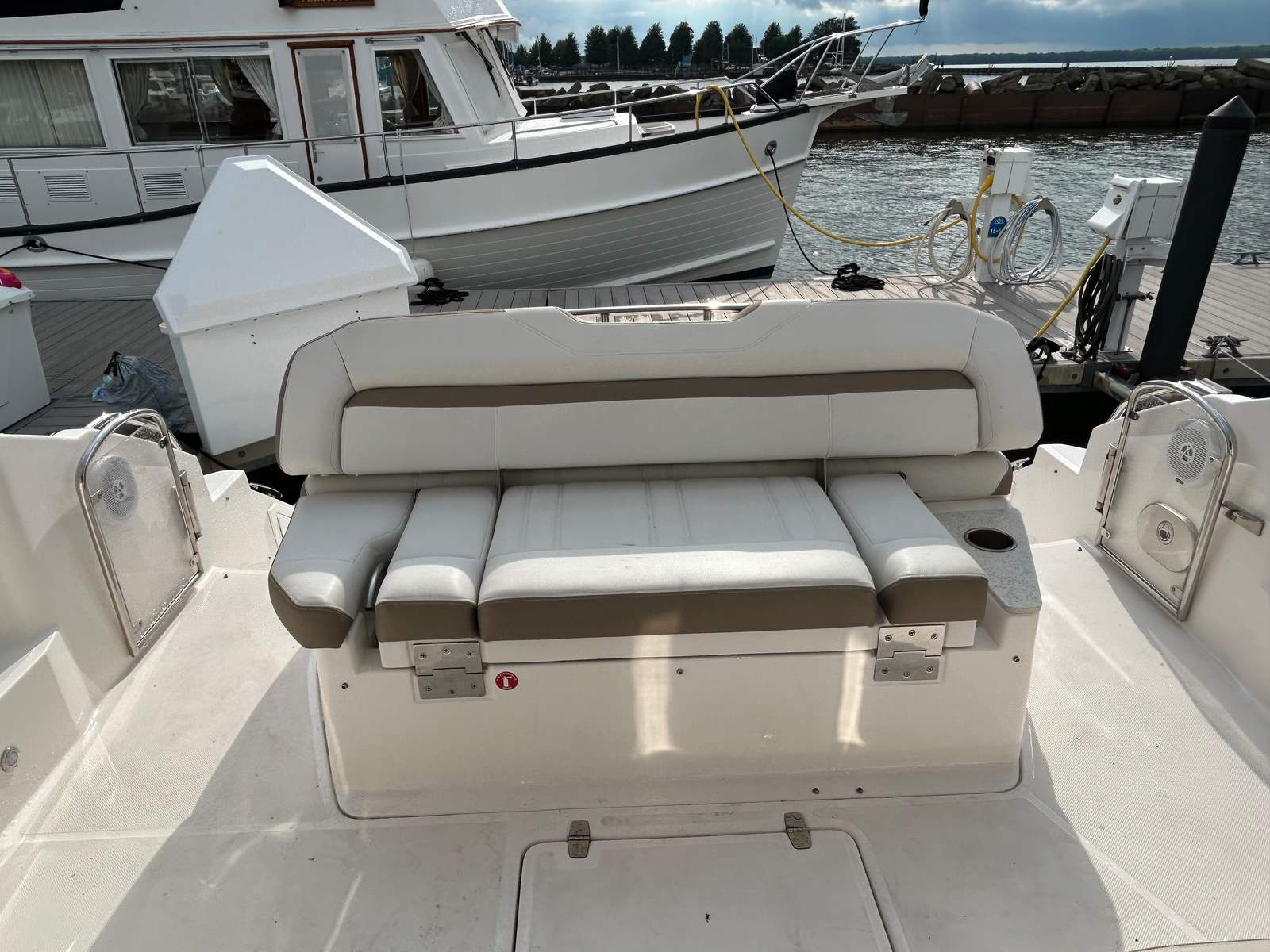 Practicality meets luxury in the Regal 42 Sport Coupe. The generous storage options throughout the yacht ensure that all your gear, supplies, and personal items are neatly stowed and easily accessible. The extended swim platform makes boarding and disembarking a breeze, while also providing a safe and convenient spot for water activities. The yacht's efficient design and reliable battery system help maximize fuel efficiency and minimize downtime, so you can spend more time enjoying the water and less time worrying about maintenance. Docking is simplified by the yacht's responsive handling and intuitive controls, making it easy for both seasoned captains and newcomers to enjoy stress-free boating.